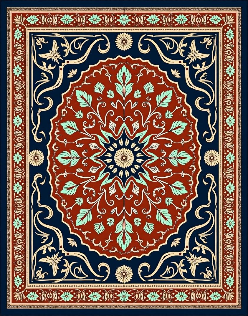 Medallion Mosaic with Vintage Botanical Accents(Brown)