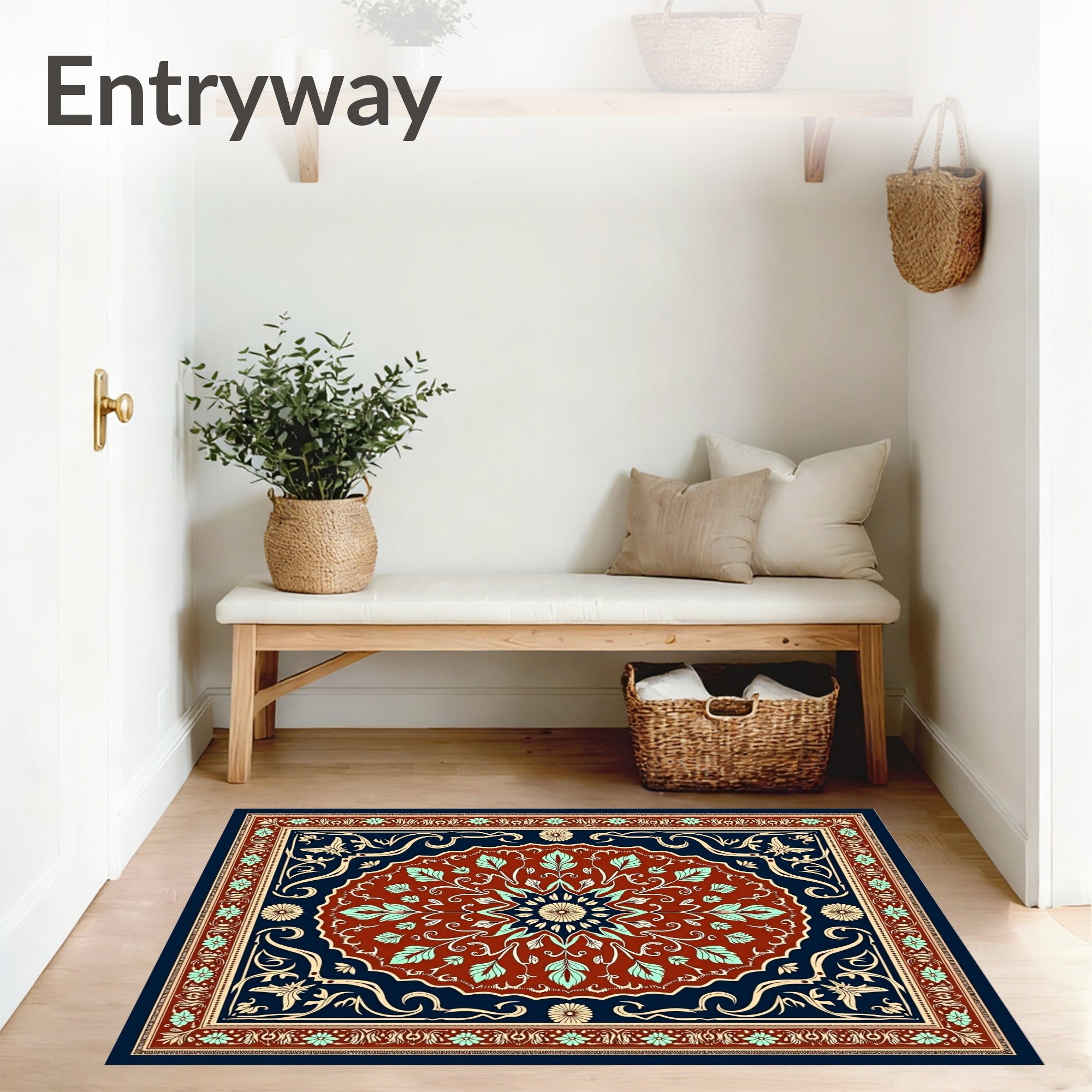 Flatwoven High Traffic Area Rug, Medallion Mosaic with Vintage Botanical Accents, Non Slip, Stain Resistant, Washable Area Rugs for Living Room, Bedroom (Brown) Overview: