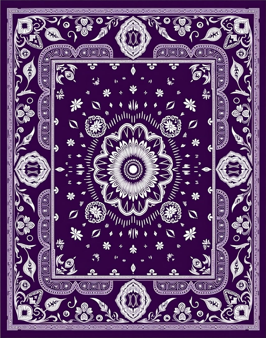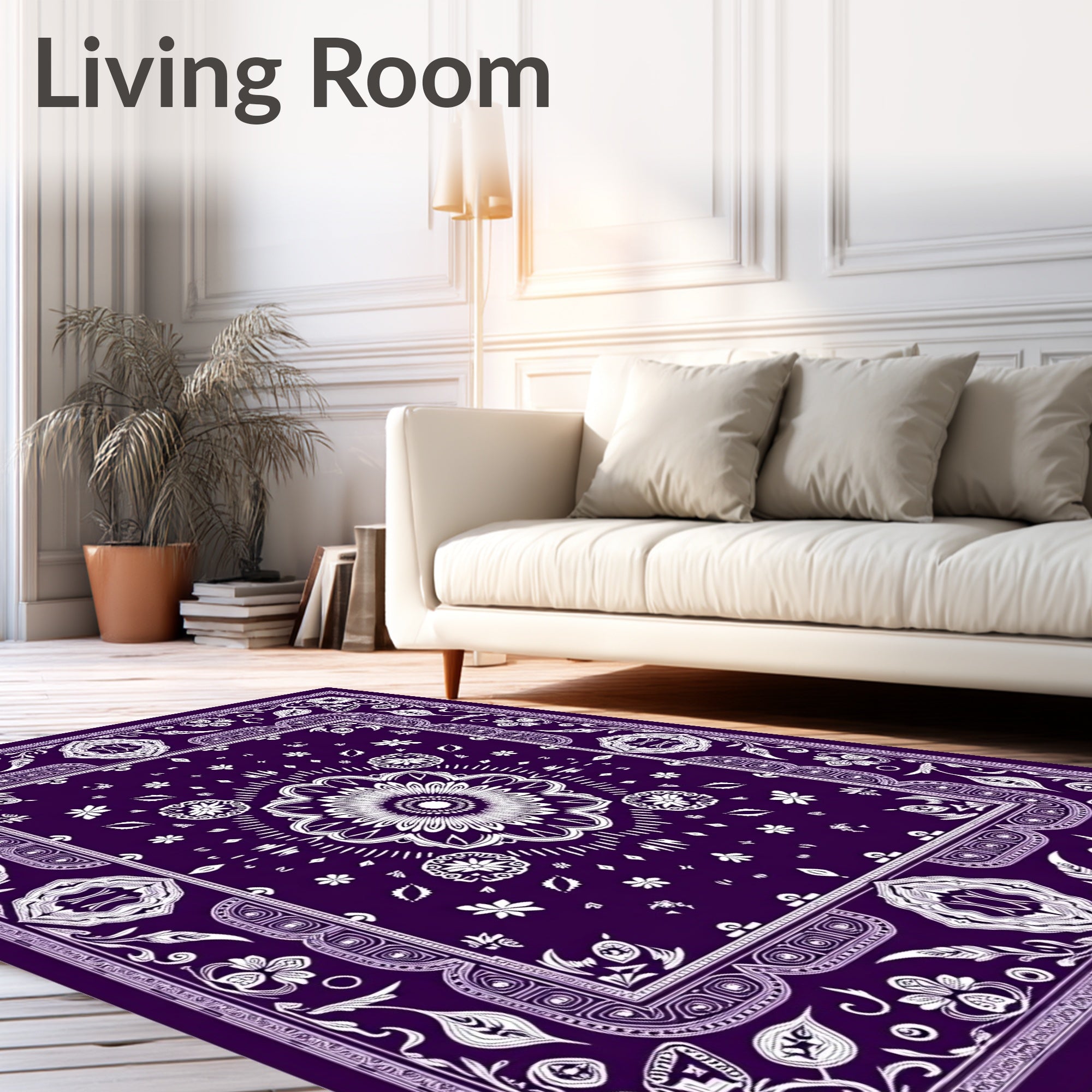 Flatwoven High Traffic Area Rug, Medallion Ornate Floral Motif, Non Slip, Stain Resistant, Washable Area Rugs for Living Room, Bedroom (Purple) Overview: