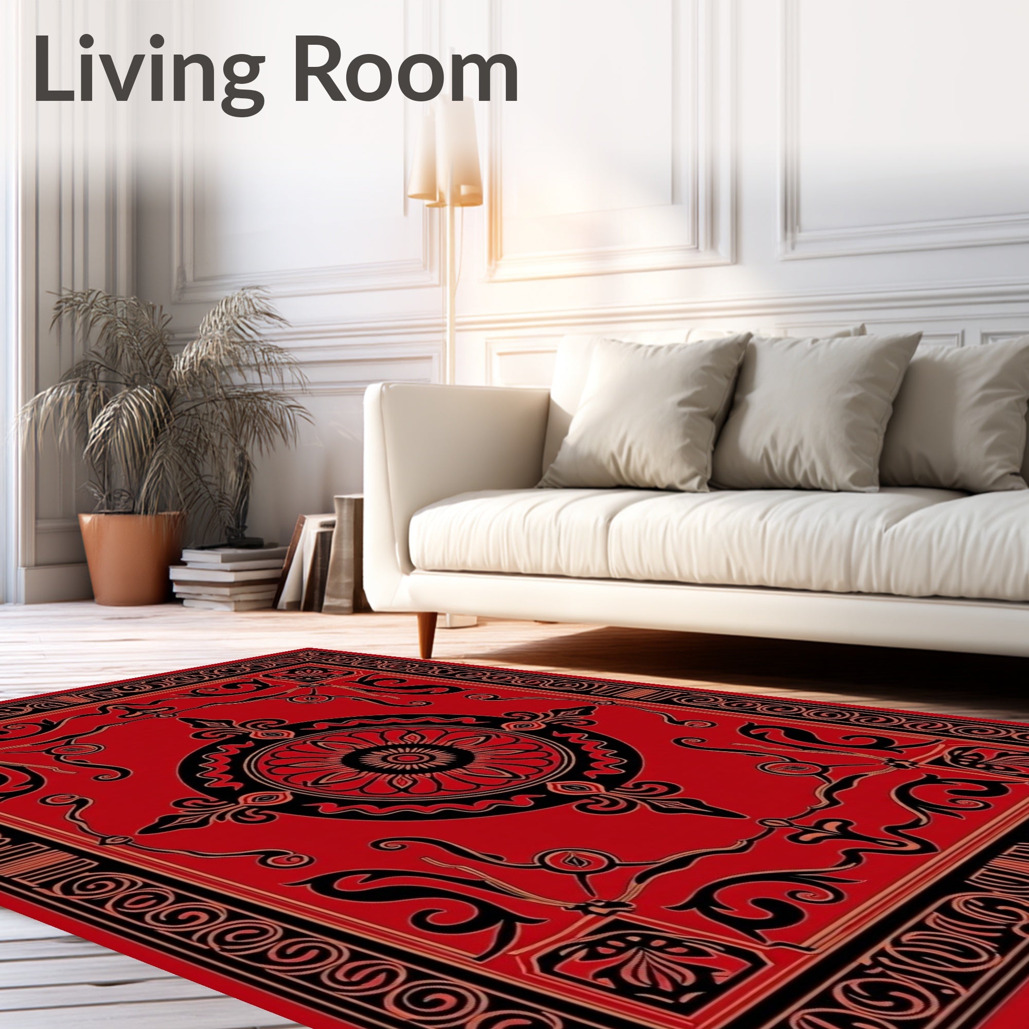 Ultra Soft Area Rug, Non Slip, Stain Resistant, Washable Area Rugs for Living Room, Bedroom, Medallion Scroll Jubilee Walkway Adornment(Red) Overview: