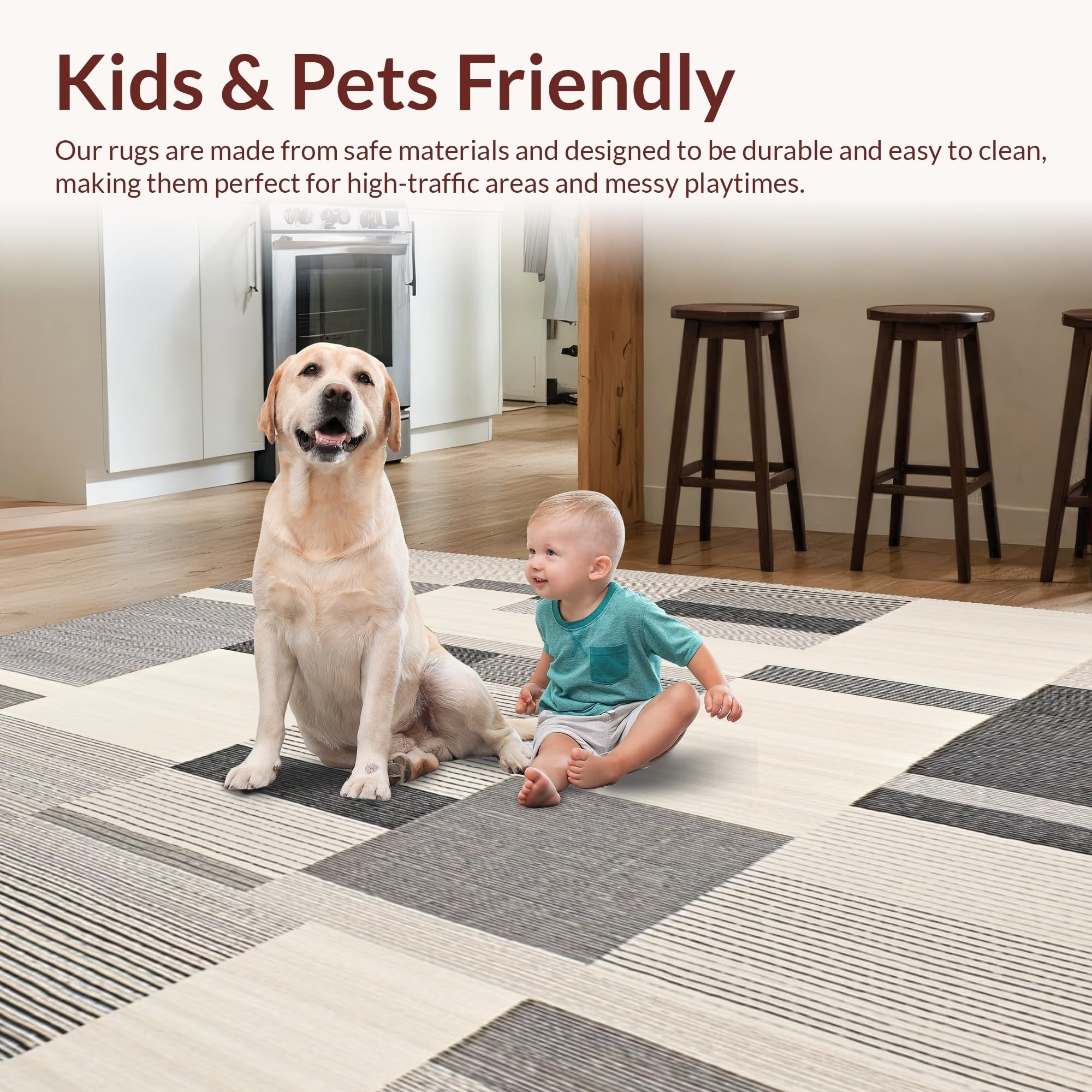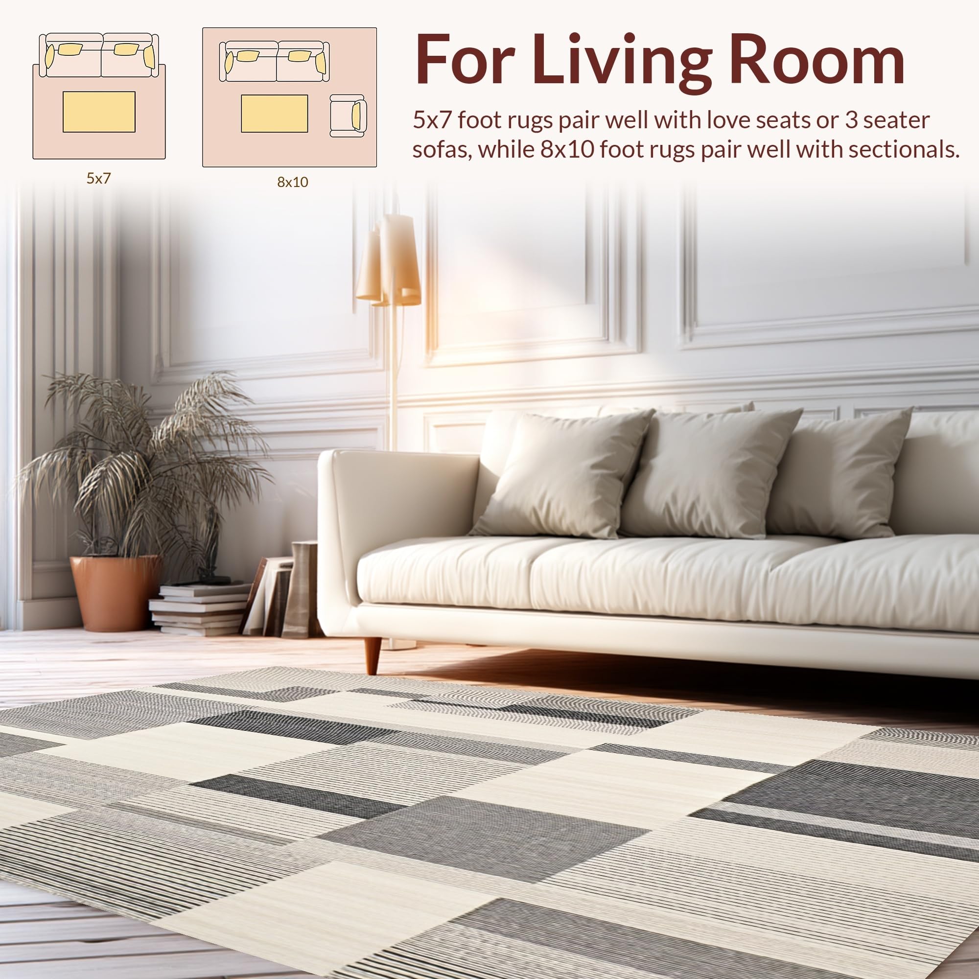 Ultra Soft Area Rug, Non Slip, Stain Resistant, Washable Area Rugs for Living Room, Bedroom, Medium Pile Neutral Area(Gray) Overview: