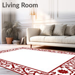 Ultra Soft Area Rug, Non Slip, Stain Resistant, Washable Area Rugs for Living Room, Bedroom, Merry Farmhouse Heritage Tradition Family Gathering Walkway Emblem(Red) Overview: