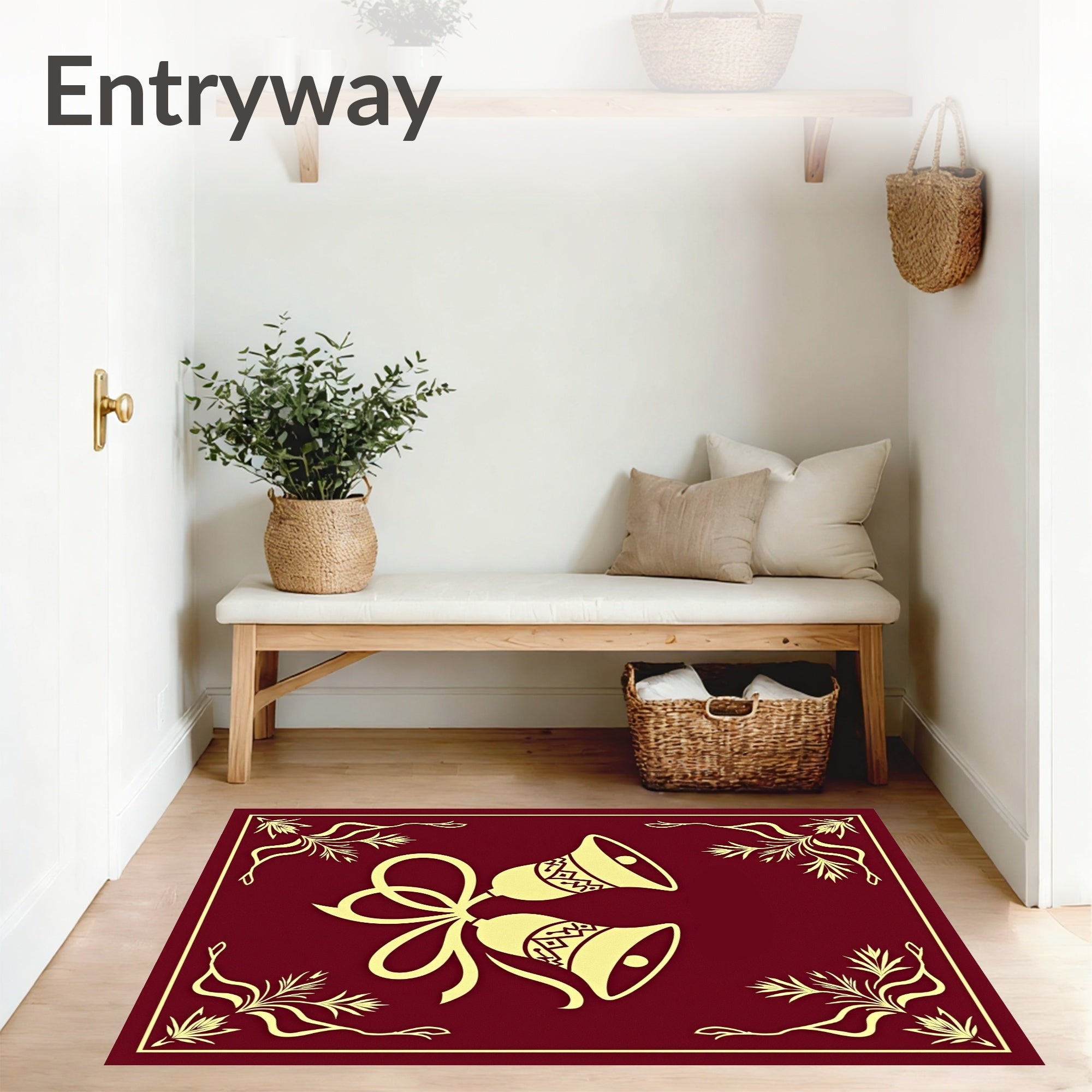 Ultra Soft Area Rug, Non Slip, Stain Resistant, Washable Area Rugs for Living Room, Bedroom, Merry Melodies Front Porch Semicircular Greeting Embellishment(Red) Overview: