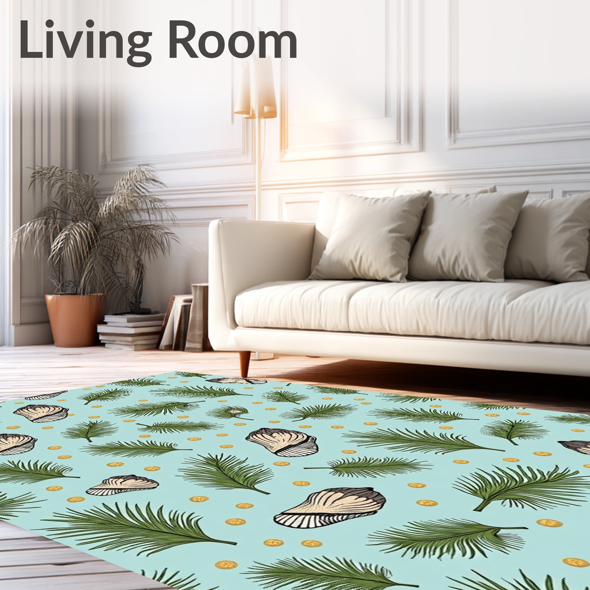 Ultra Soft Area Rug, Non Slip, Stain Resistant, Washable Area Rugs for Living Room, Bedroom, Merry Nautical Shells and Pine Sprig Composition(Beige) Overview: