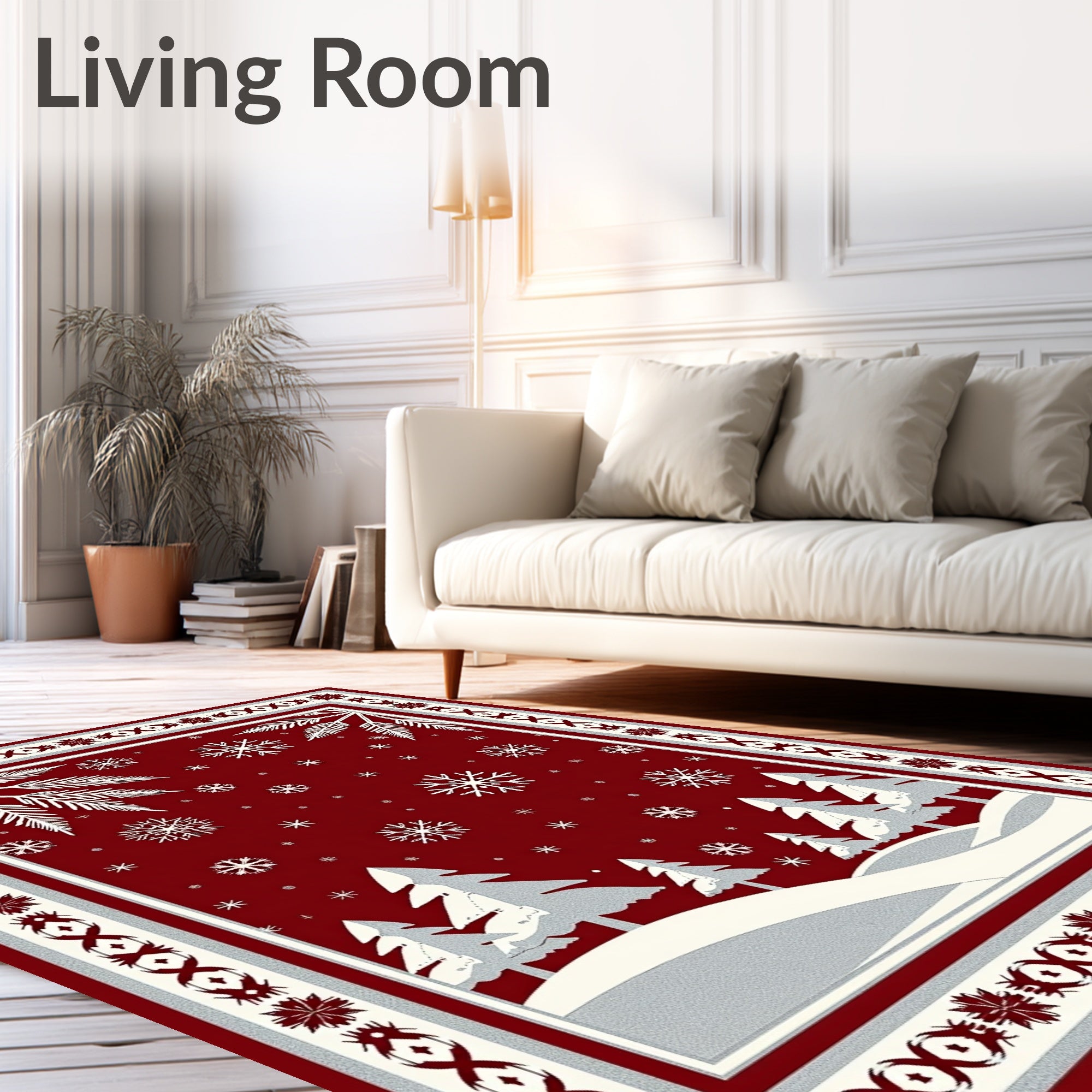 Ultra Soft Area Rug, Non Slip, Stain Resistant, Washable Area Rugs for Living Room, Bedroom, Merry North Pole Magic Enchantment(Red) Overview: