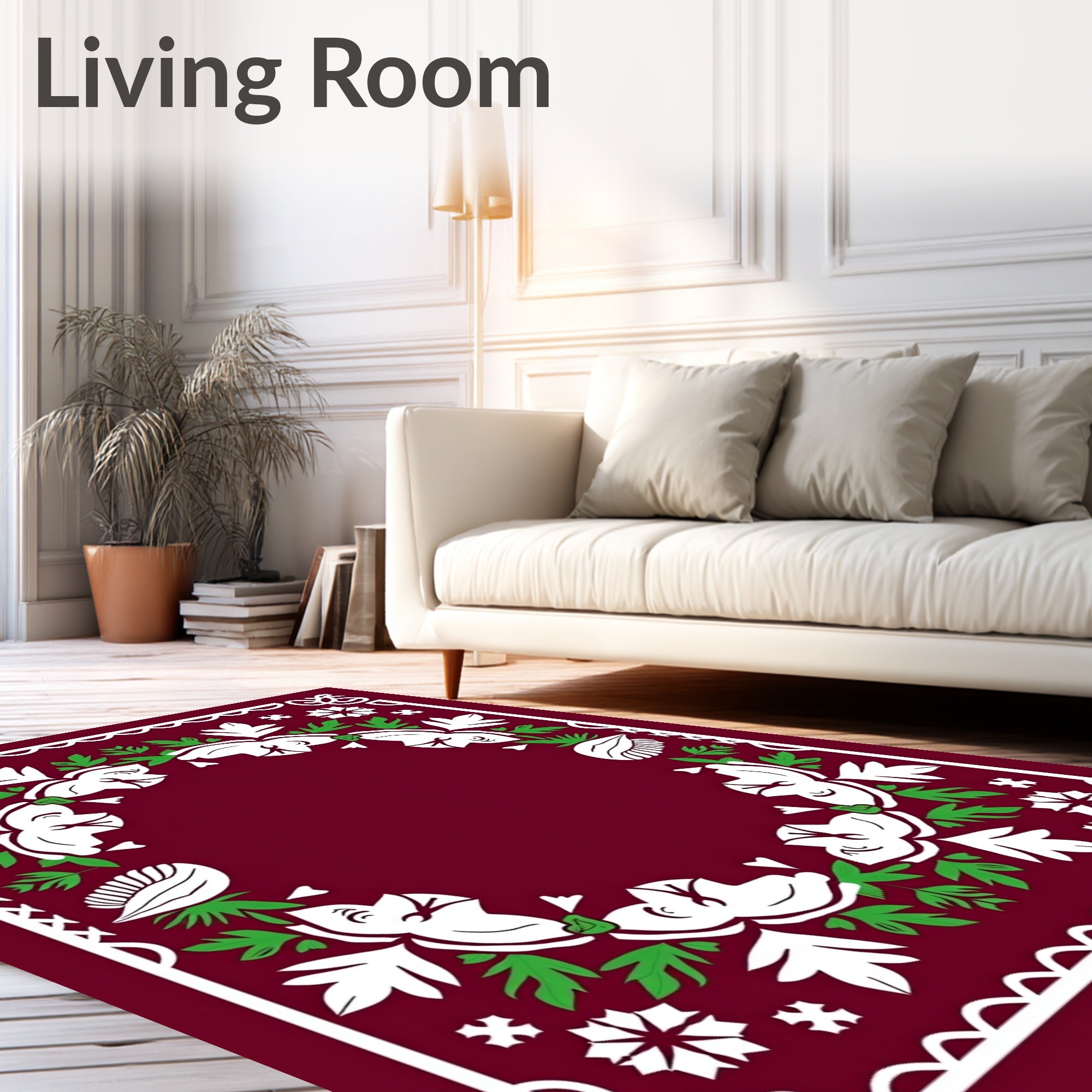Ultra Soft Area Rug, Non Slip, Stain Resistant, Washable Area Rugs for Living Room, Bedroom, Merry Pinecone Wreath Decorative Accent(Red) Overview: