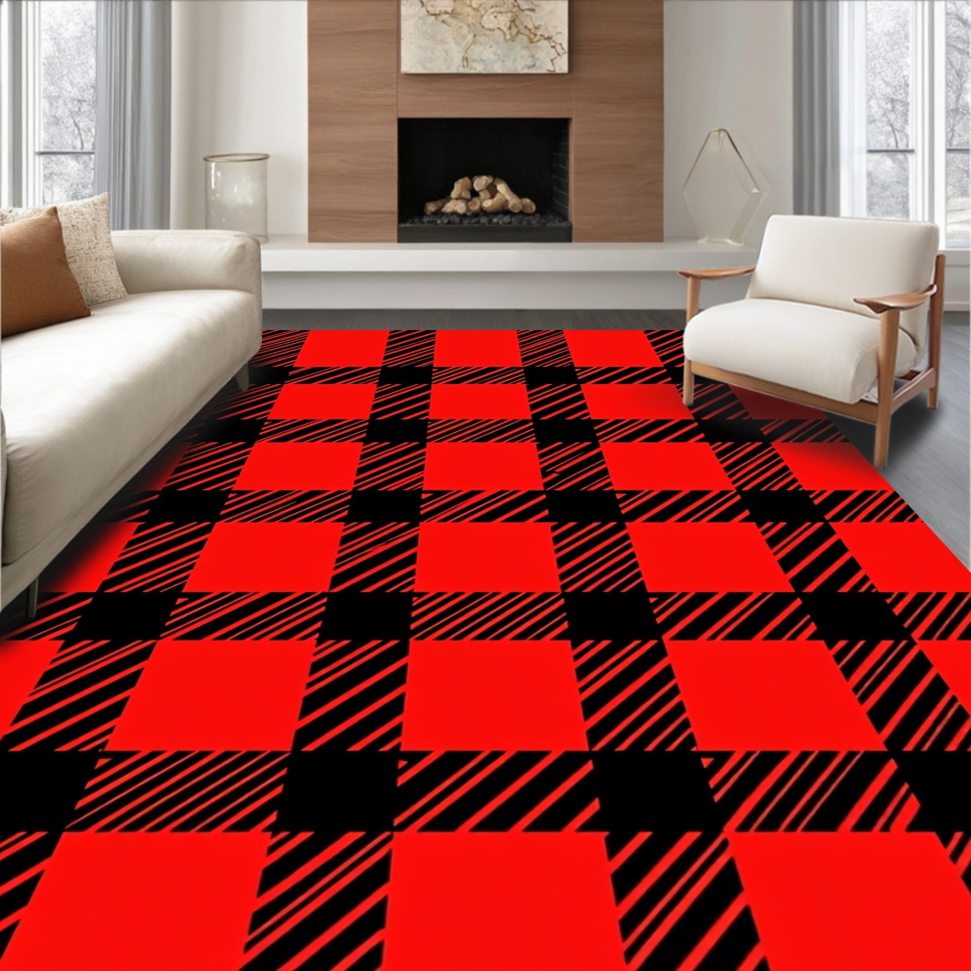 Ultra Soft Area Rug, Non Slip, Stain Resistant, Washable Area Rugs for Living Room, Bedroom, Merry Plaid Seasonal Celebration(Red) Overview: