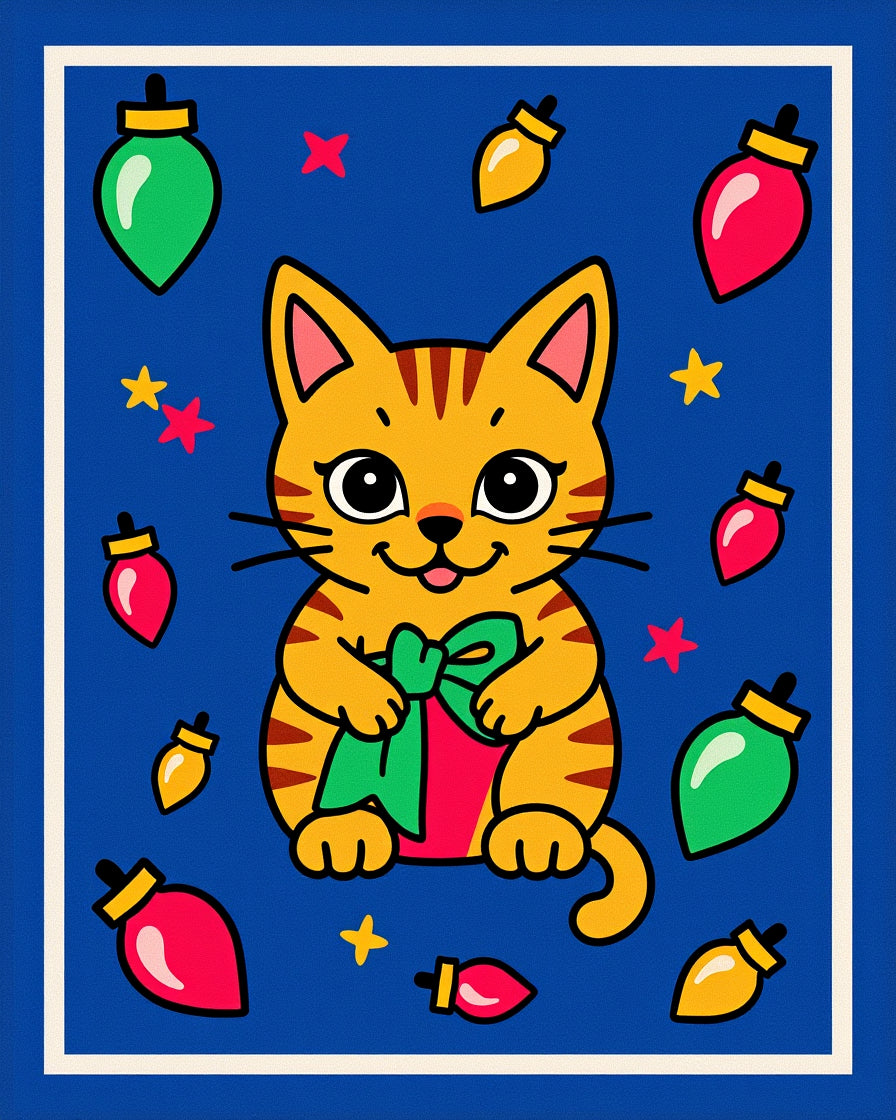 Merry Trapped Feline Quirky Yuletide Decorative Statement(Blue)