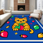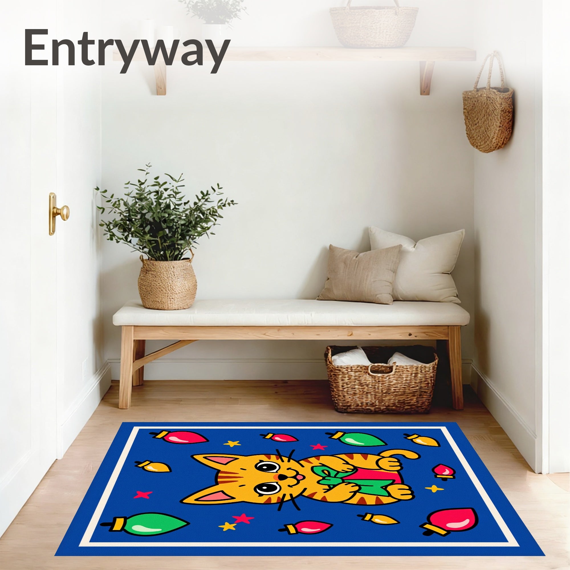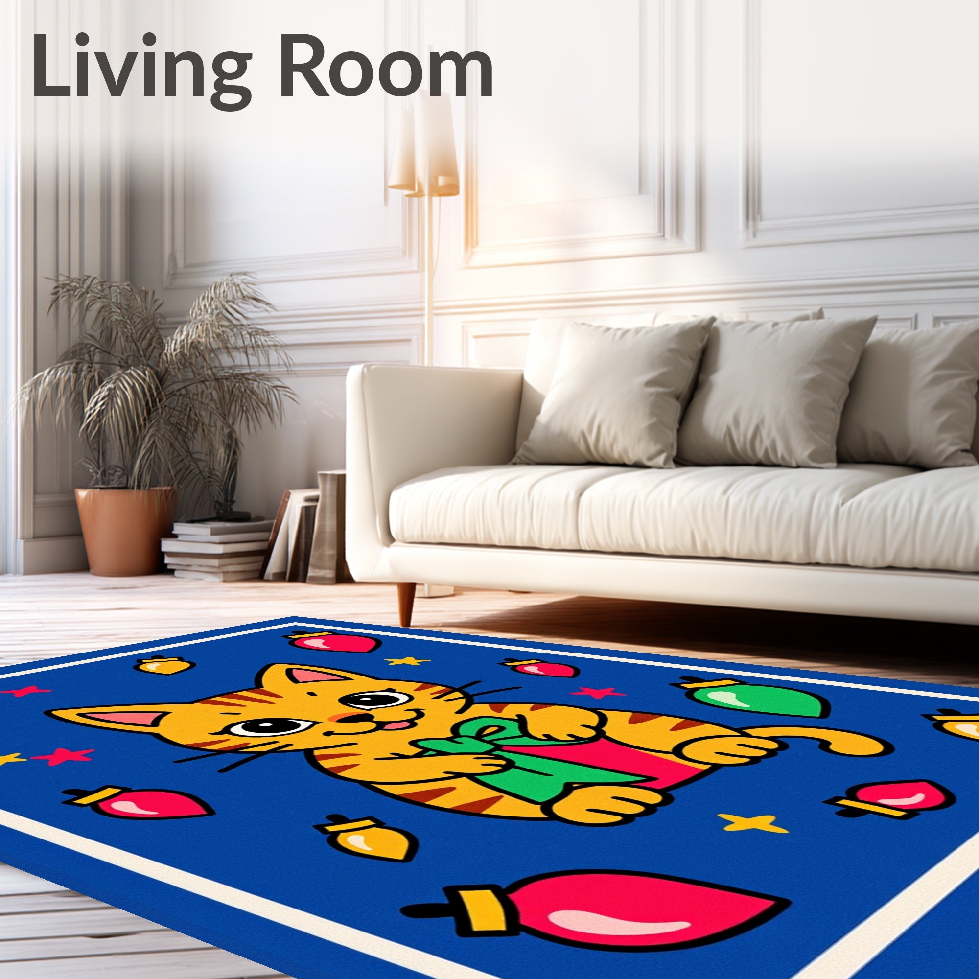 Ultra Soft Area Rug, Non Slip, Stain Resistant, Washable Area Rugs for Living Room, Bedroom, Merry Trapped Feline Quirky Yuletide Decorative Statement(Blue) Overview: