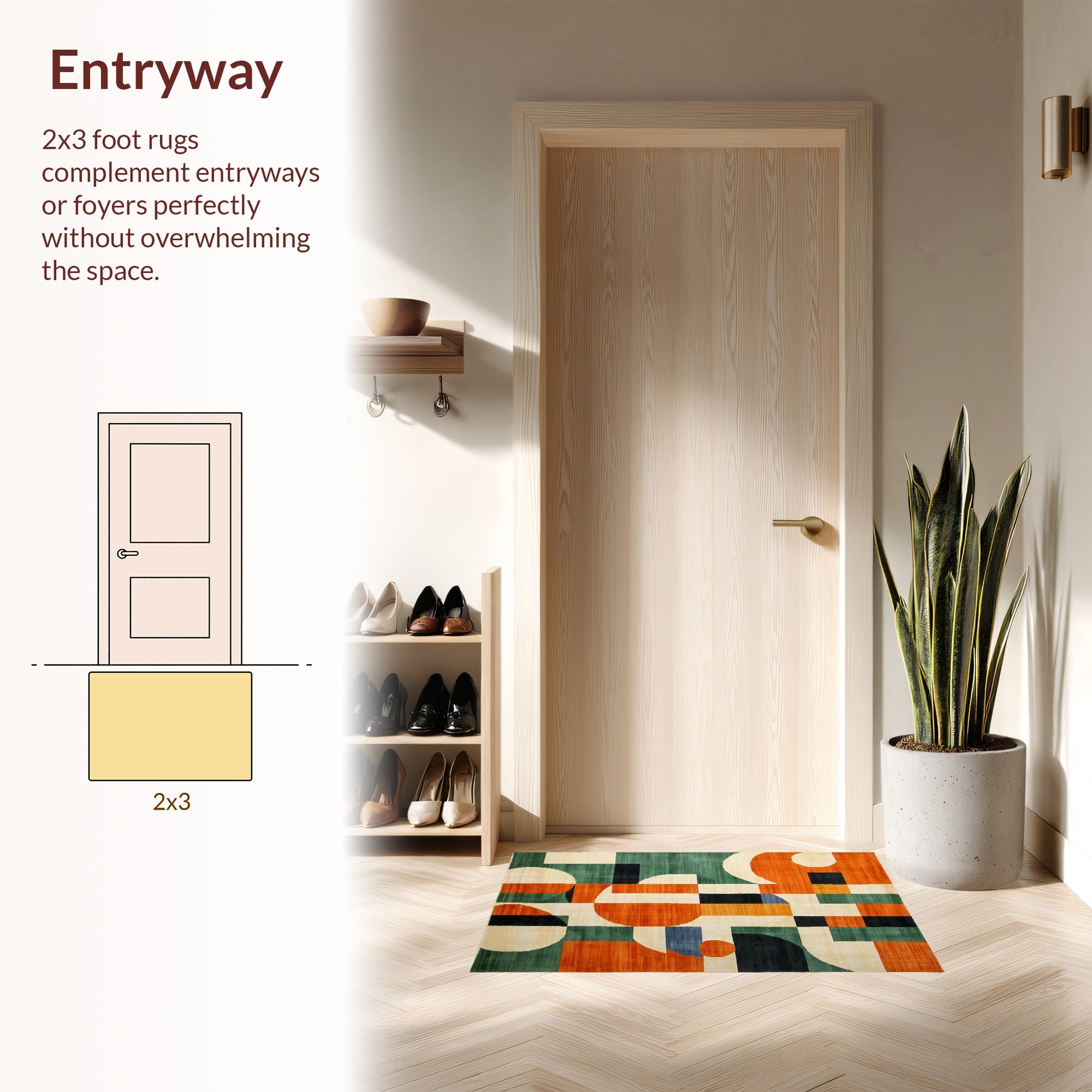 Flatwoven High Traffic Area Rug, Mid Eclectic, Non Slip, Stain Resistant, Washable Area Rugs for Living Room, Bedroom (Orange) Overview: