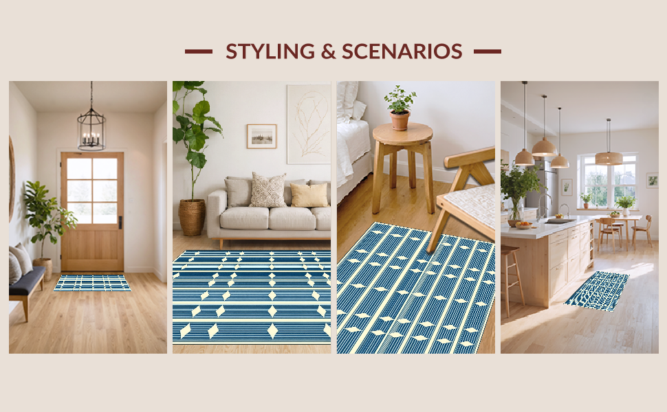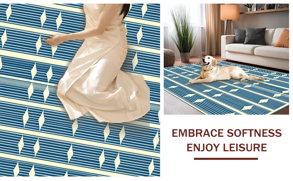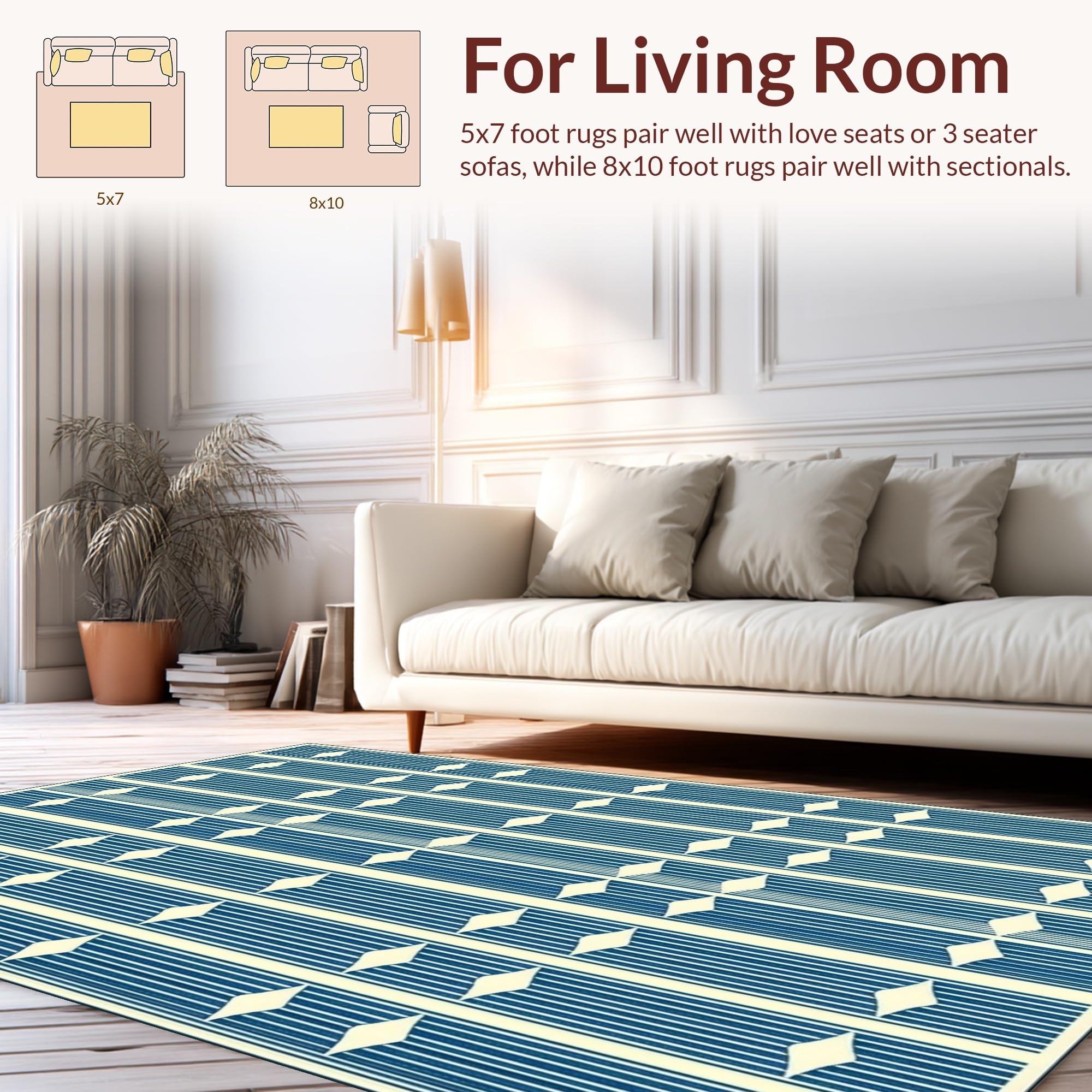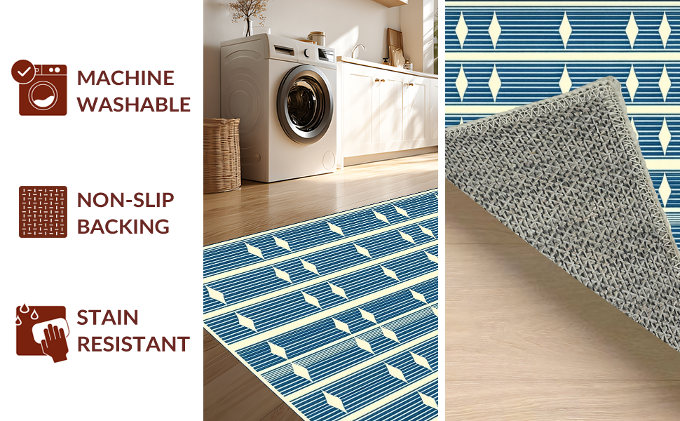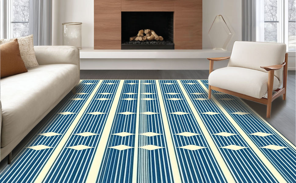 Ultra Soft Area Rug, Non Slip, Stain Resistant, Washable Area Rugs for Living Room, Bedroom, Mid-Century Geometric Elegance(Blue) Overview: