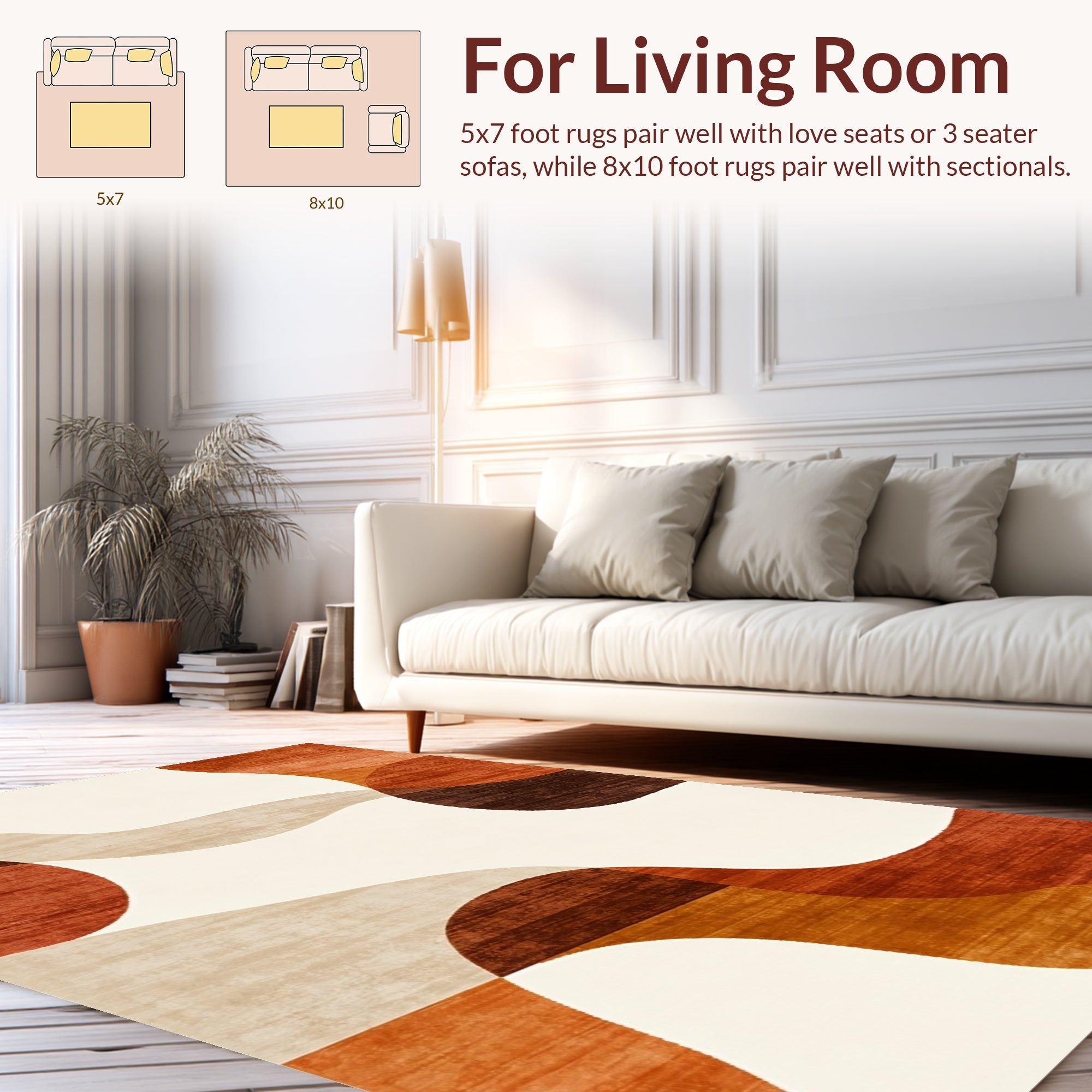 Ultra Soft Area Rug, Non Slip, Stain Resistant, Washable Area Rugs for Living Room, Bedroom, Mid Century Modern Abstract Area with Artistic Brushstroke Design(Beige) Overview: