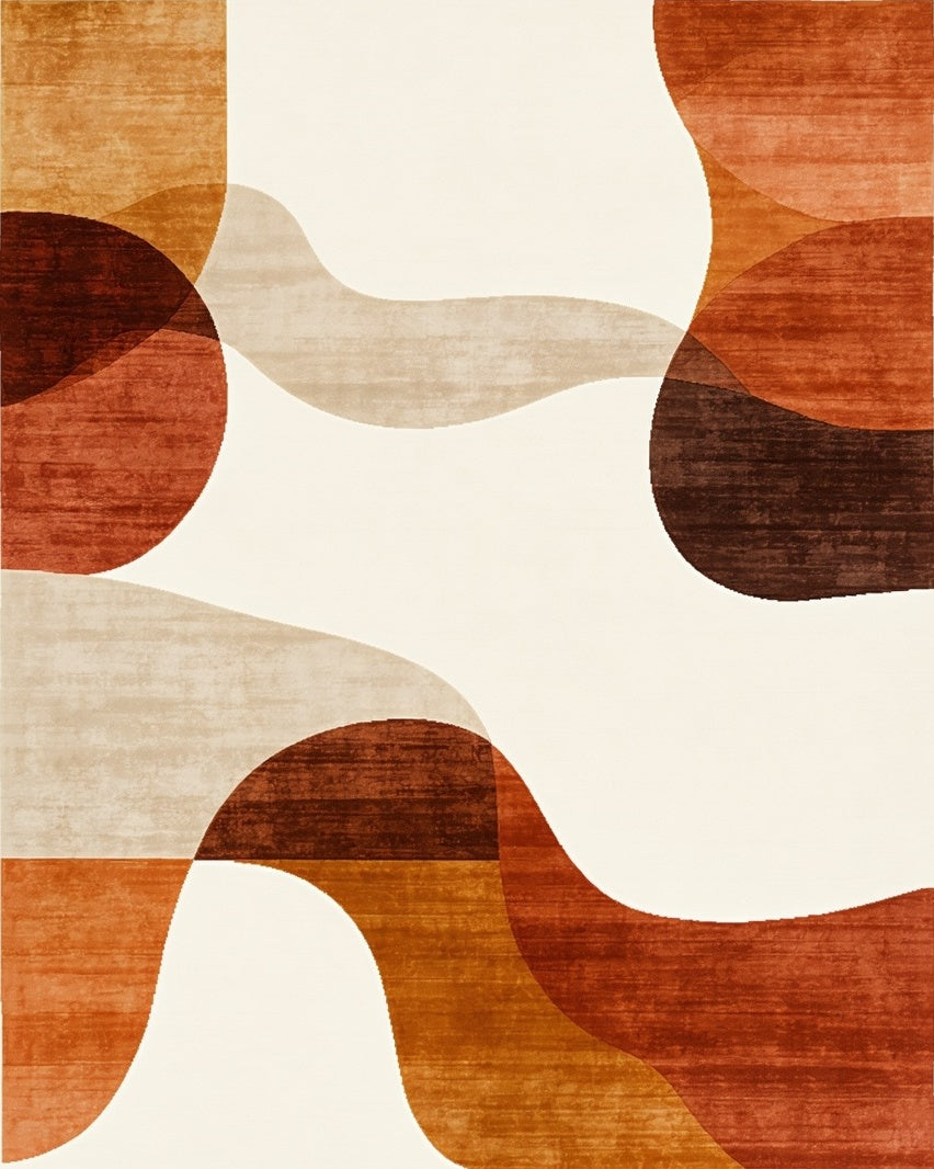 Mid Century Modern Abstract Area with Artistic Brushstroke Design(Beige)