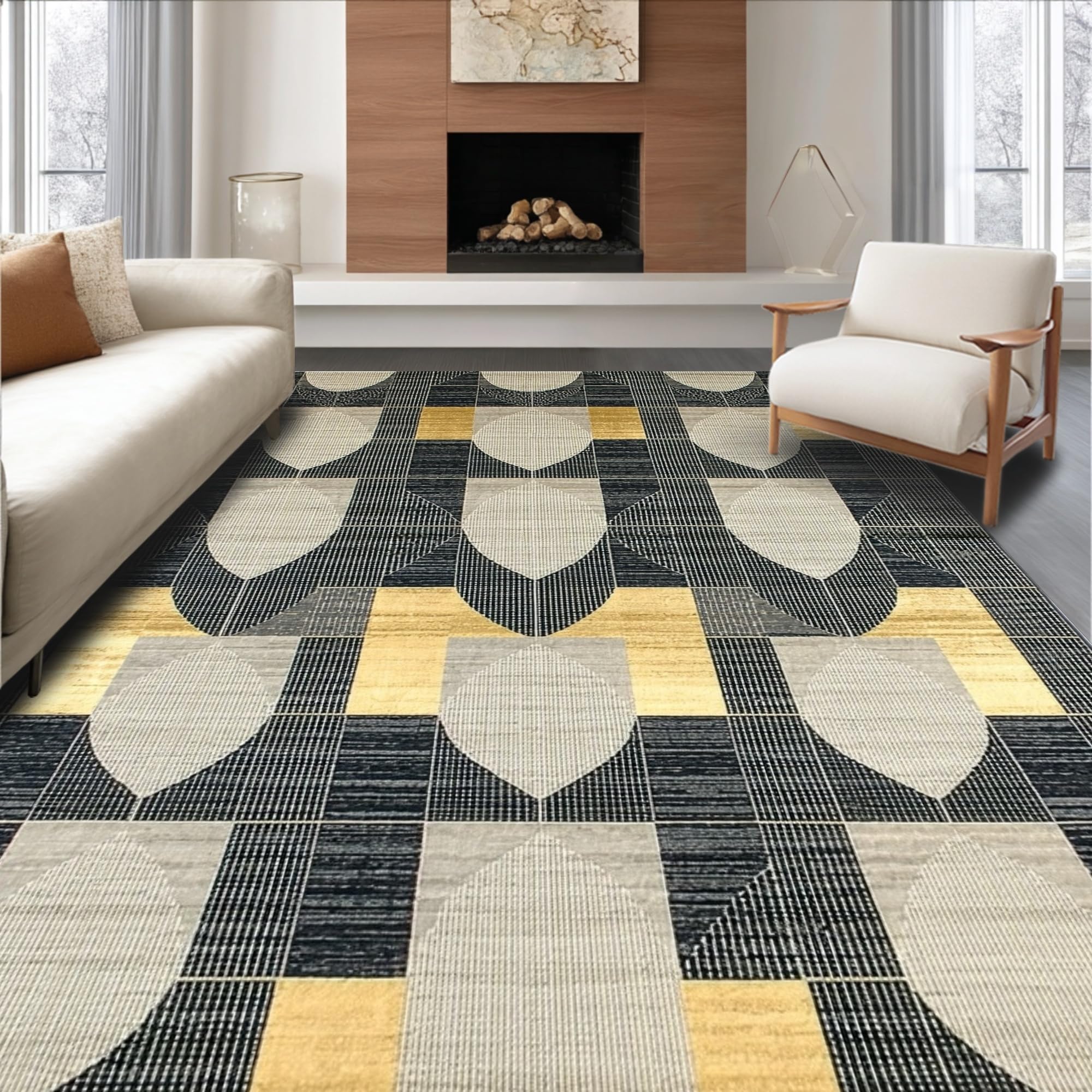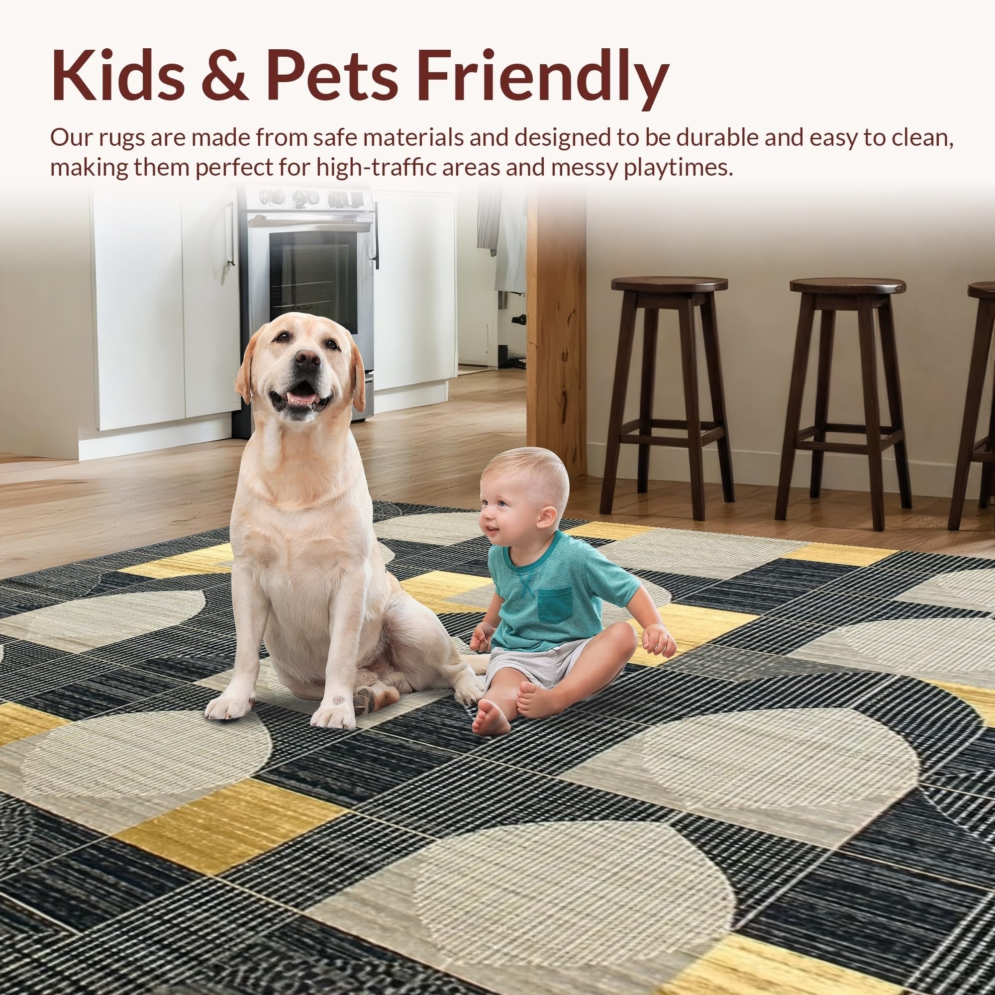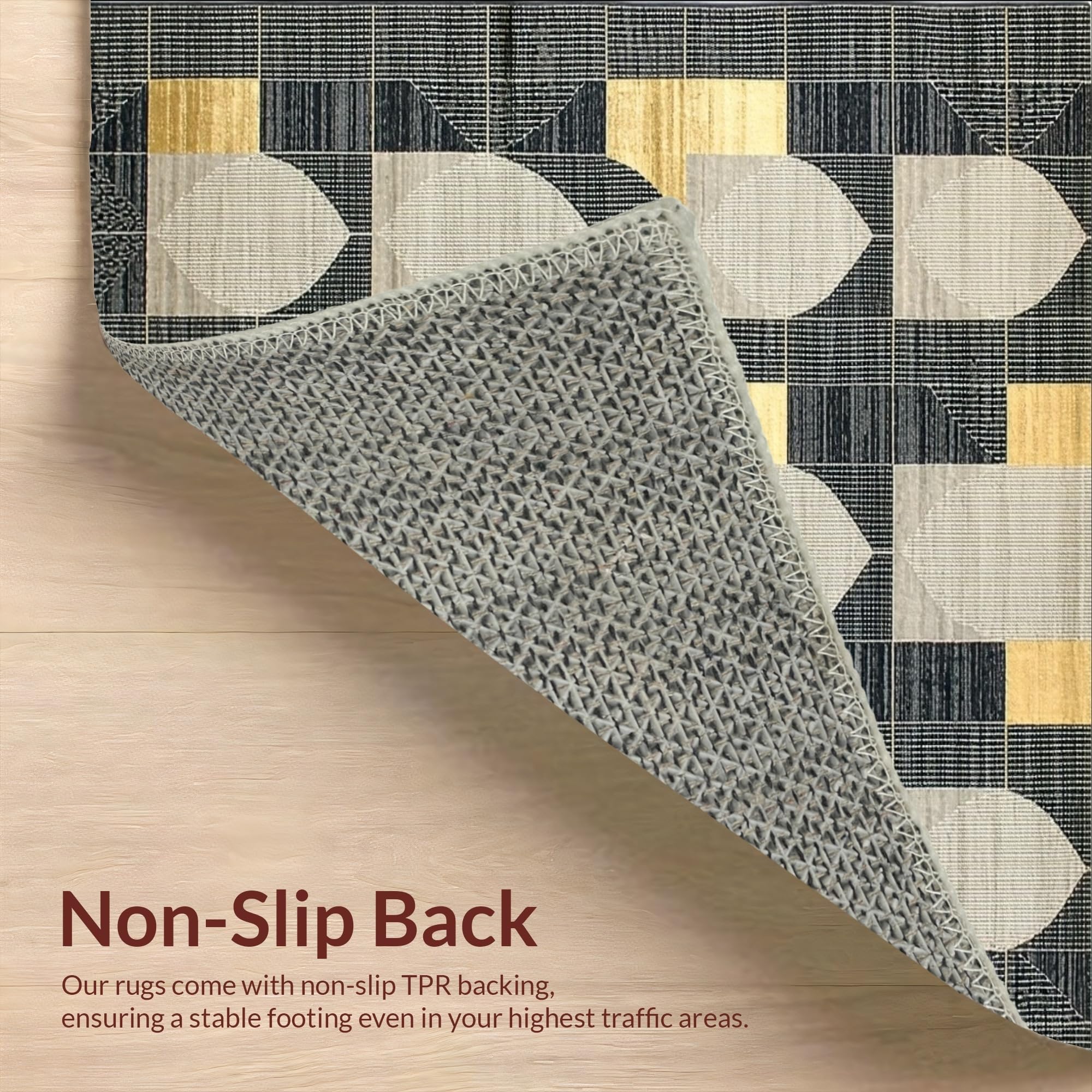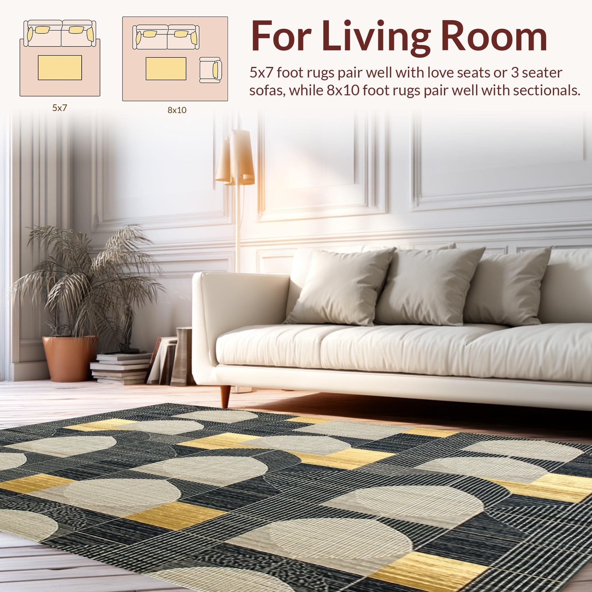 Ultra Soft Area Rug, Non Slip, Stain Resistant, Washable Area Rugs for Living Room, Bedroom, Mid Century Modern Area with Unique Geometric and Accents(Black) Overview: