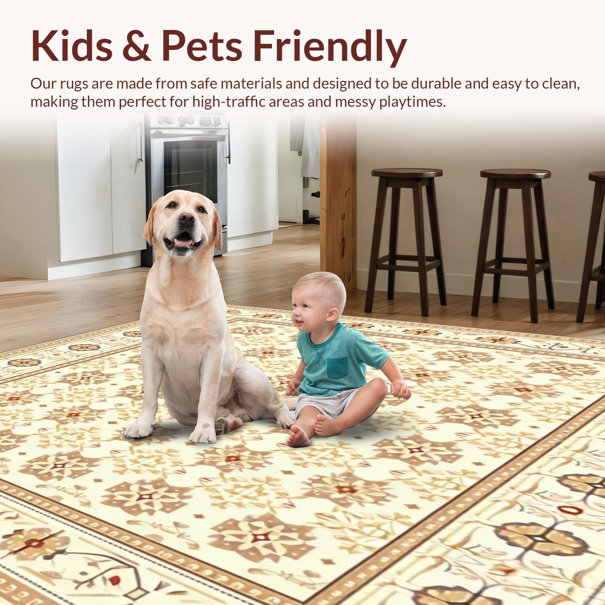 Ultra Soft Area Rug, Non Slip, Stain Resistant, Washable Area Rugs for Living Room, Bedroom, Mid Century Modern Beige and Ivory Oushak(Beige) Overview: