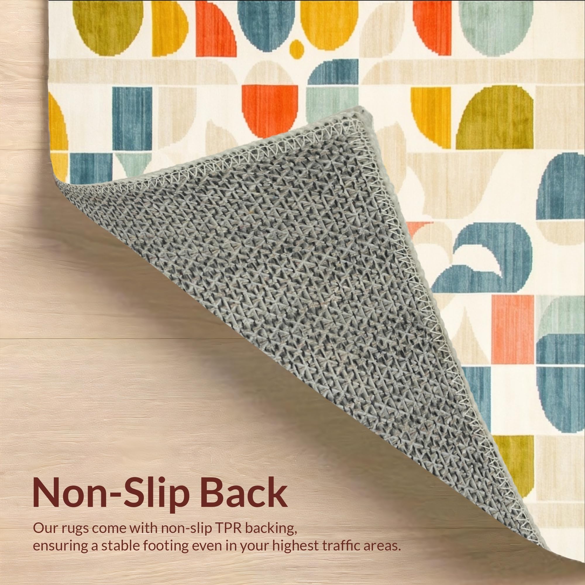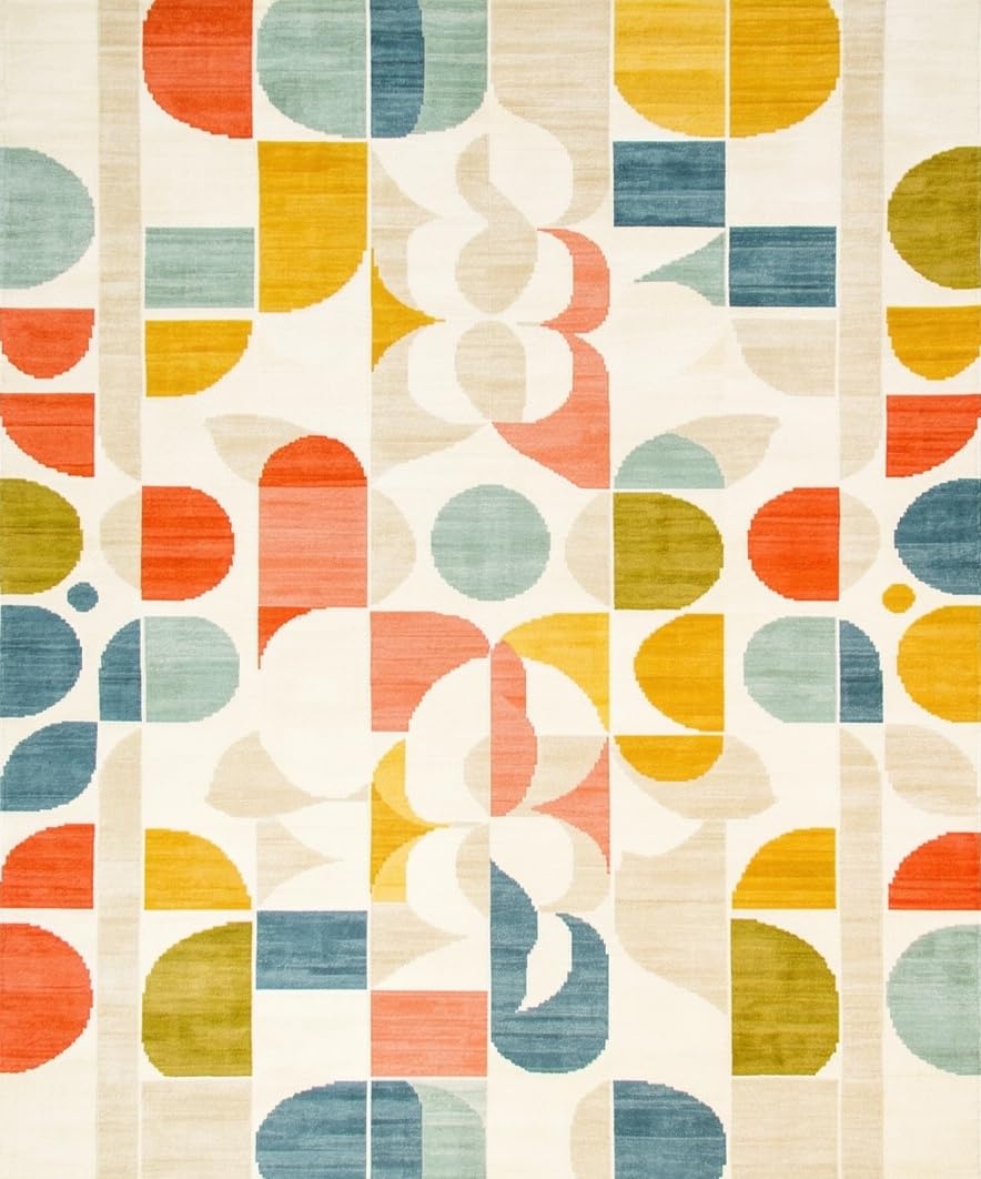 Ultra Soft Area Rug, Non Slip, Stain Resistant, Washable Area Rugs for Living Room, Bedroom, Mid Century Modern Geometric Rainbow with Beige and Ivory(Yellow) Overview: