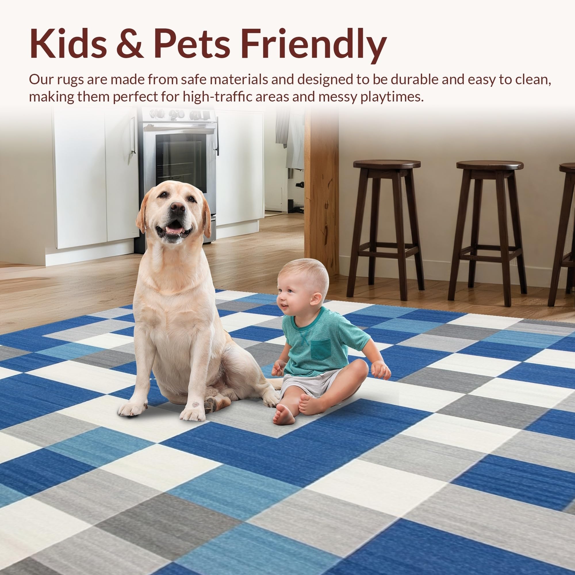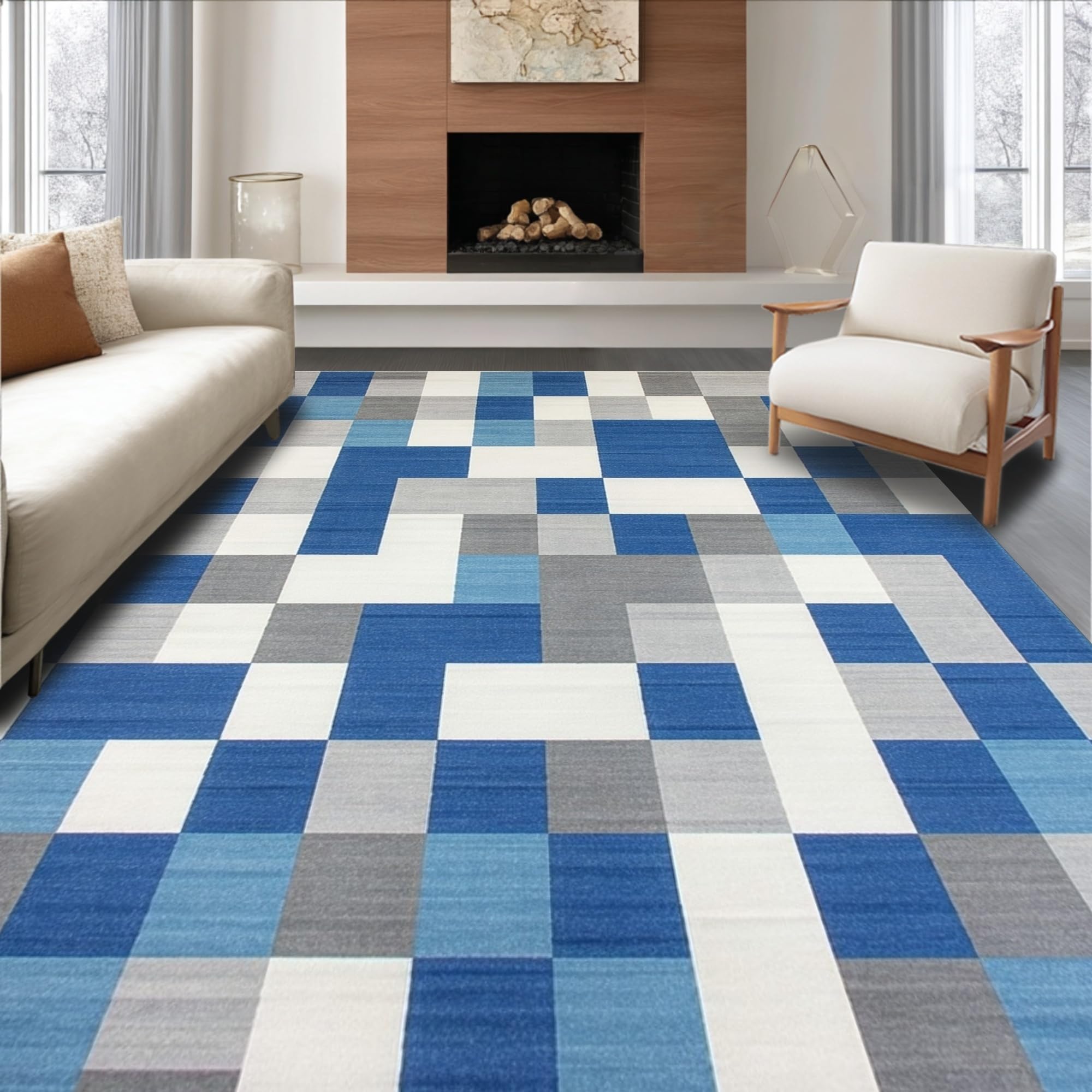 Ultra Soft Area Rug, Non Slip, Stain Resistant, Washable Area Rugs for Living Room, Bedroom, Mid Century Modern Hall Runner(Blue) Overview: