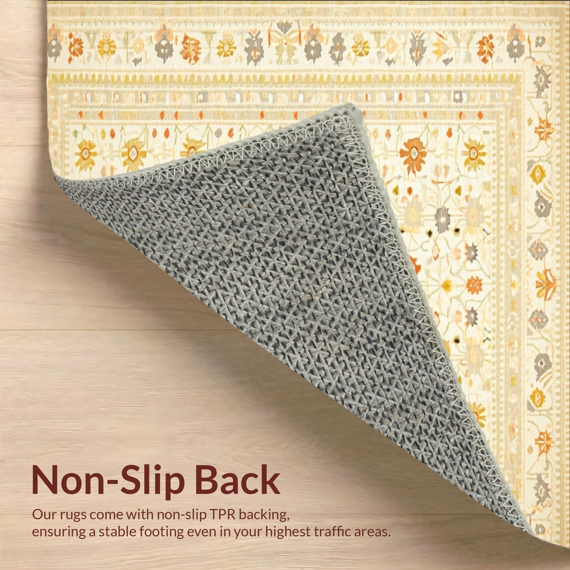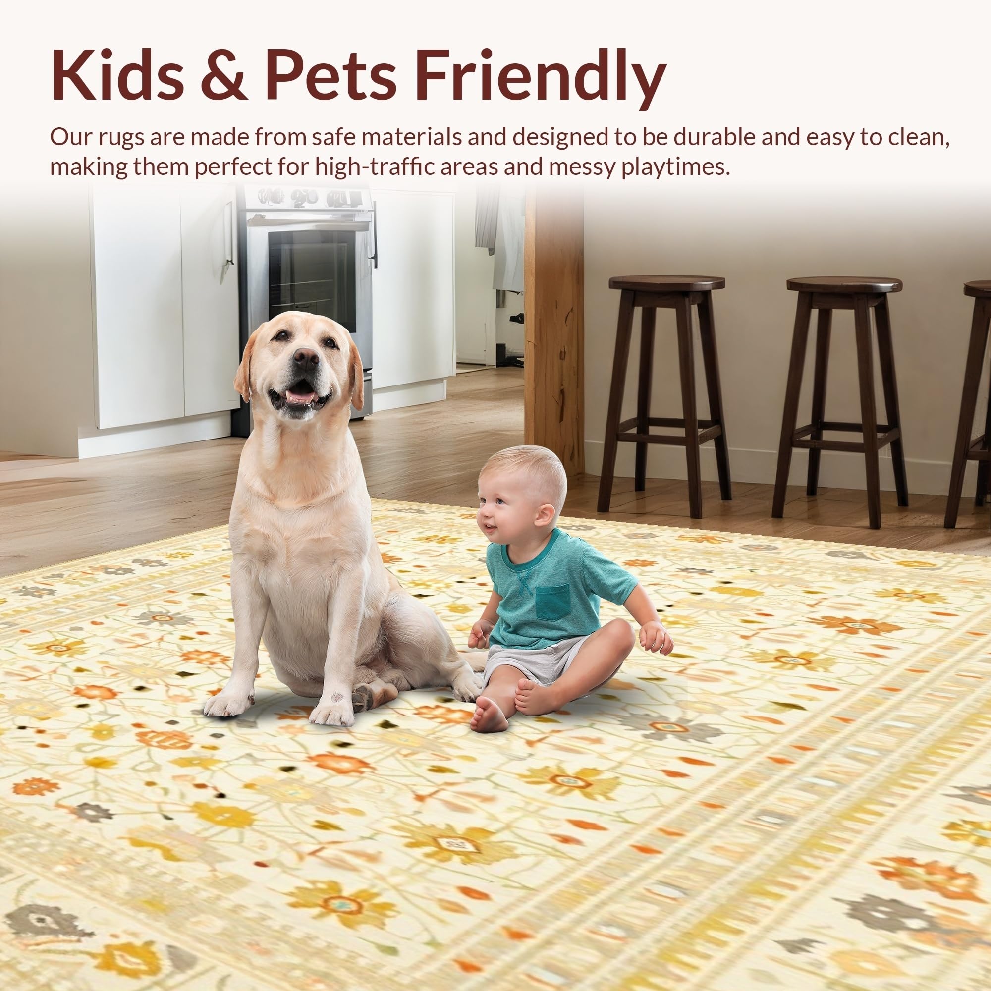 Ultra Soft Area Rug, Non Slip, Stain Resistant, Washable Area Rugs for Living Room, Bedroom, Mid Century Modern Oushak with Beige and Ivory Accents(Beige) Overview: