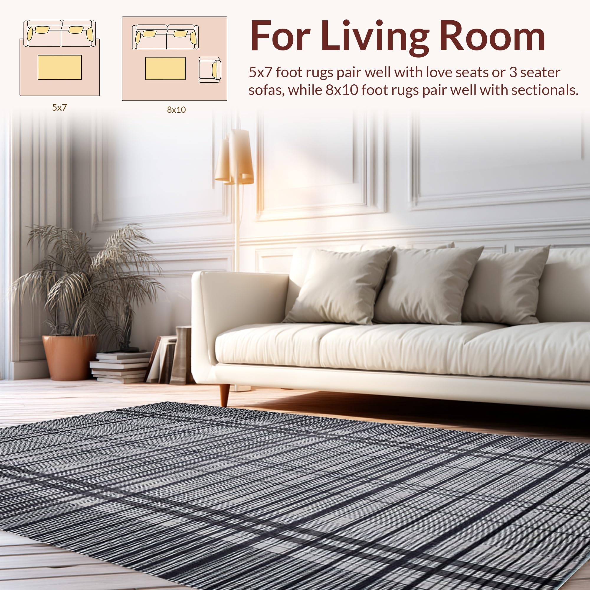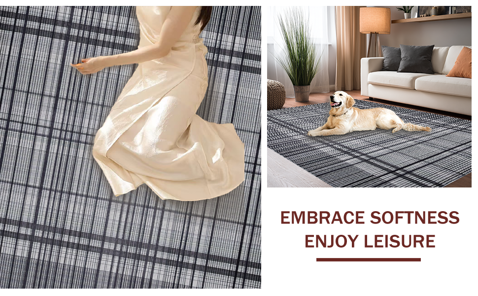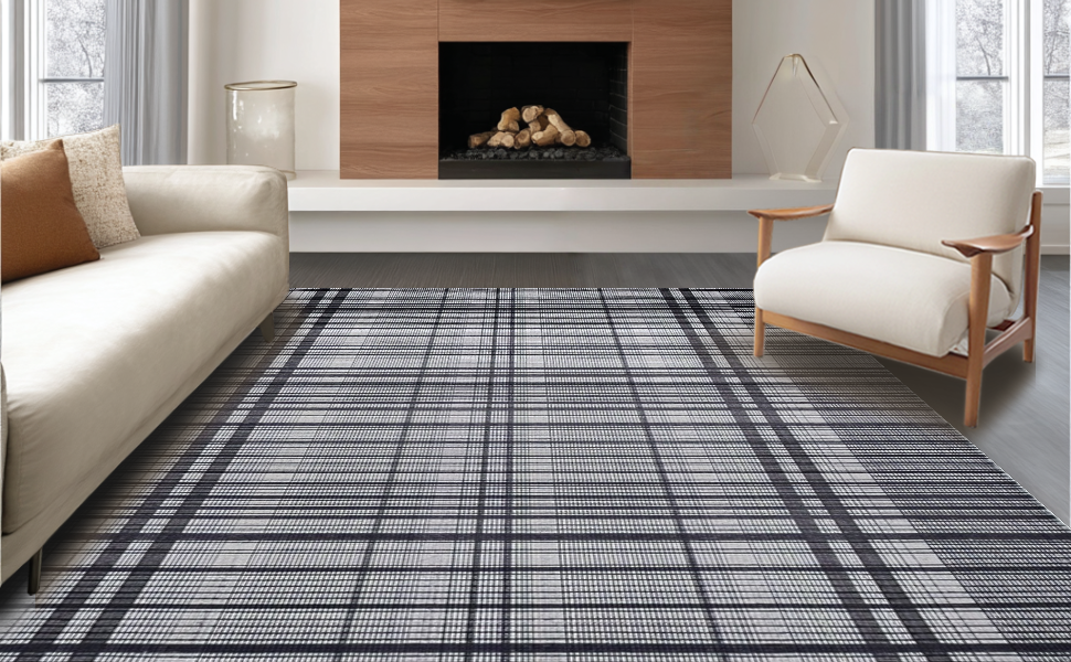 Ultra Soft Area Rug, Non Slip, Stain Resistant, Washable Area Rugs for Living Room, Bedroom, Mid-century Monochrome Checkerboard Style(Black) Overview: