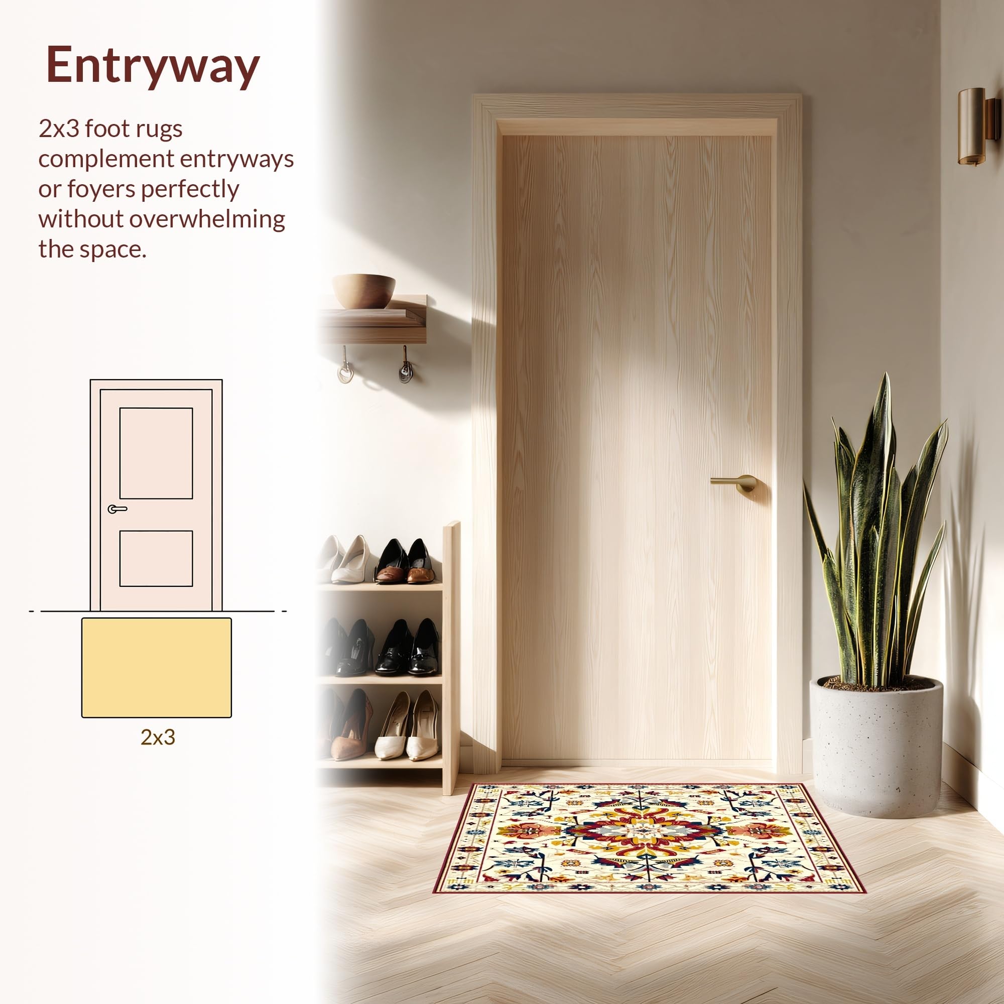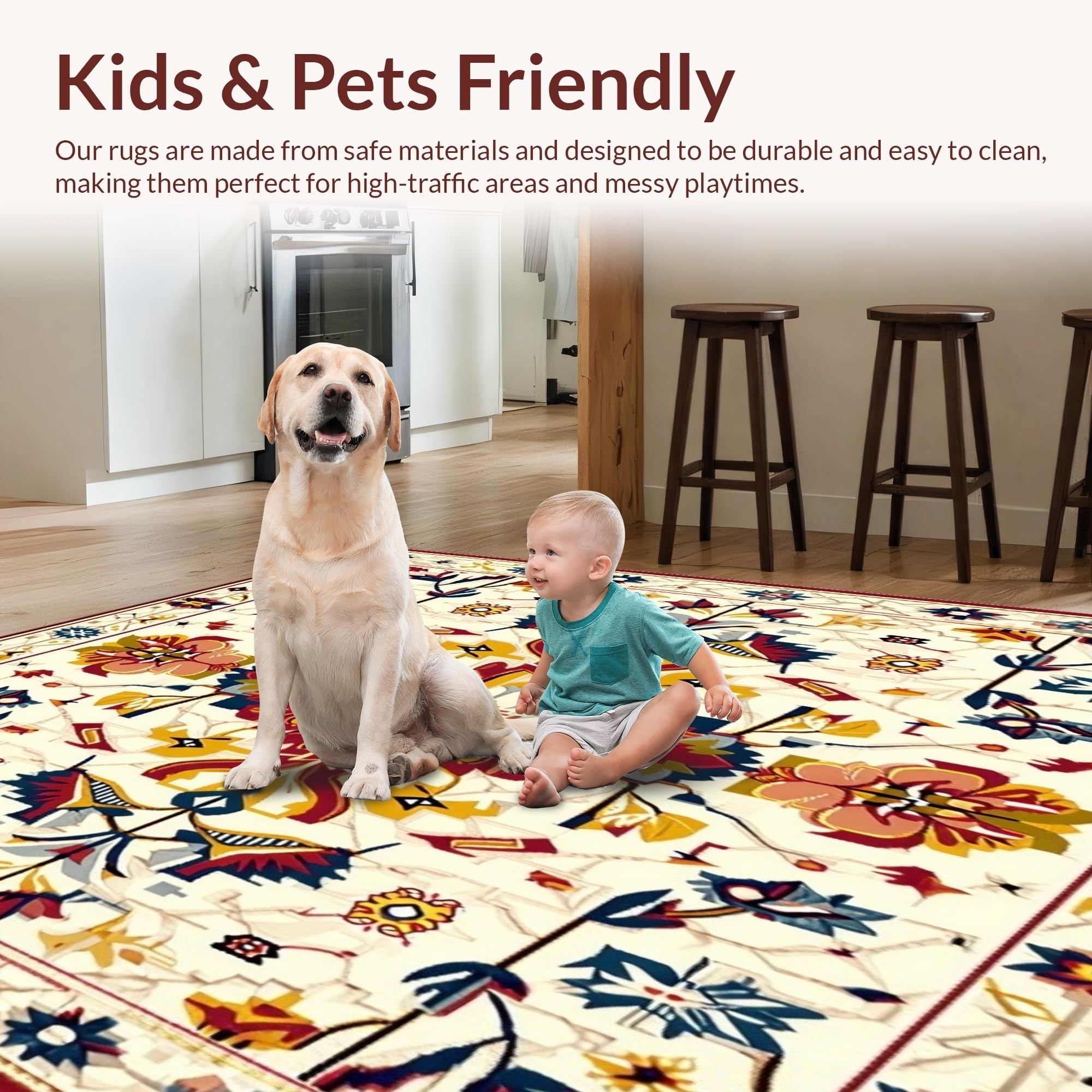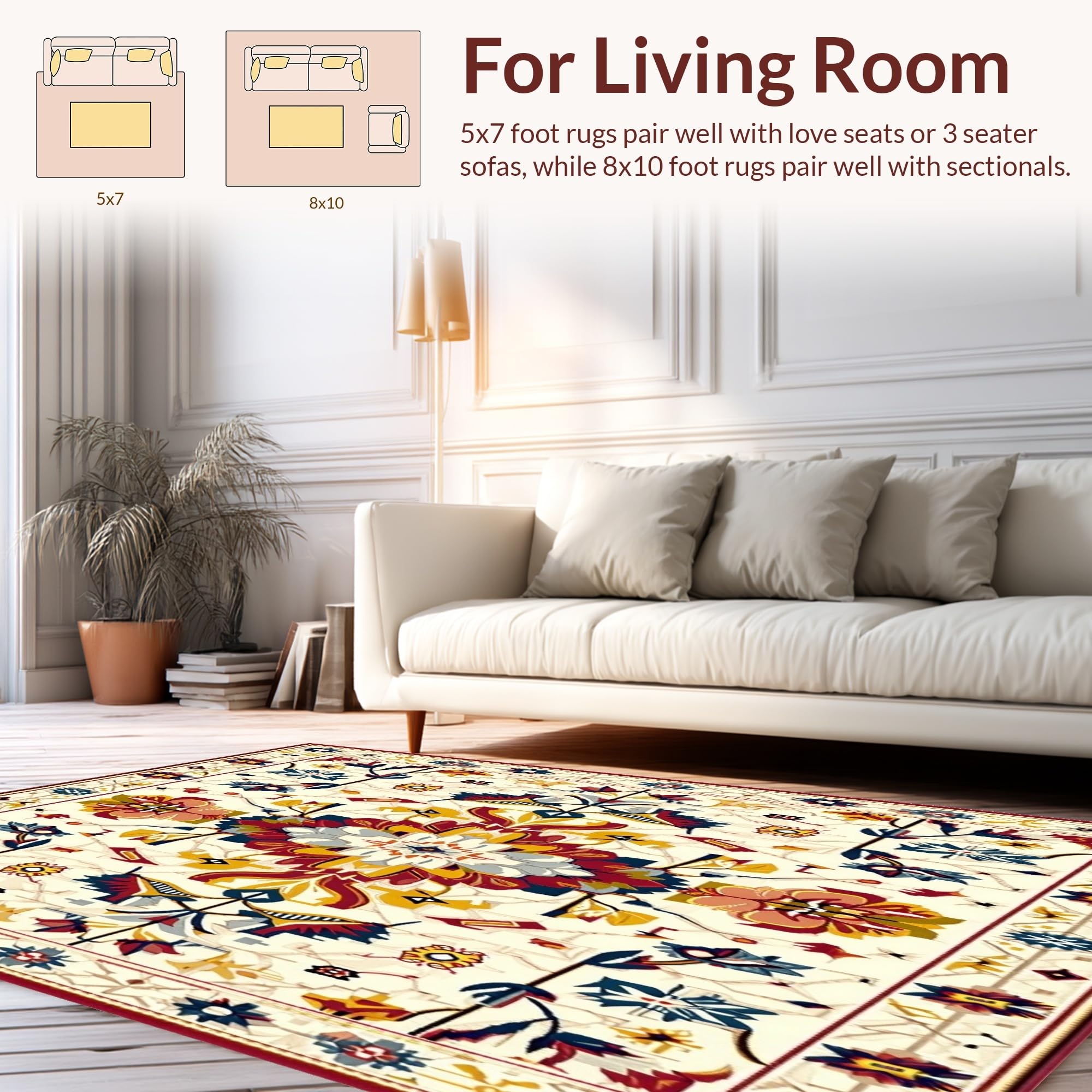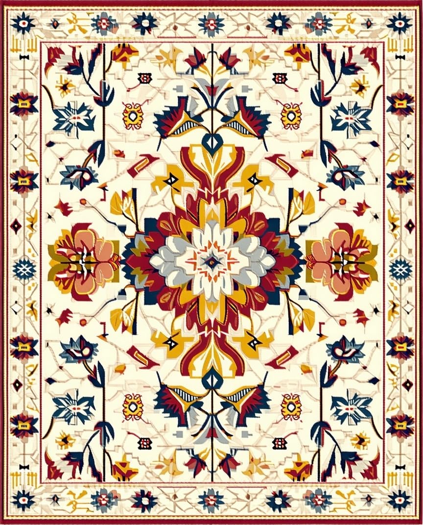 Ultra Soft Area Rug, Non Slip, Stain Resistant, Washable Area Rugs for Living Room, Bedroom, Mid Century Rainbow Oushak in Beige and Ivory(Ivory) Overview: