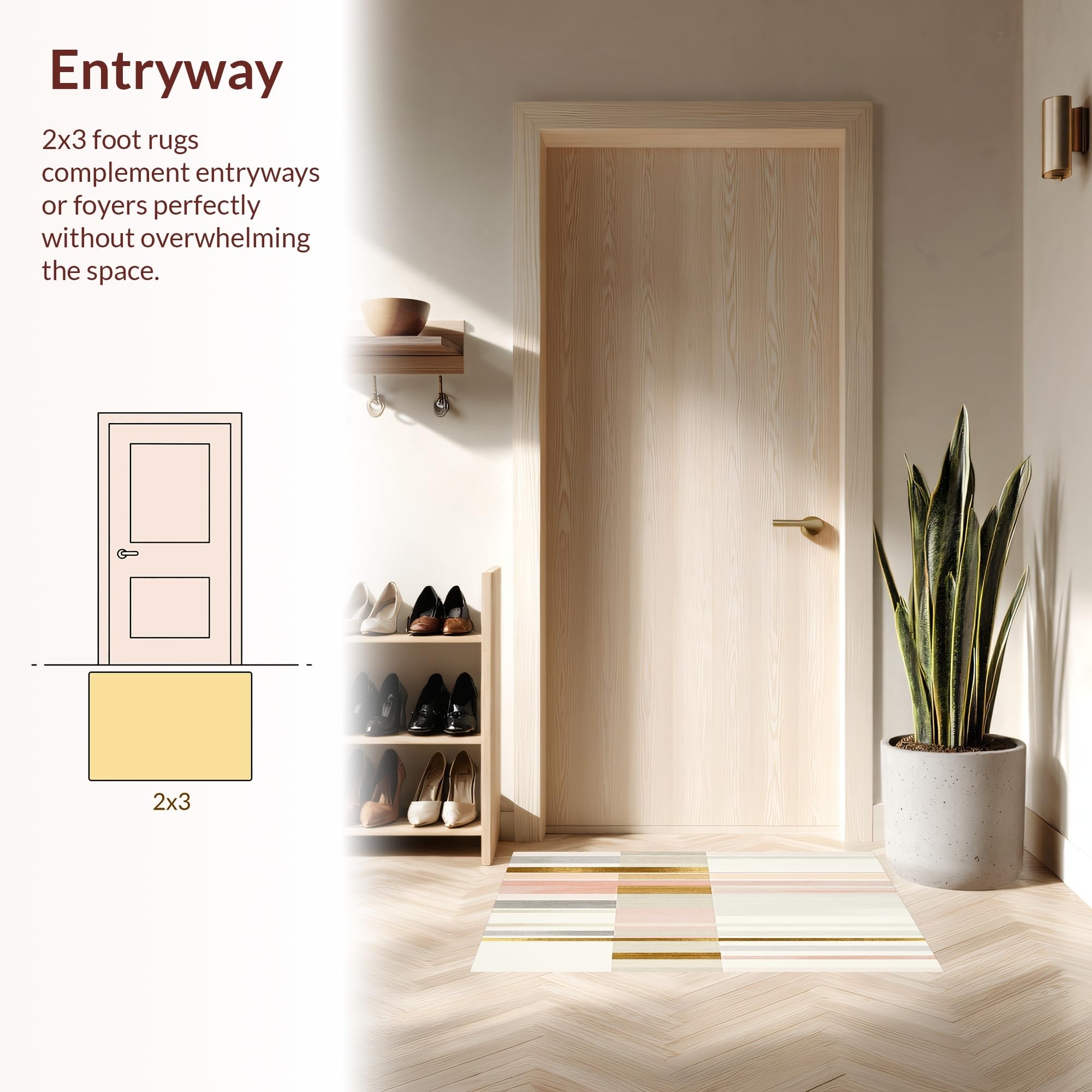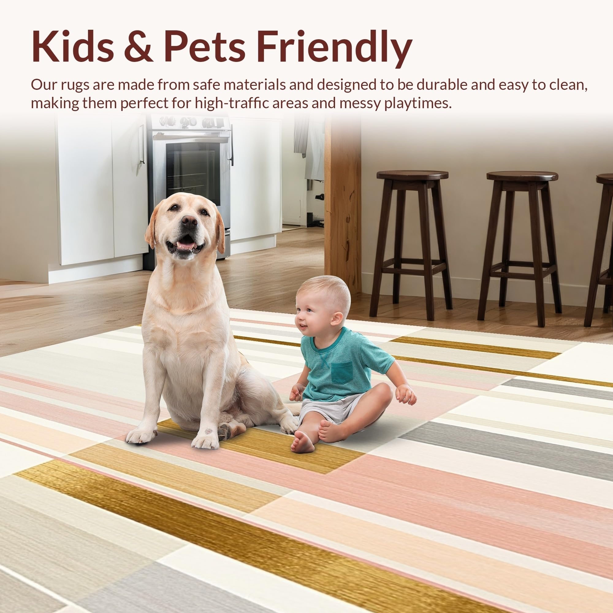 Ultra Soft Area Rug, Non Slip, Stain Resistant, Washable Area Rugs for Living Room, Bedroom, Mid Century Rainbow Stripes Area with Subtle Gradient and Abstract Bands(Beige) Overview: