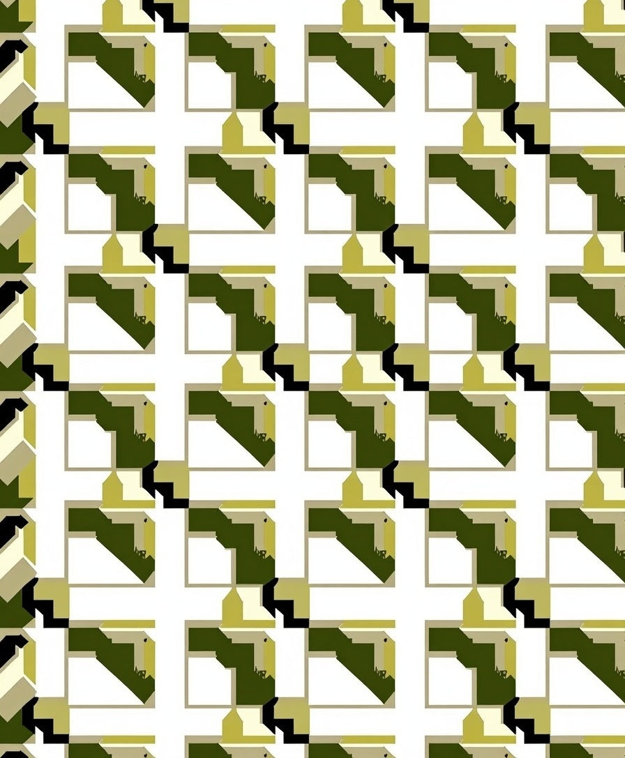 Mid Modern Interlocking Checkerboard with Bauhaus Inspired Plaid Motifs(White)