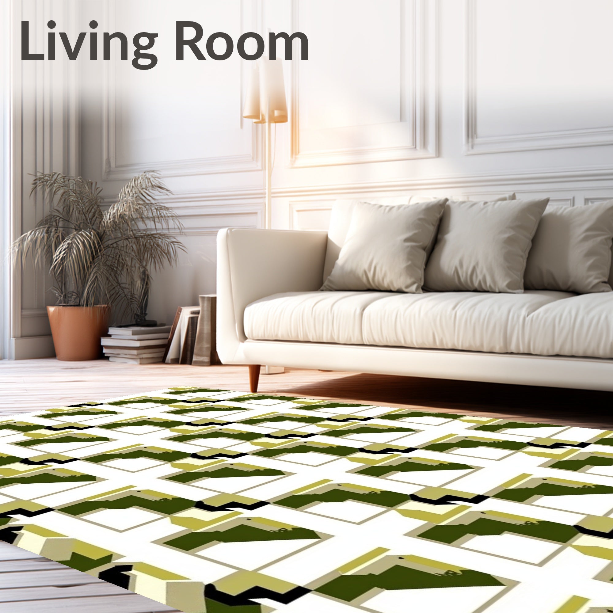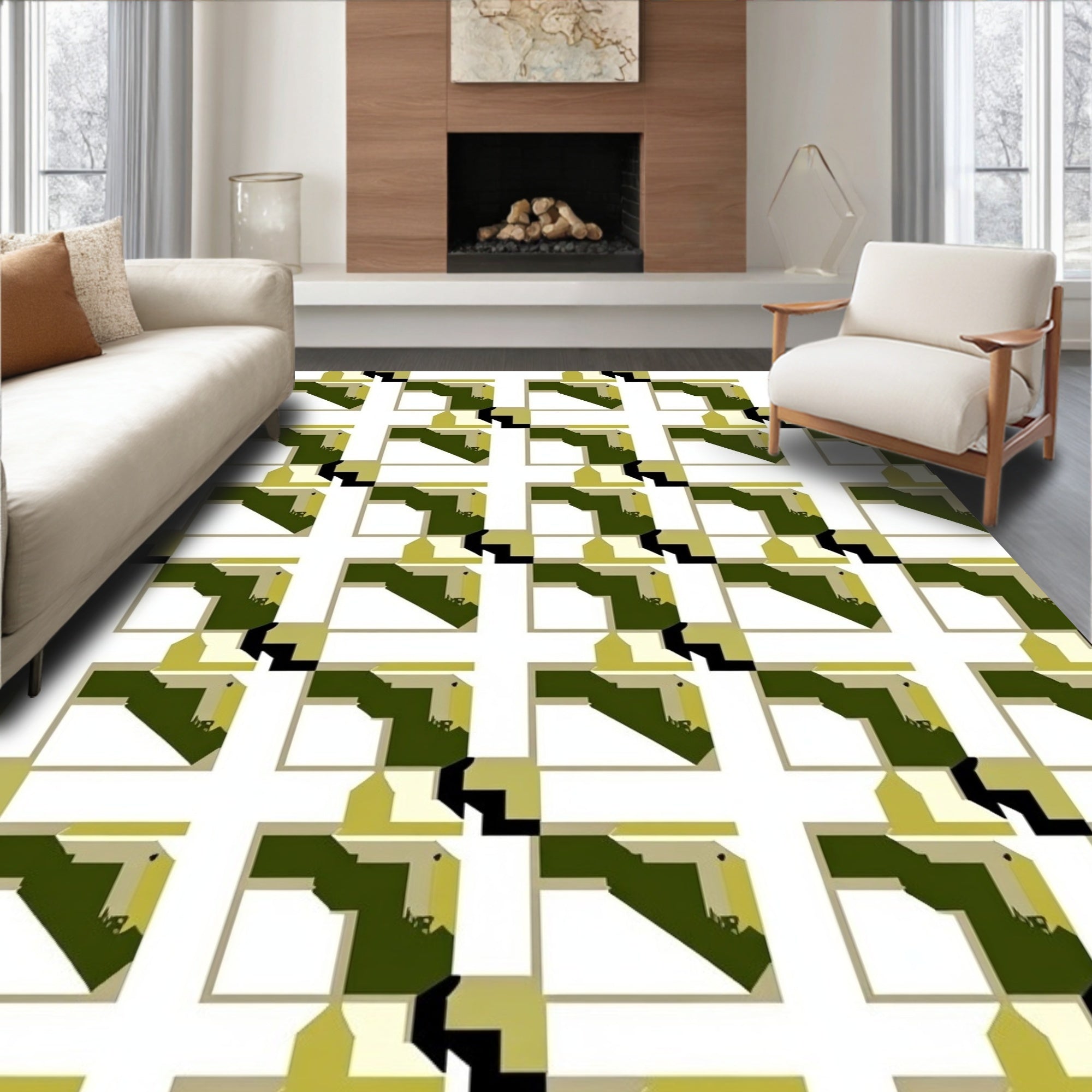 Ultra Soft Area Rug, Non Slip, Stain Resistant, Washable Area Rugs for Living Room, Bedroom, Mid Modern Interlocking Checkerboard with Bauhaus Inspired Plaid Motifs(White) Overview:
