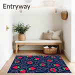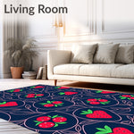 Flatwoven High Traffic Area Rug, Midnight Fruit Orchard Walkway Entrance Passage, Non Slip, Stain Resistant, Washable Area Rugs for Living Room, Bedroom (Blue) Overview: