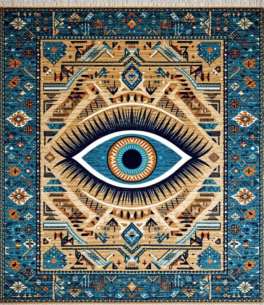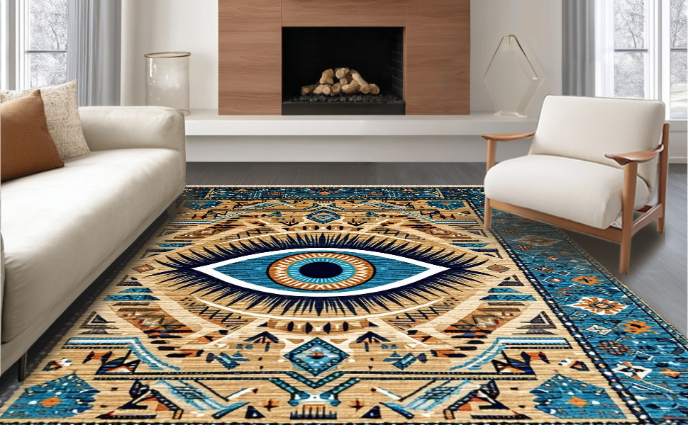 Ultra Soft Area Rug, Non Slip, Stain Resistant, Washable Area Rugs for Living Room, Bedroom, Minimalist Abstract Eye Design(Beige) Overview:
