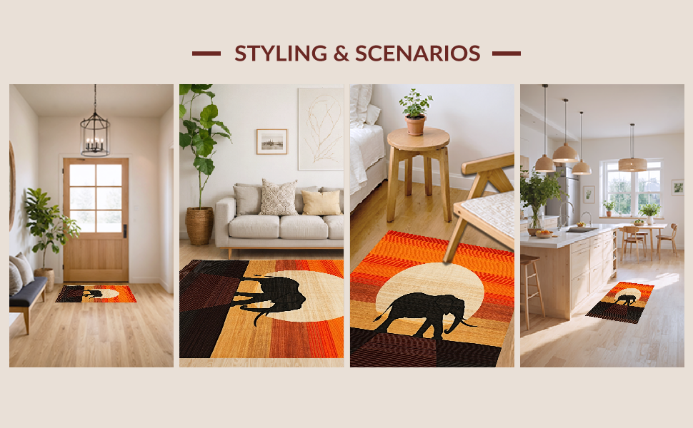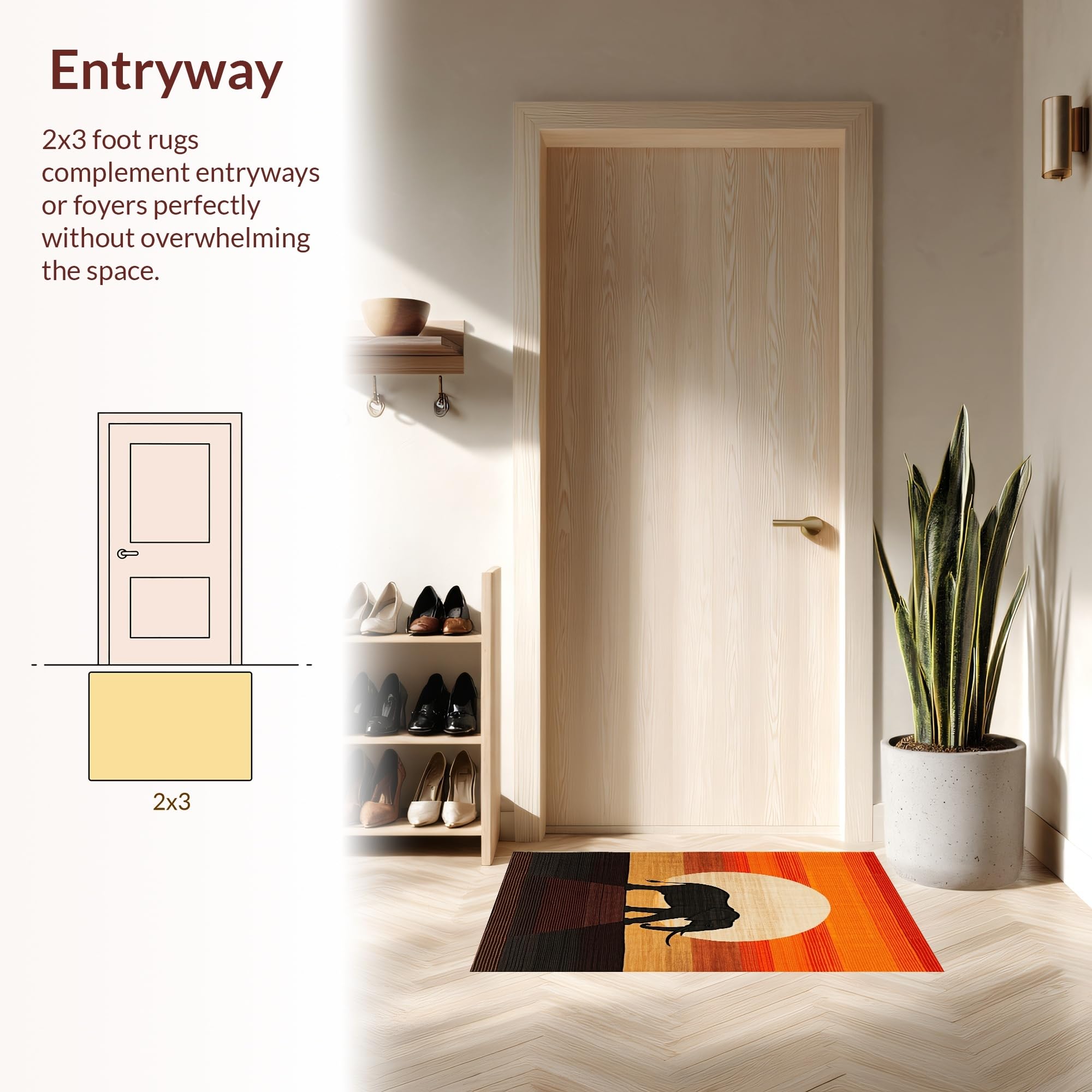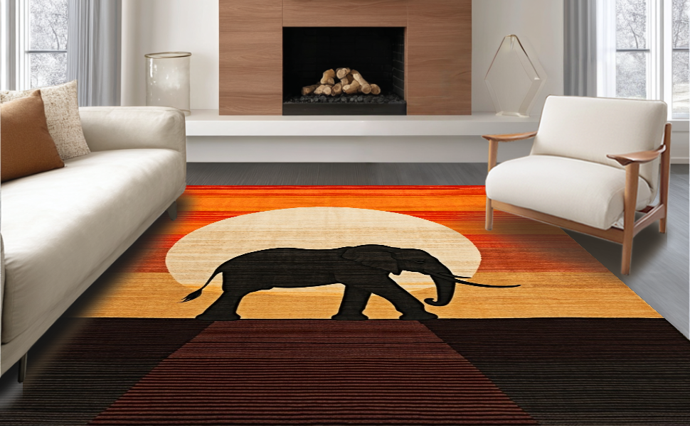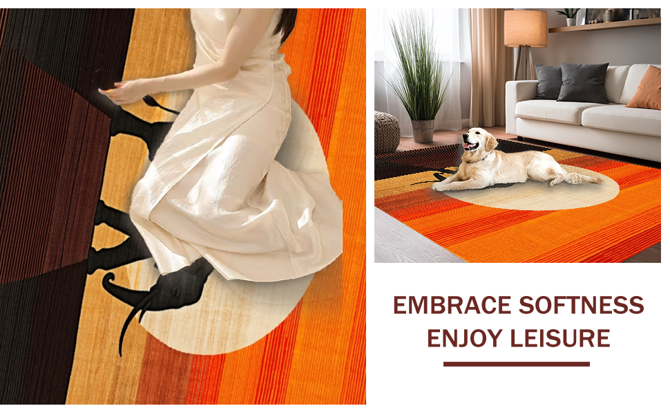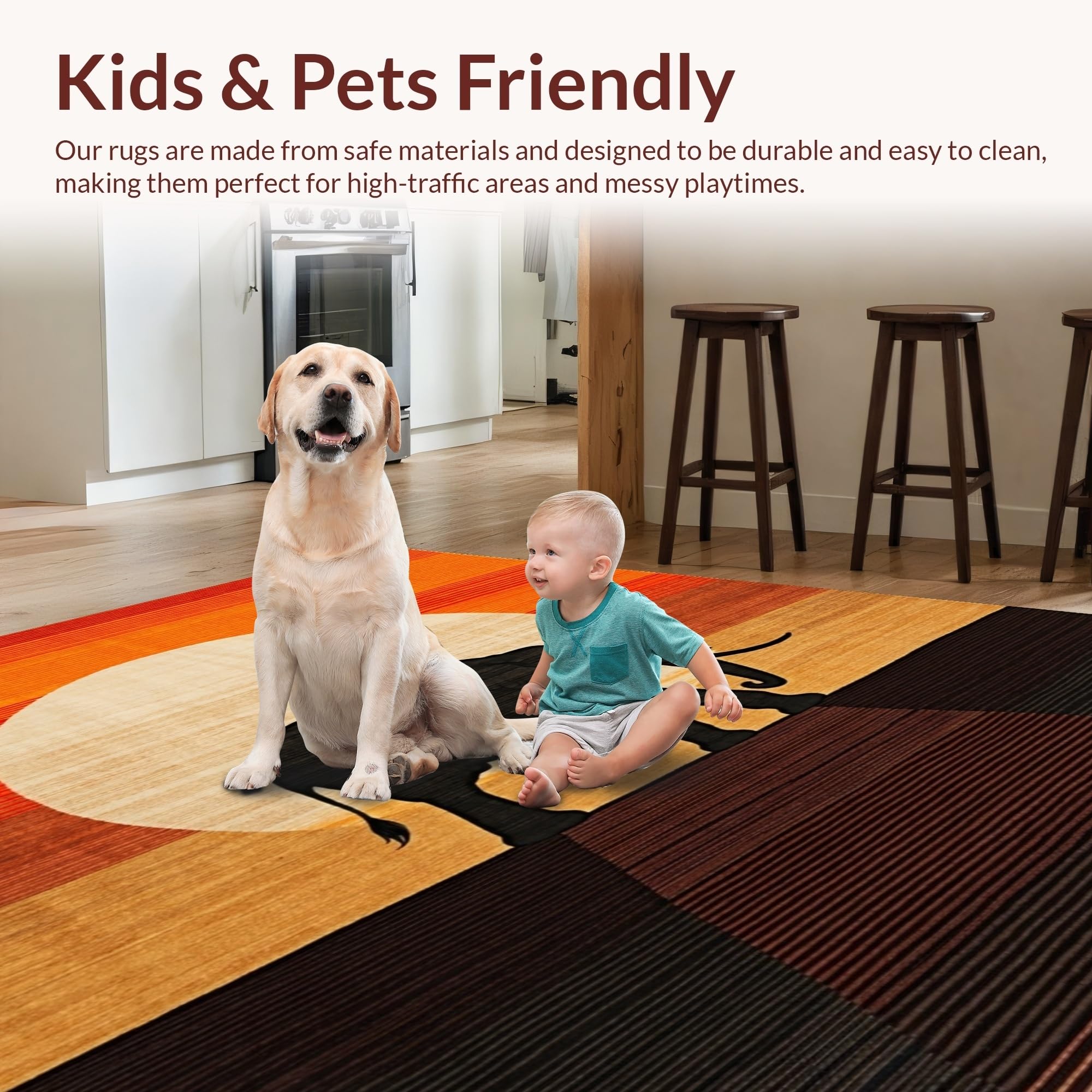 Ultra Soft Area Rug, Non Slip, Stain Resistant, Washable Area Rugs for Living Room, Bedroom, Minimalist Abstract Fauna Illustration(Orange) Overview: