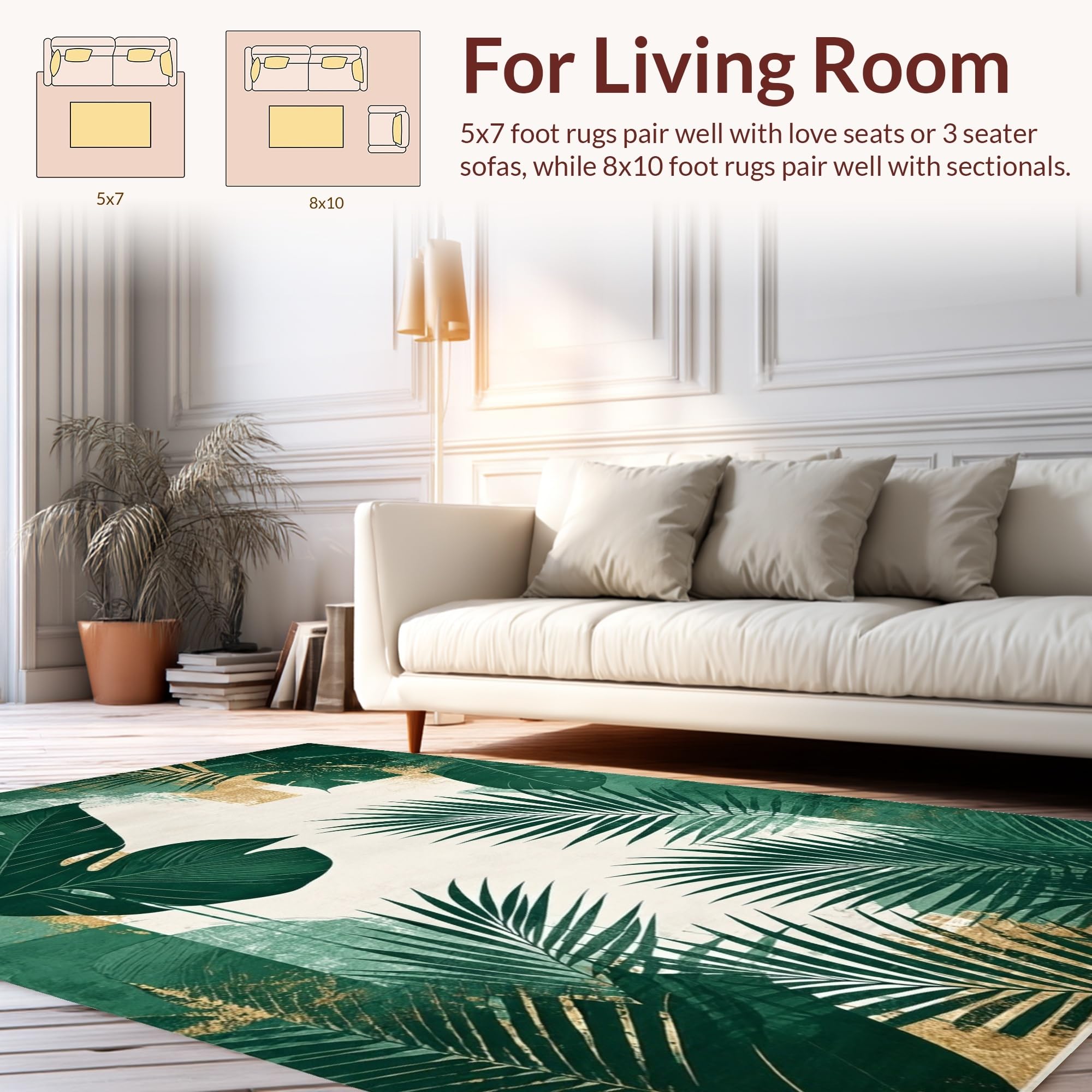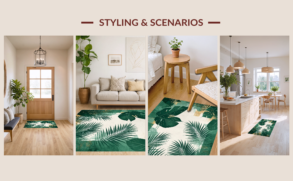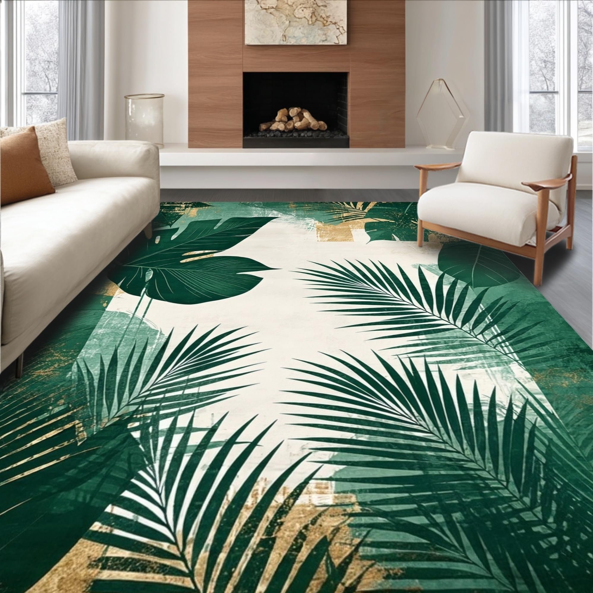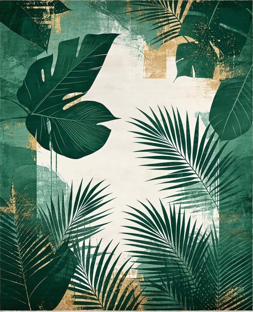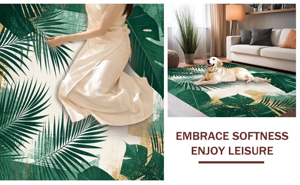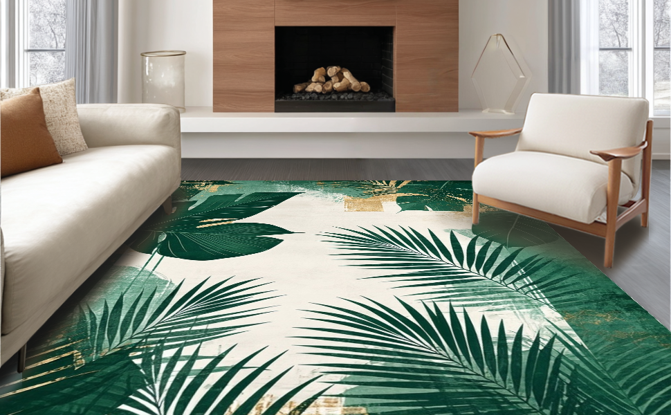 Ultra Soft Area Rug, Non Slip, Stain Resistant, Washable Area Rugs for Living Room, Bedroom, Minimalist Abstract Green Palette(Green) Overview:
