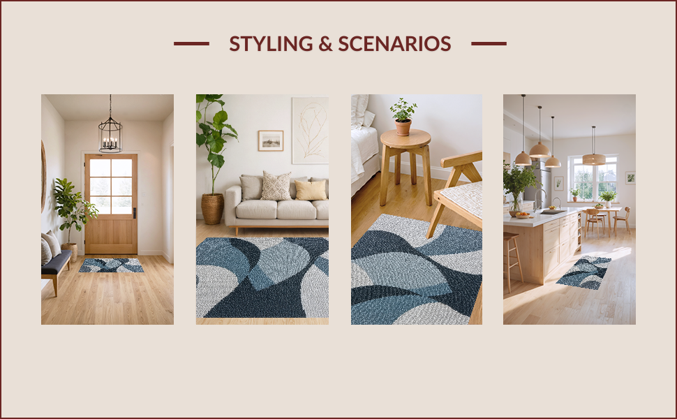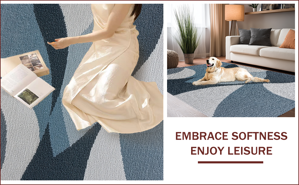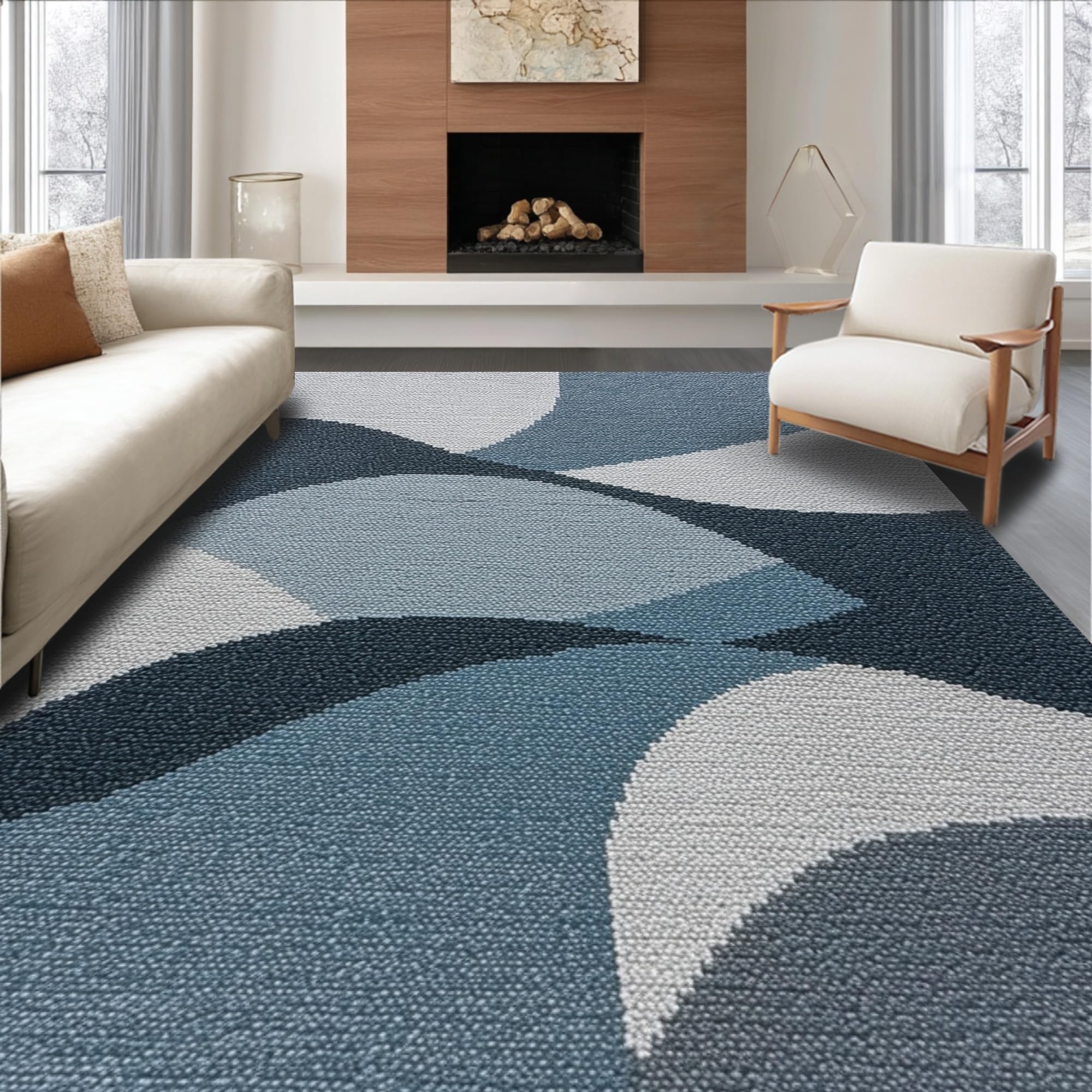 Ultra Soft Area Rug, Non Slip, Stain Resistant, Washable Area Rugs for Living Room, Bedroom, Minimalist Abstract Grey Entryway Rug for High-Traffic Areas(Blue) Overview: