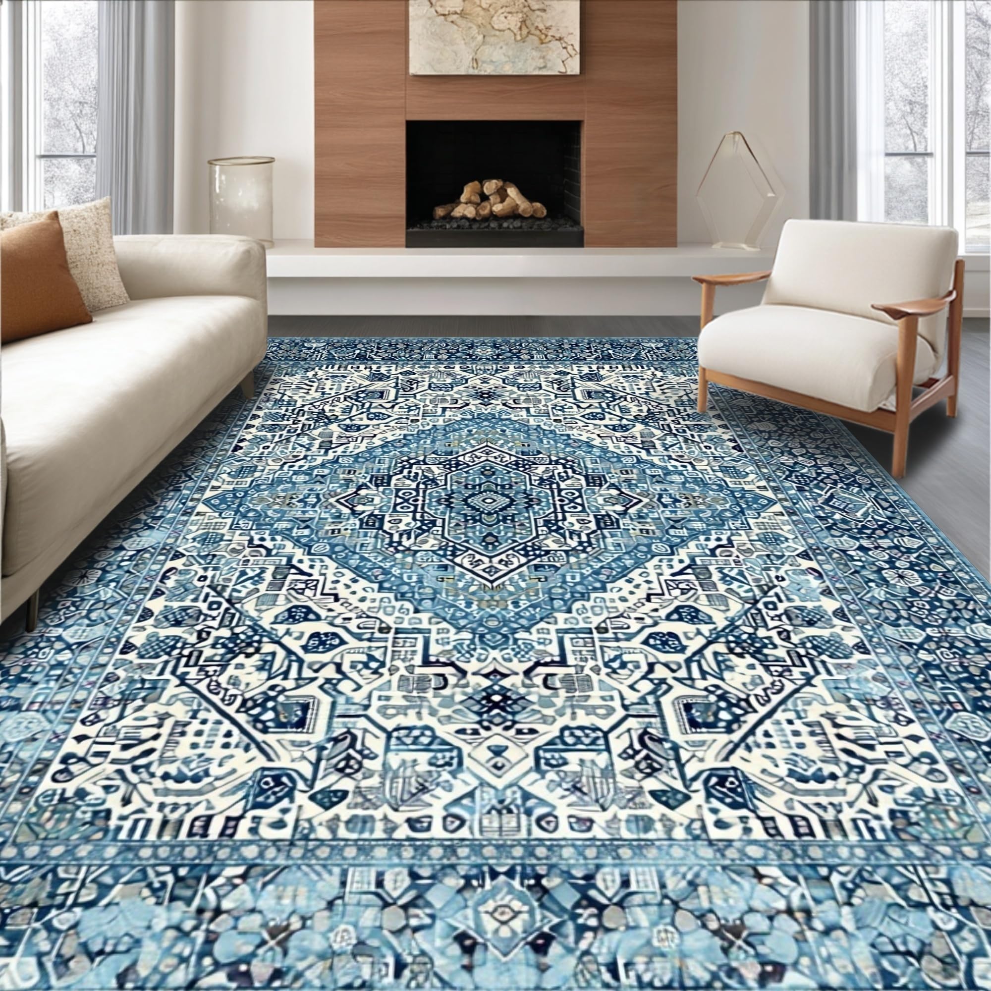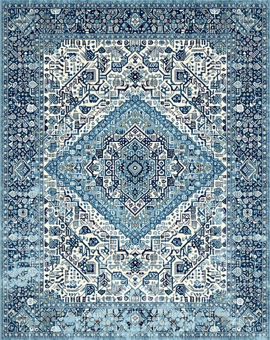 Ultra Soft Area Rug, Non Slip, Stain Resistant, Washable Area Rugs for Living Room, Bedroom, Minimalist Abstract Linear Arrangement(Blue) Overview: