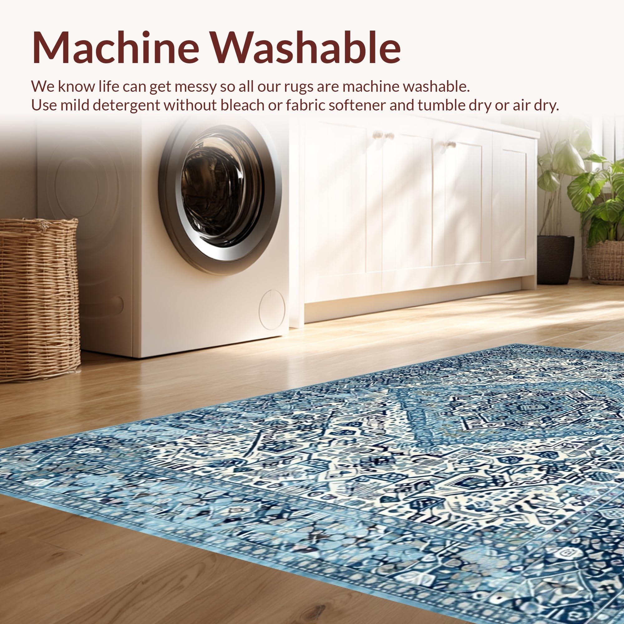 - Machine Washable: Our rugs can be easily thrown in the wash machine.