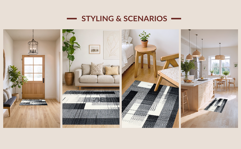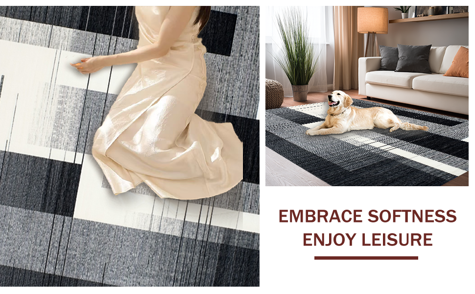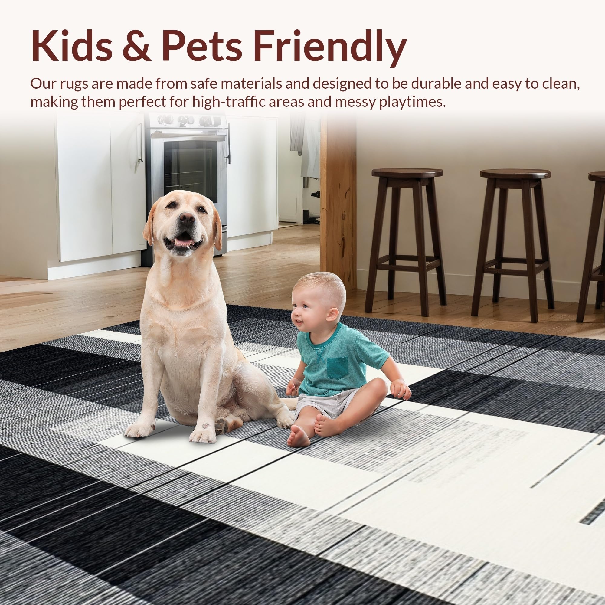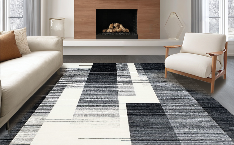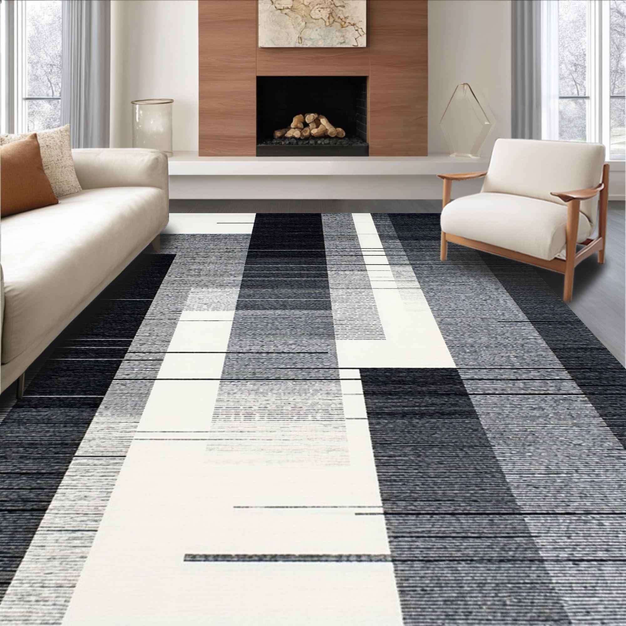 Ultra Soft Area Rug, Non Slip, Stain Resistant, Washable Area Rugs for Living Room, Bedroom, Minimalist Abstract Monochrome Artistry(Gray) Overview: