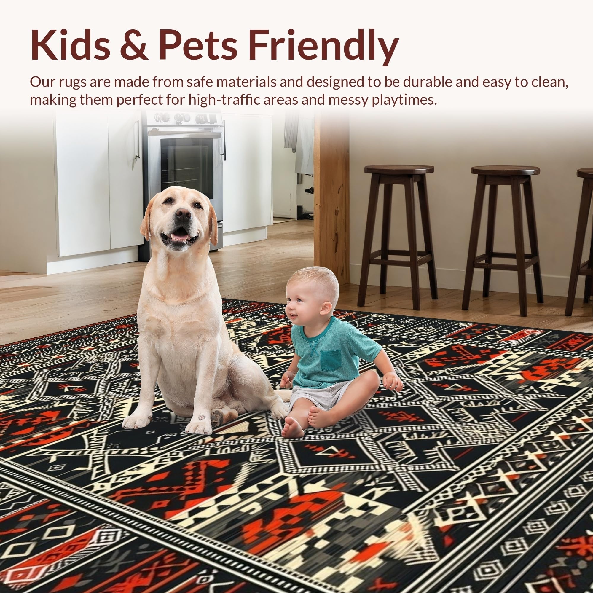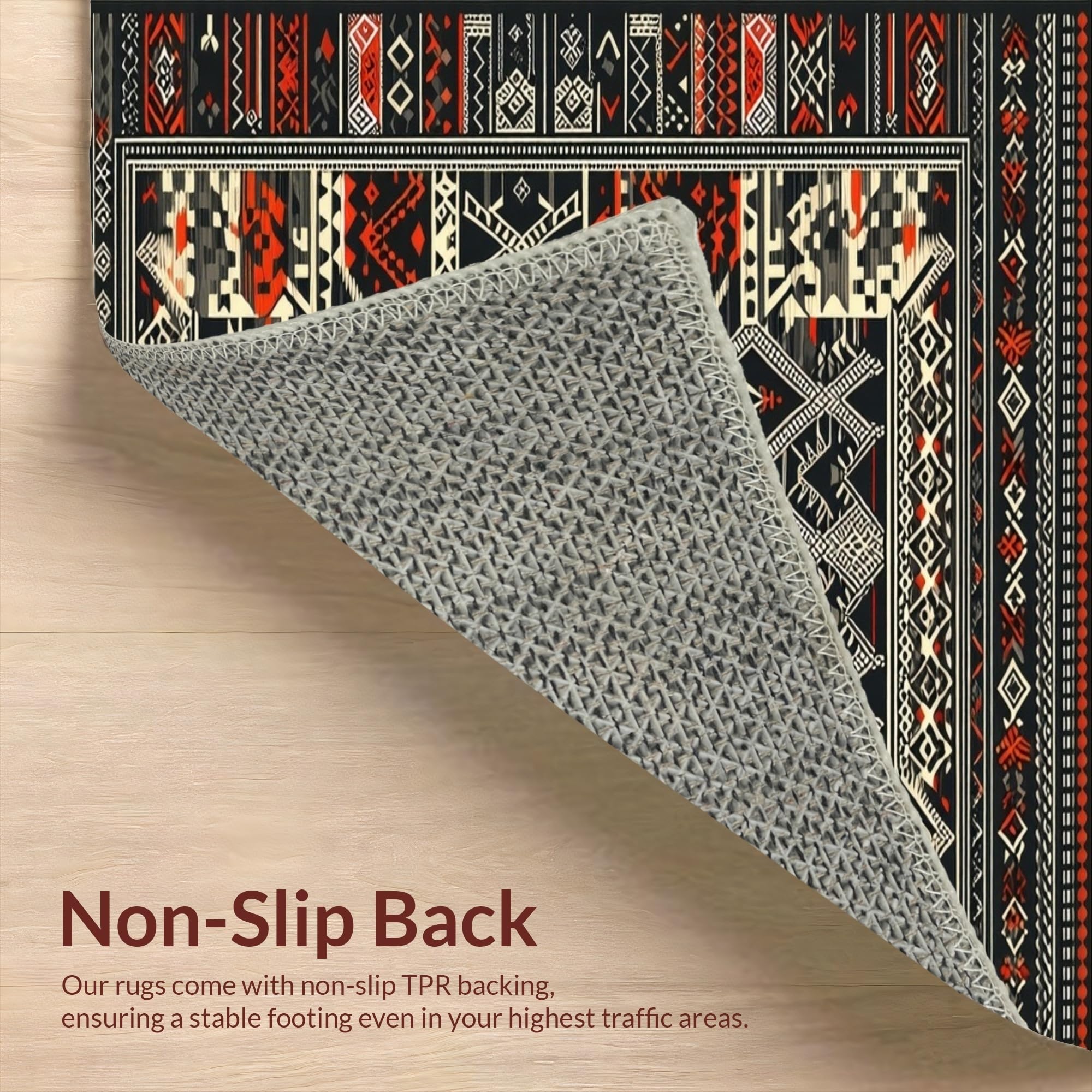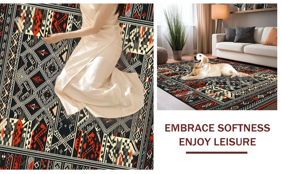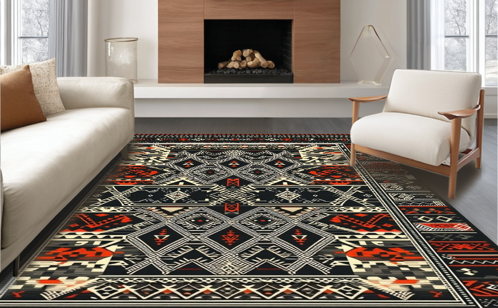 Ultra Soft Area Rug, Non Slip, Stain Resistant, Washable Area Rugs for Living Room, Bedroom, Minimalist Abstract Monochrome Design(Black) Overview:
