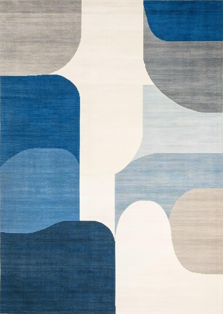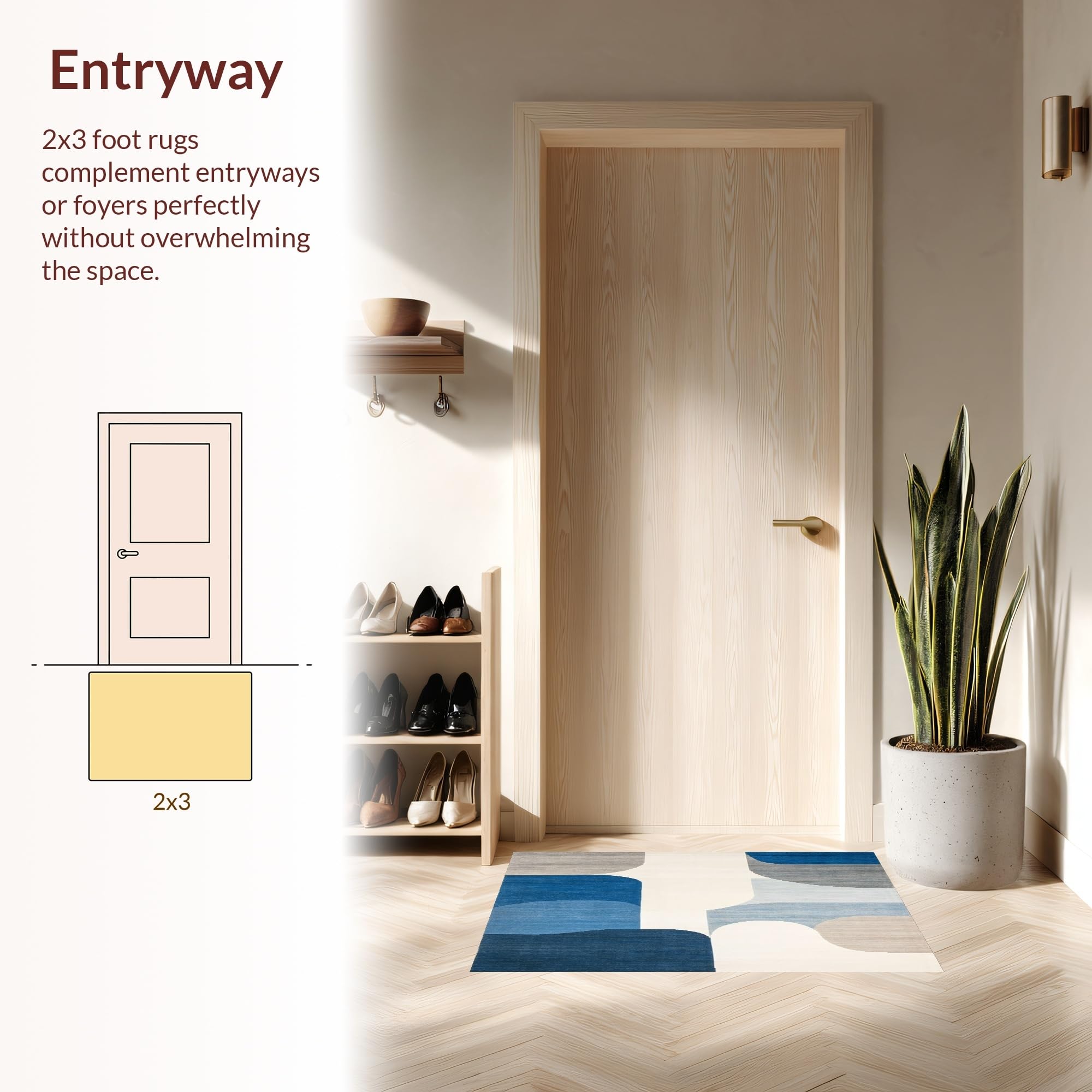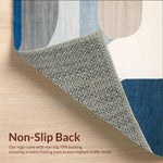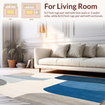 Ultra Soft Area Rug, Non Slip, Stain Resistant, Washable Area Rugs for Living Room, Bedroom, Minimalist Abstract with Blue Grey Gradient and Creamy Beige Lines(Blue) Overview: