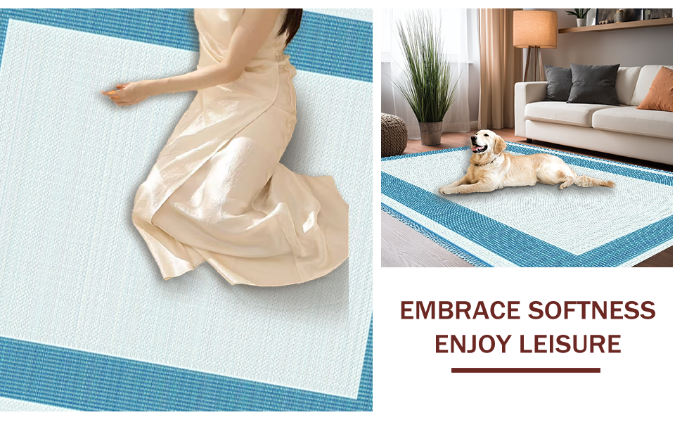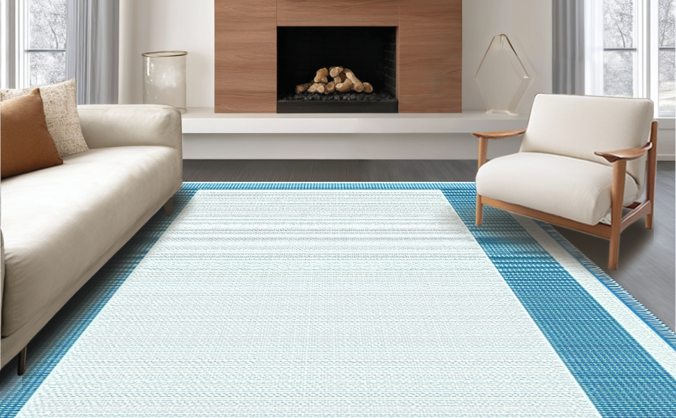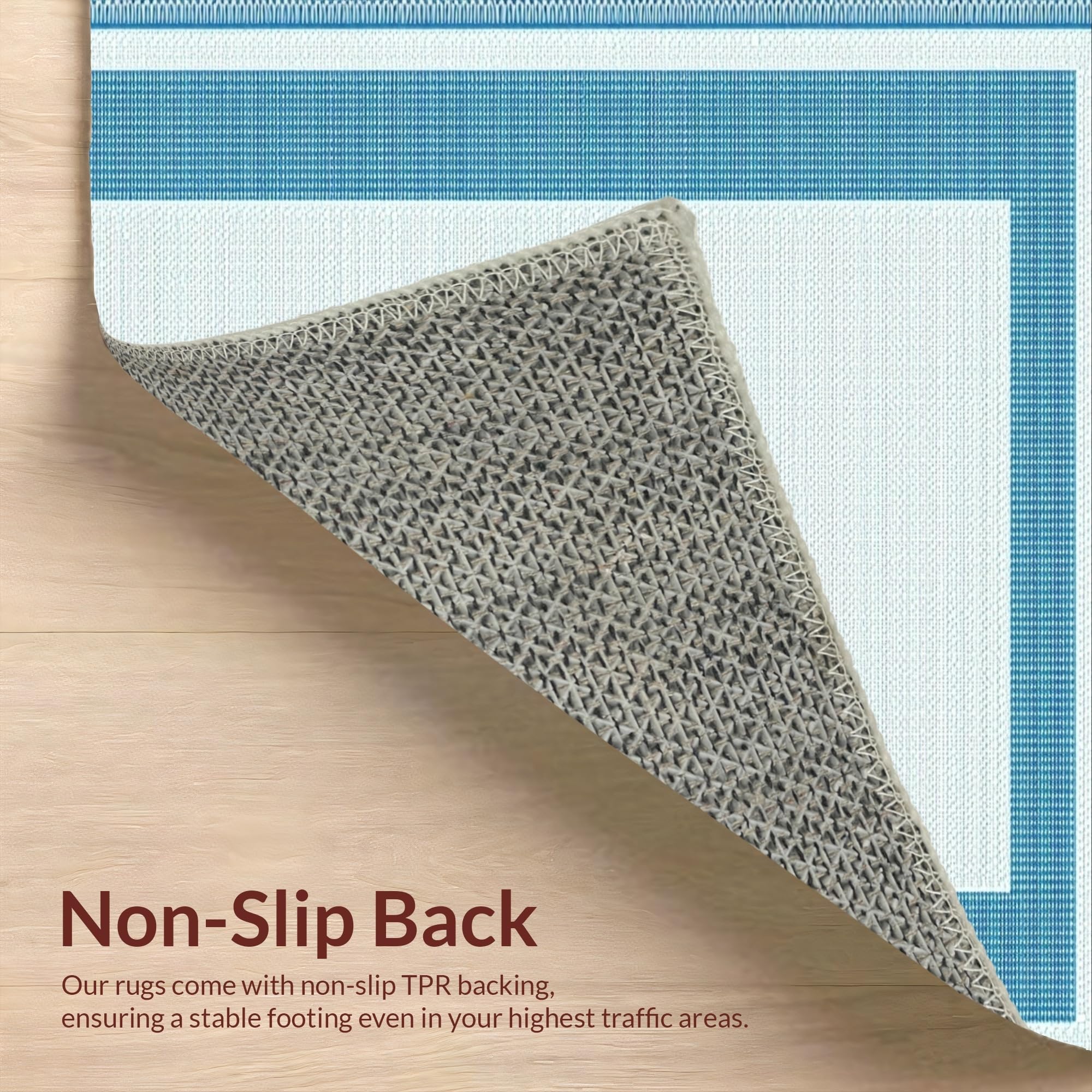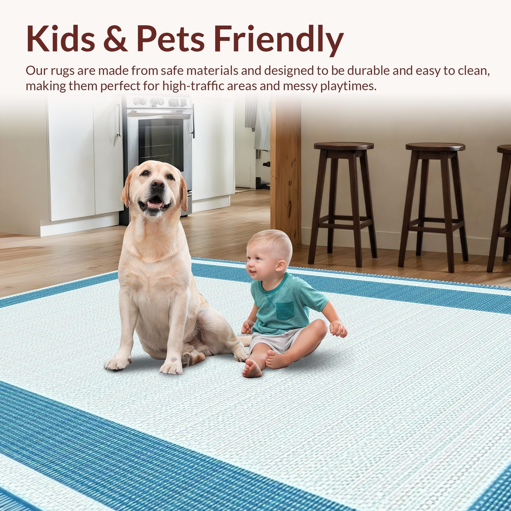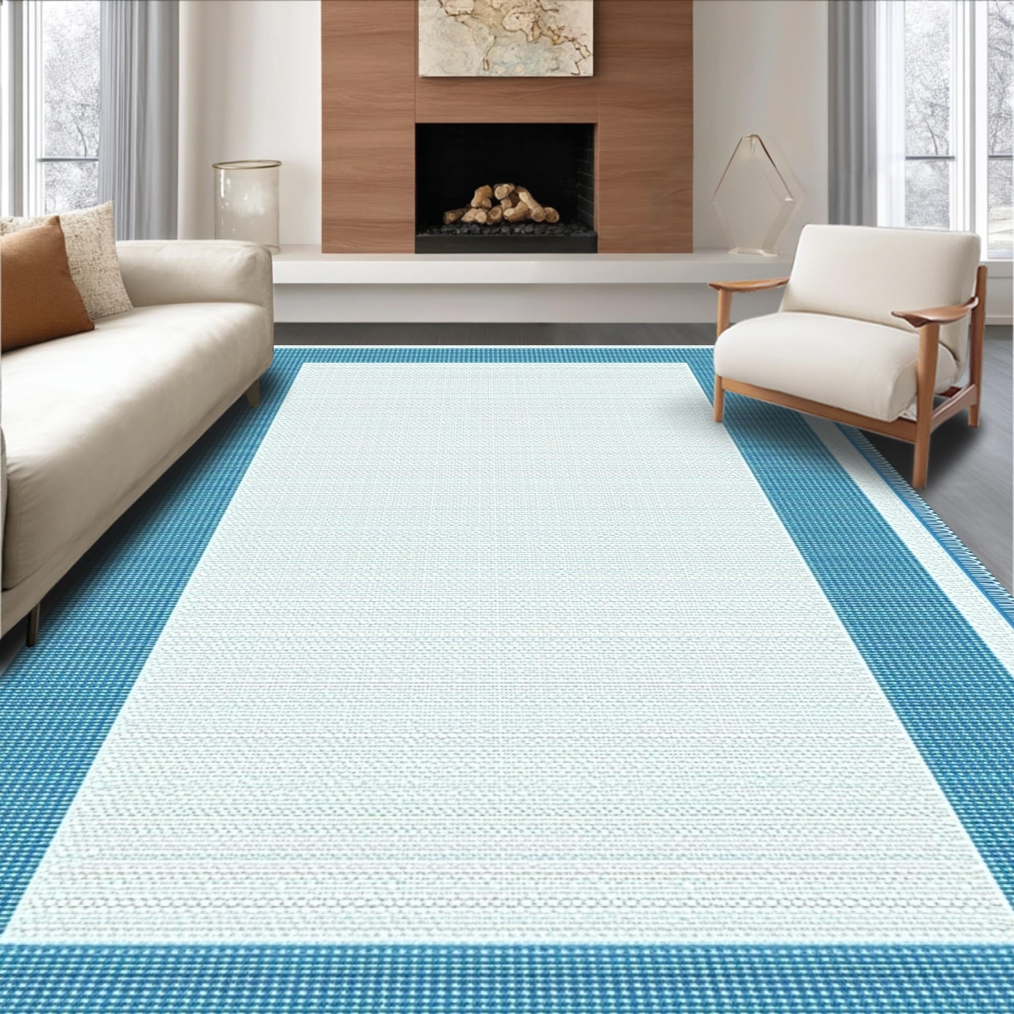 Ultra Soft Area Rug, Non Slip, Stain Resistant, Washable Area Rugs for Living Room, Bedroom, Minimalist Aqua Accented Design(White) Overview: