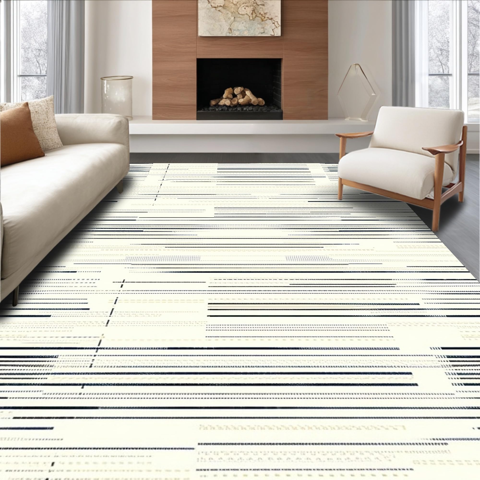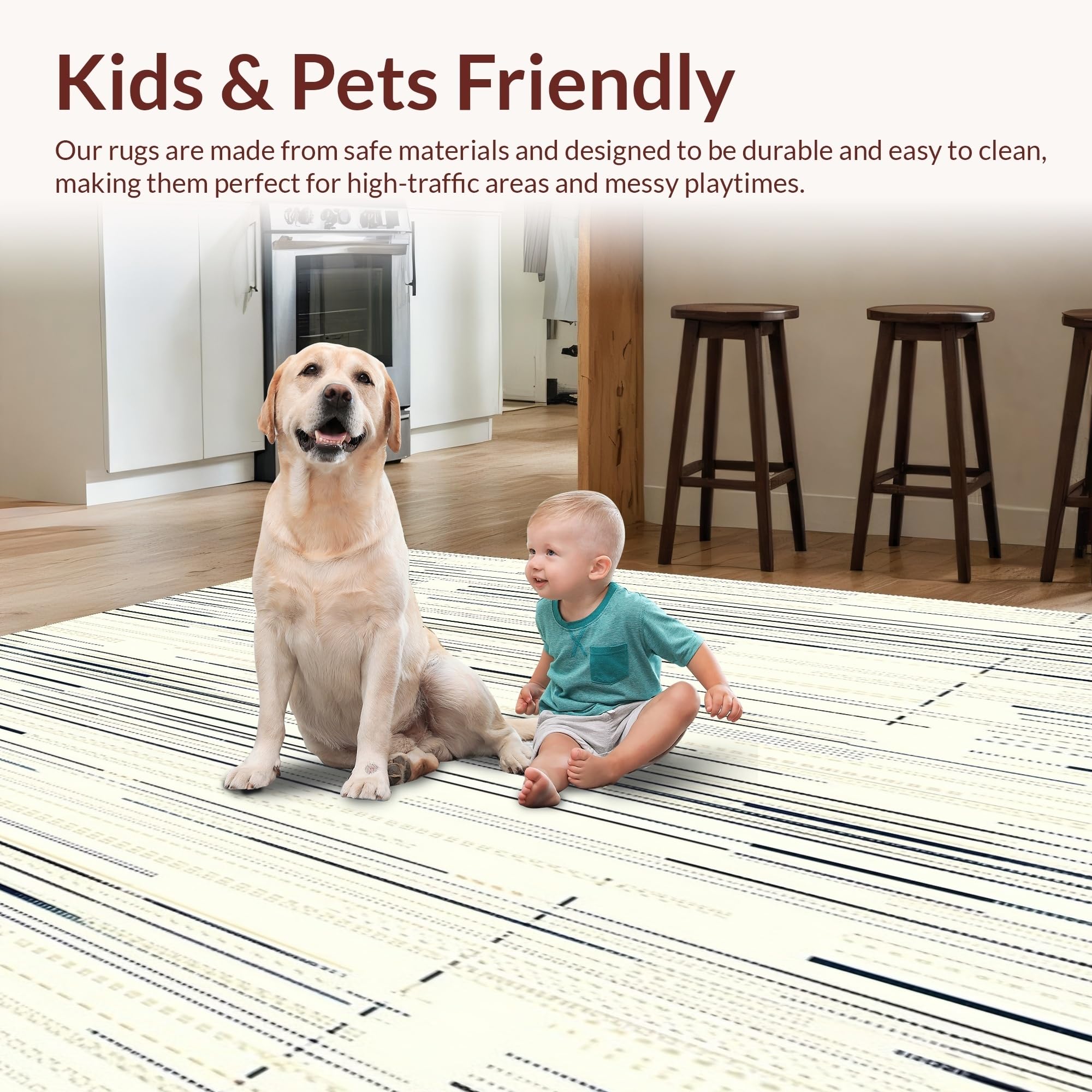 Ultra Soft Area Rug, Non Slip, Stain Resistant, Washable Area Rugs for Living Room, Bedroom, Minimalist Area with Abstract Geometric Lines and Modern Design(Beige) Overview: