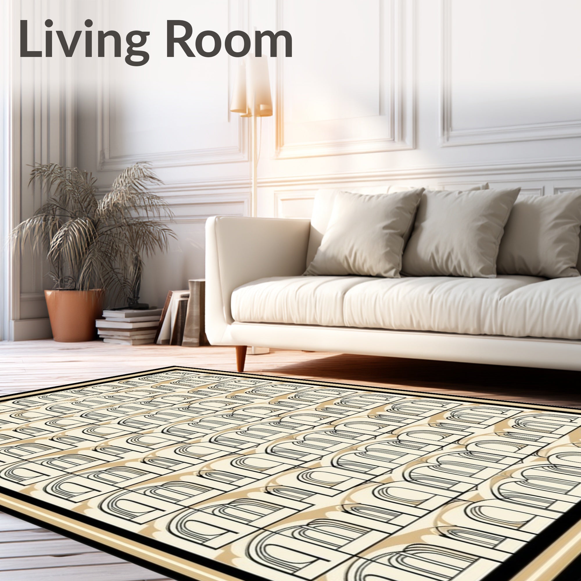 Flatwoven High Traffic Area Rug, Minimalist Art with Symmetrical Arch Motif and Graphic Detailing, Non Slip, Stain Resistant, Washable Area Rugs for Living Room, Bedroom (Beige) Overview: