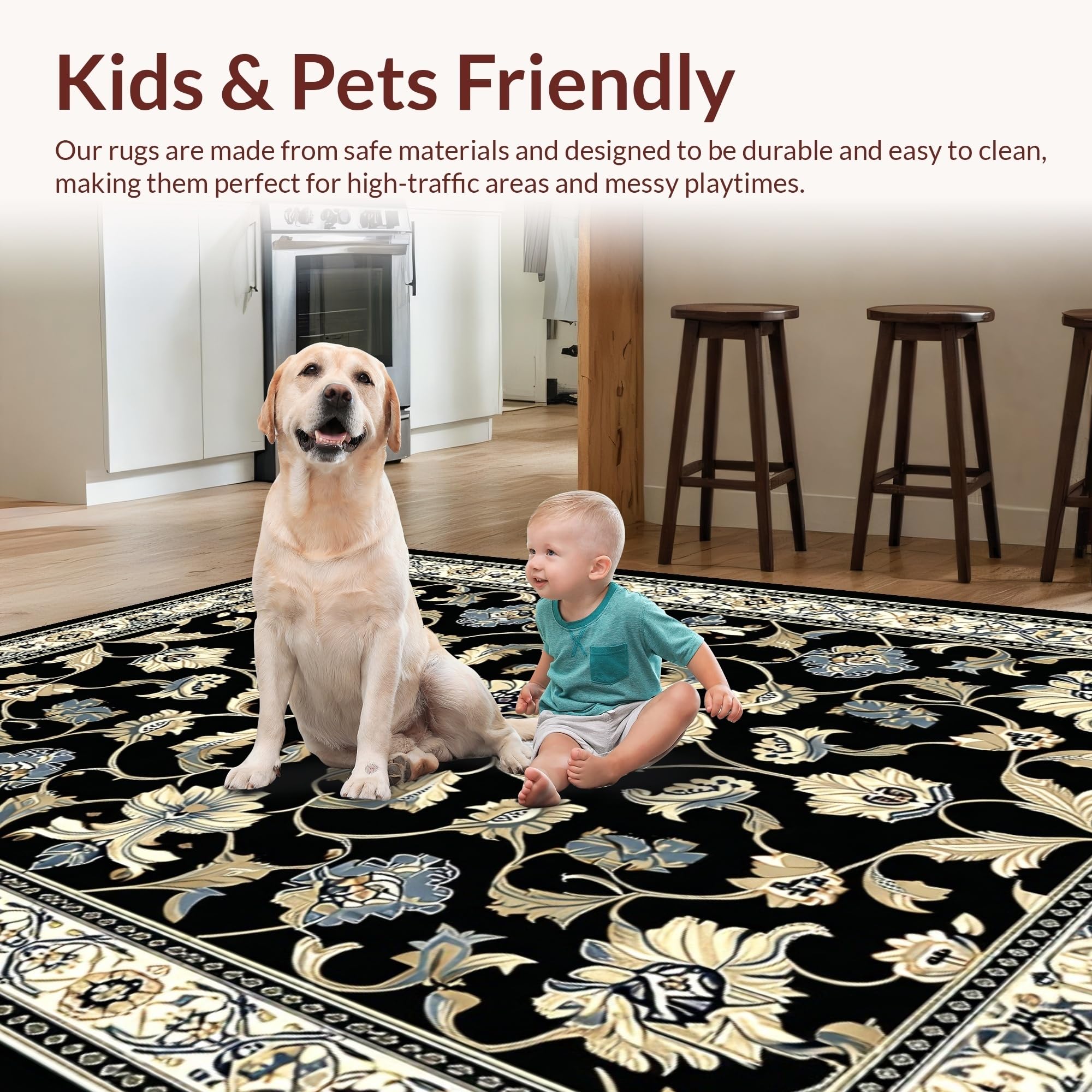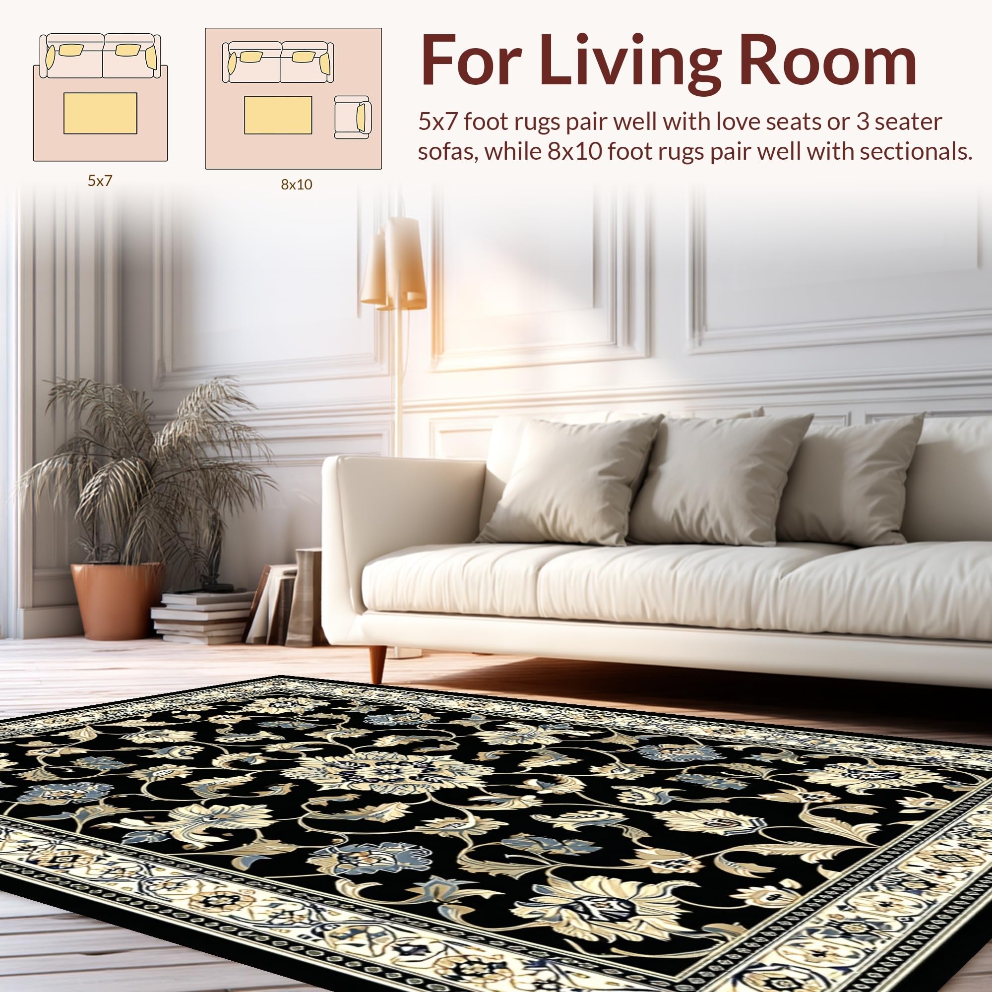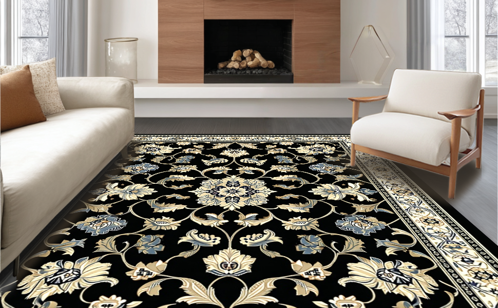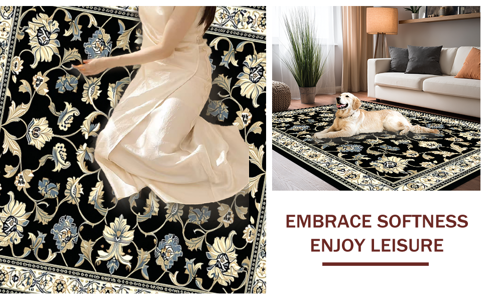 Ultra Soft Area Rug, Non Slip, Stain Resistant, Washable Area Rugs for Living Room, Bedroom, Minimalist Artful Abstract Style(Black) Overview: