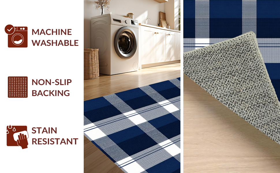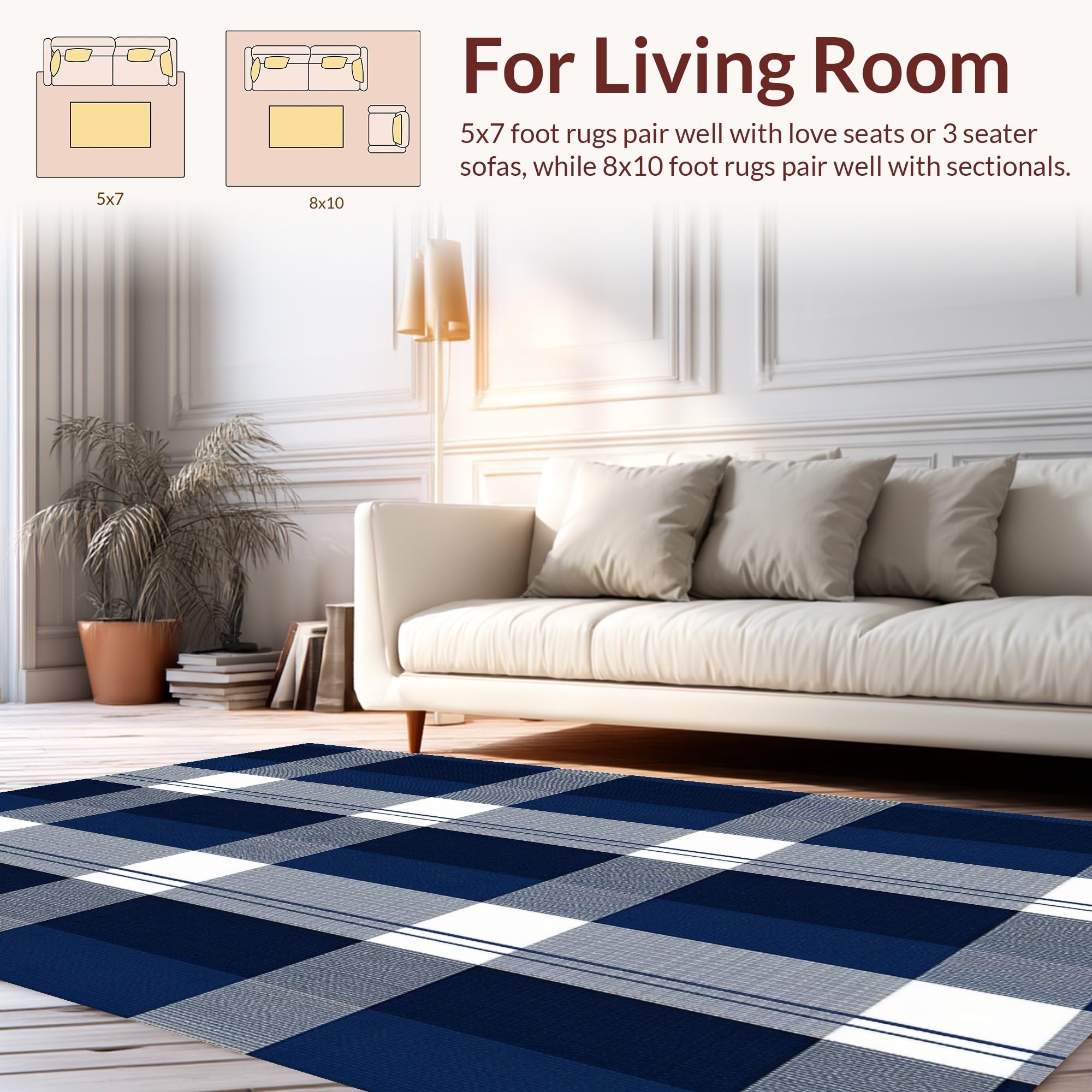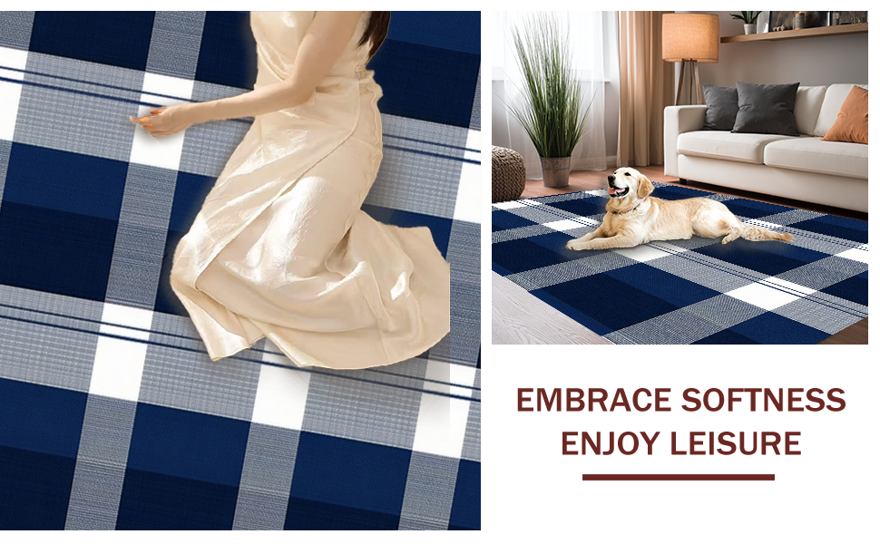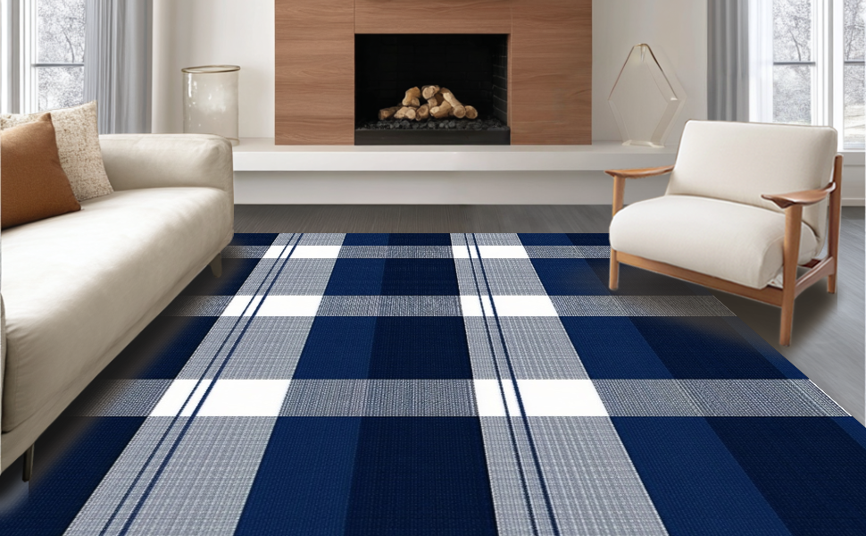 Ultra Soft Area Rug, Non Slip, Stain Resistant, Washable Area Rugs for Living Room, Bedroom, Minimalist Beige Checkered Aesthetic(Blue) Overview: