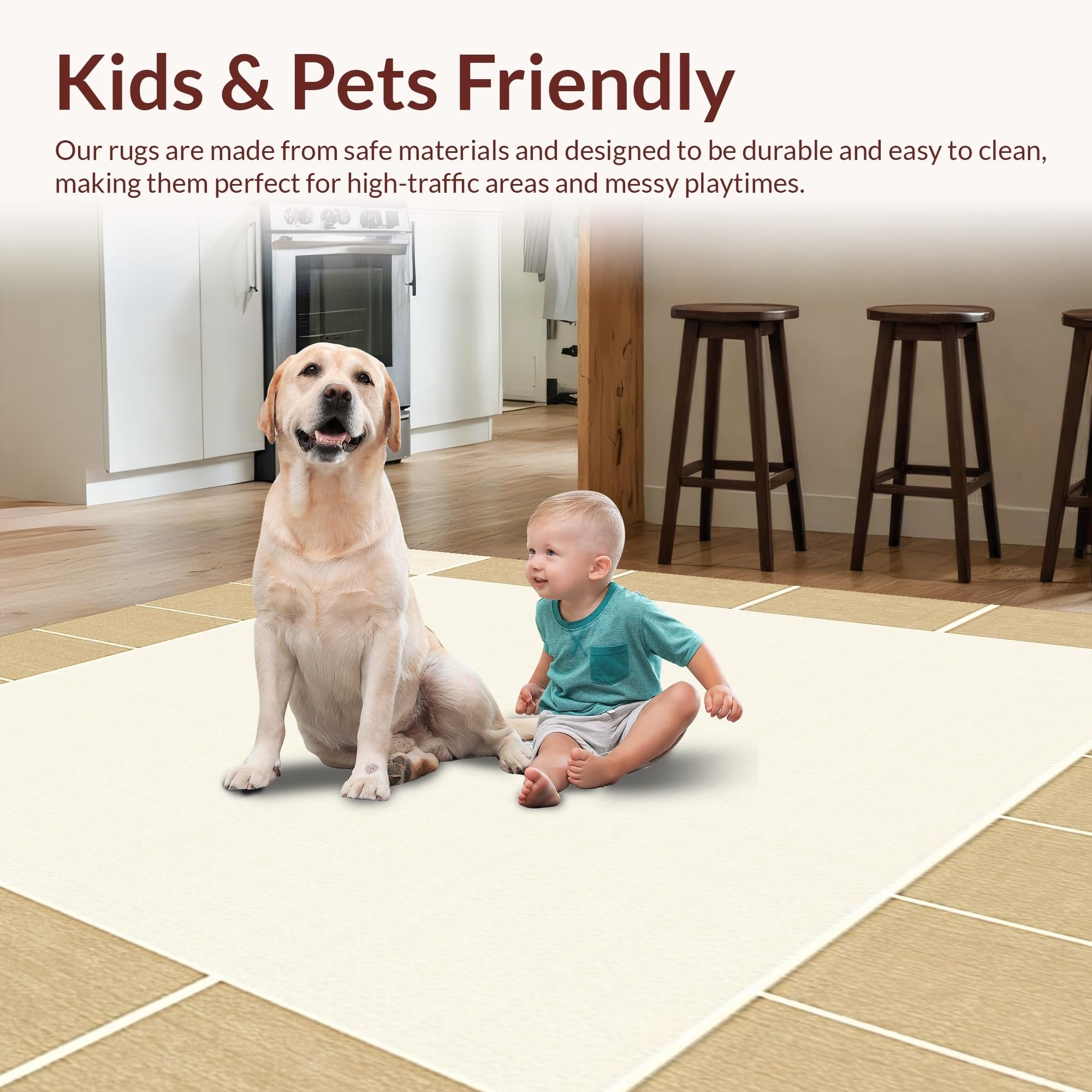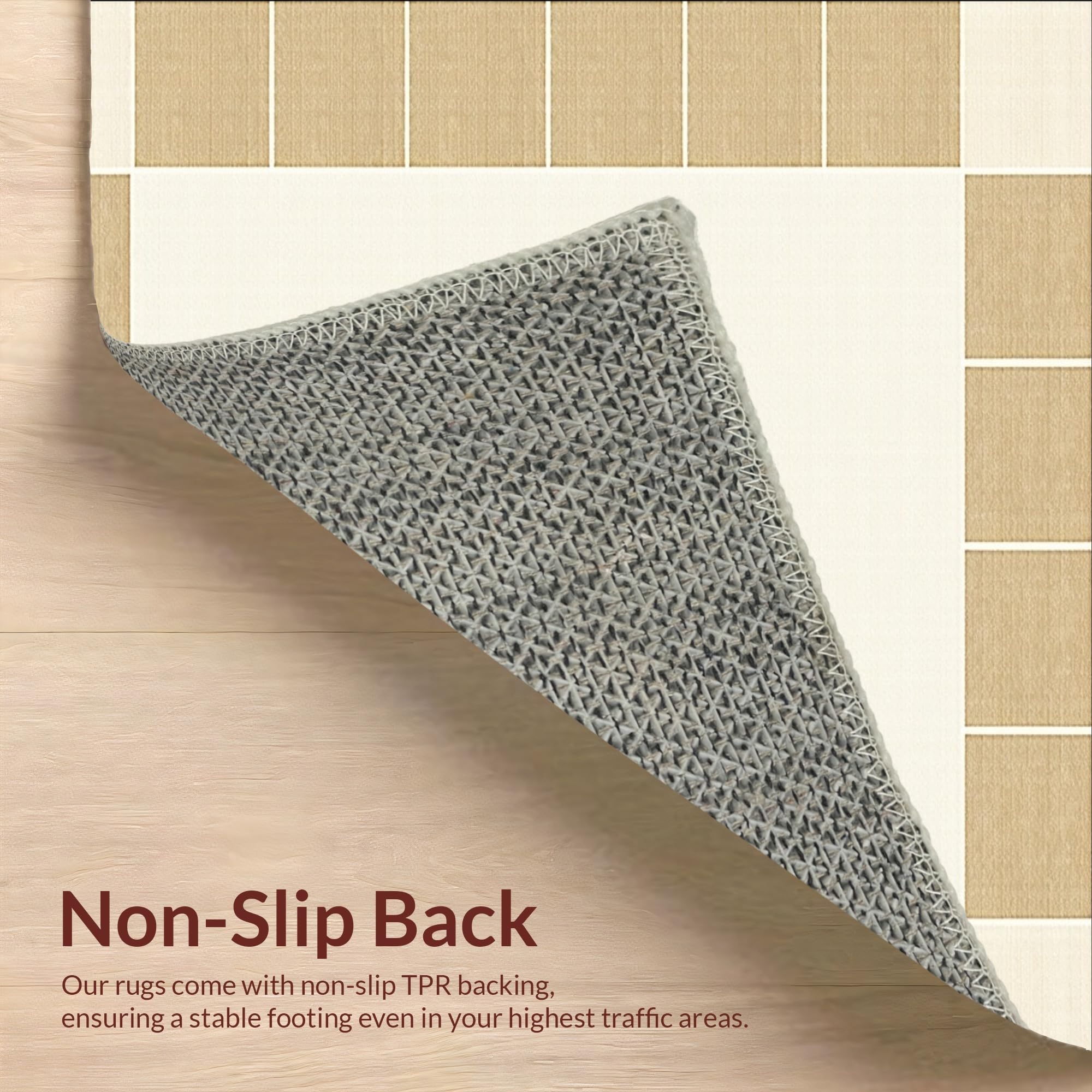 Ultra Soft Area Rug, Non Slip, Stain Resistant, Washable Area Rugs for Living Room, Bedroom, Minimalist Beige Checkered Modern Geometric Area(Beige) Overview: