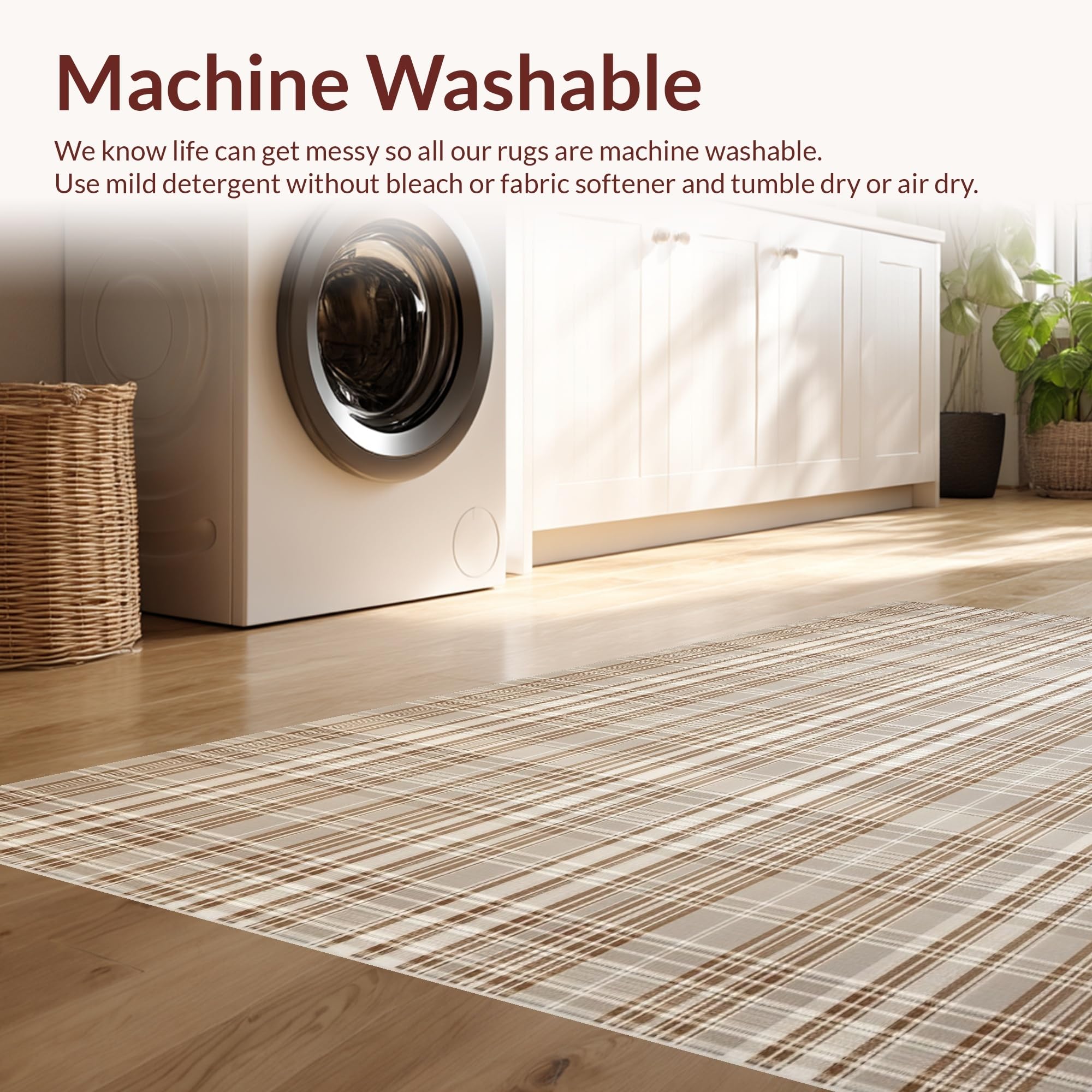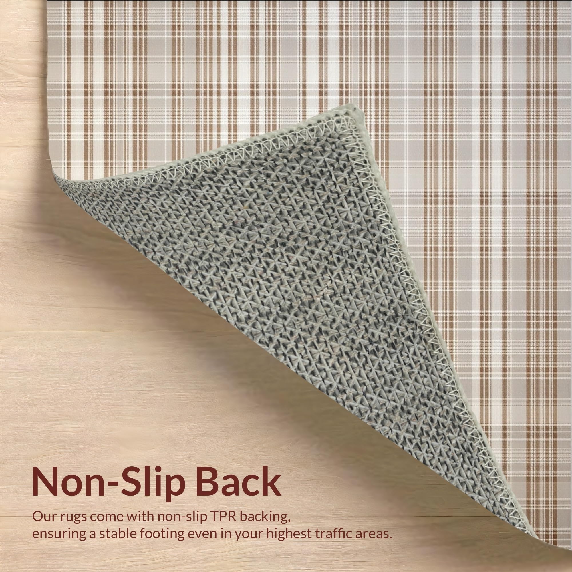 Ultra Soft Area Rug, Non Slip, Stain Resistant, Washable Area Rugs for Living Room, Bedroom, Minimalist Beige Checkered with Faint Brown Crosshatch(Beige) Overview:
