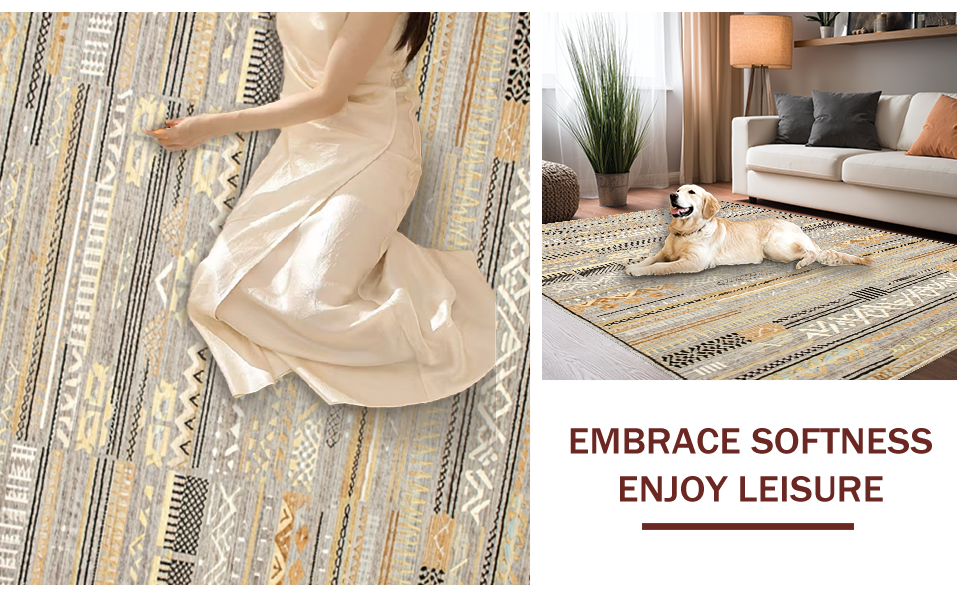 Ultra Soft Area Rug, Non Slip, Stain Resistant, Washable Area Rugs for Living Room, Bedroom, Minimalist Beige Trellis Visual(Gray) Overview: