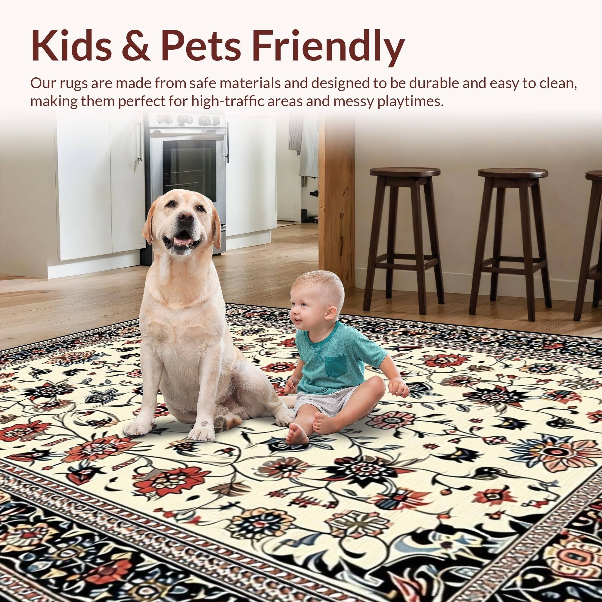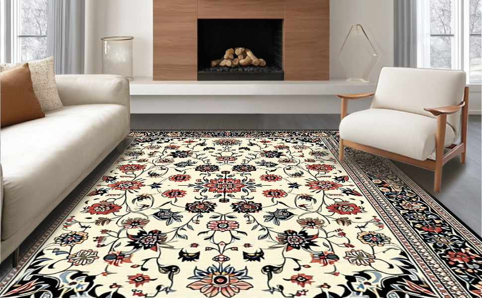 Ultra Soft Area Rug, Non Slip, Stain Resistant, Washable Area Rugs for Living Room, Bedroom, Minimalist Black and Grey Design(Ivory) Overview: