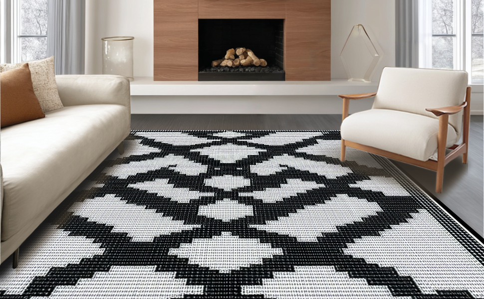 Ultra Soft Area Rug, Non Slip, Stain Resistant, Washable Area Rugs for Living Room, Bedroom, Minimalist Black and White Checker Design(Black) Overview: