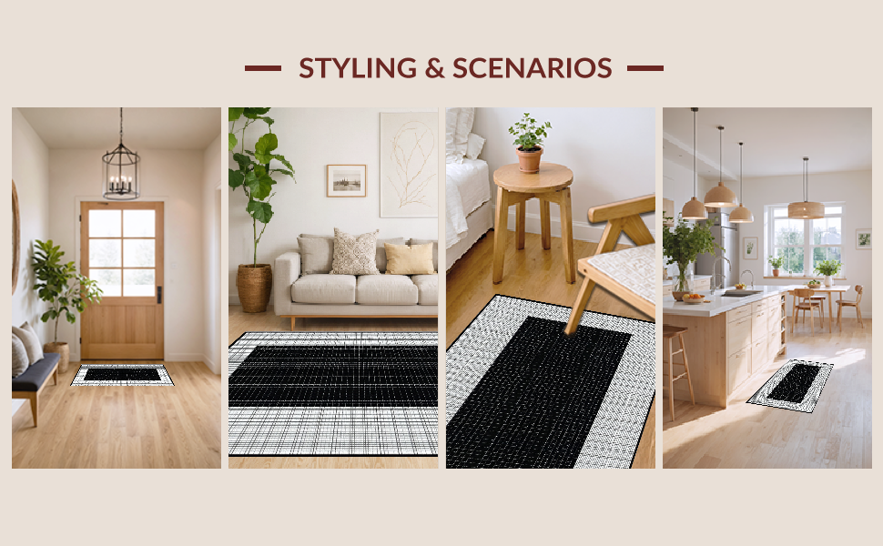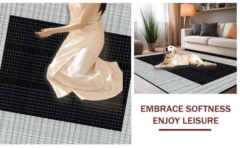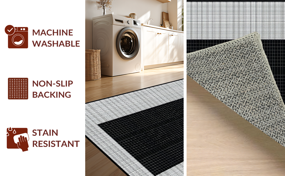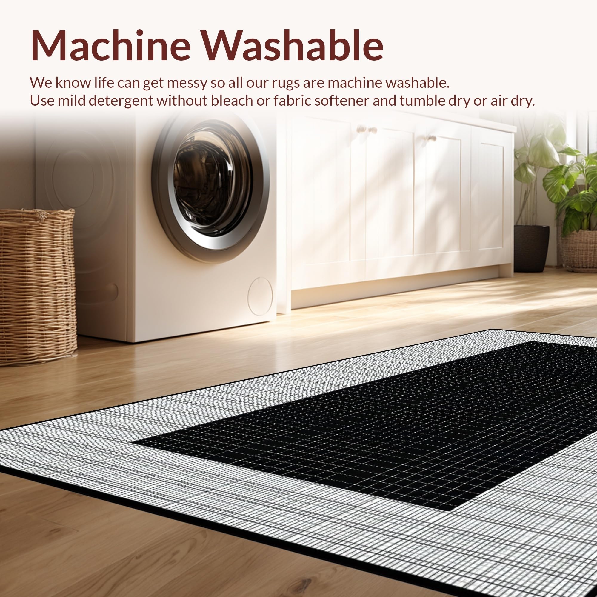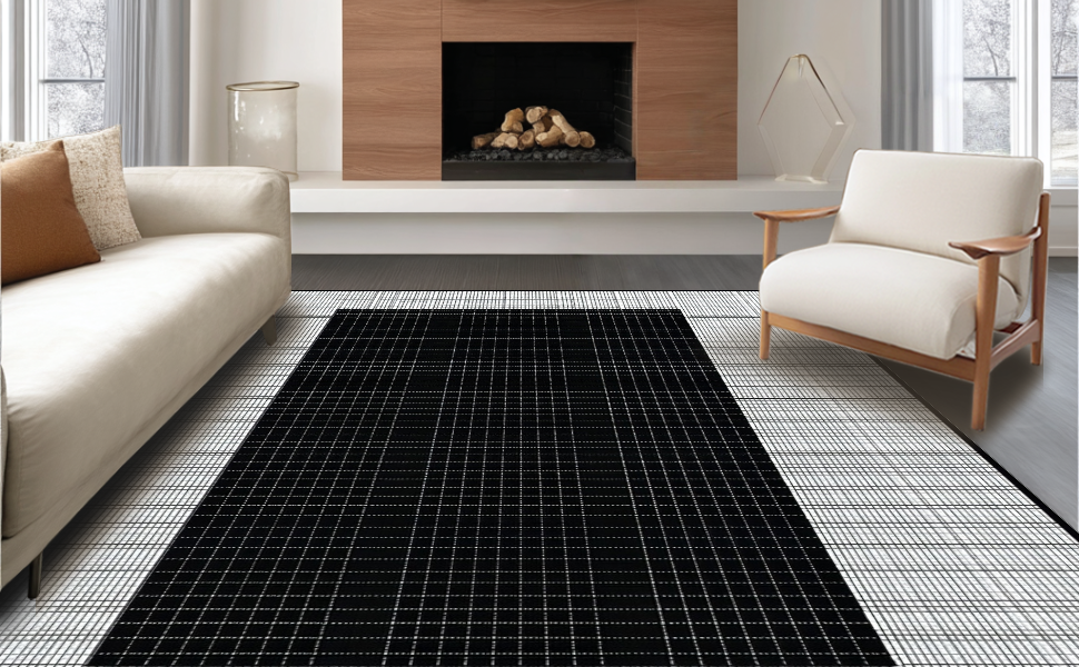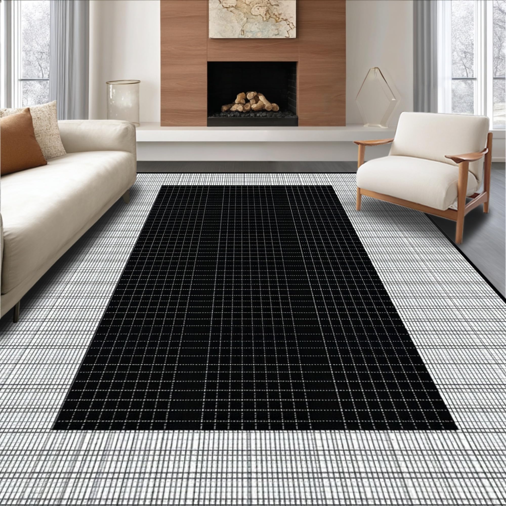 Ultra Soft Area Rug, Non Slip, Stain Resistant, Washable Area Rugs for Living Room, Bedroom, Minimalist Black and White Grid Layout(Black) Overview: