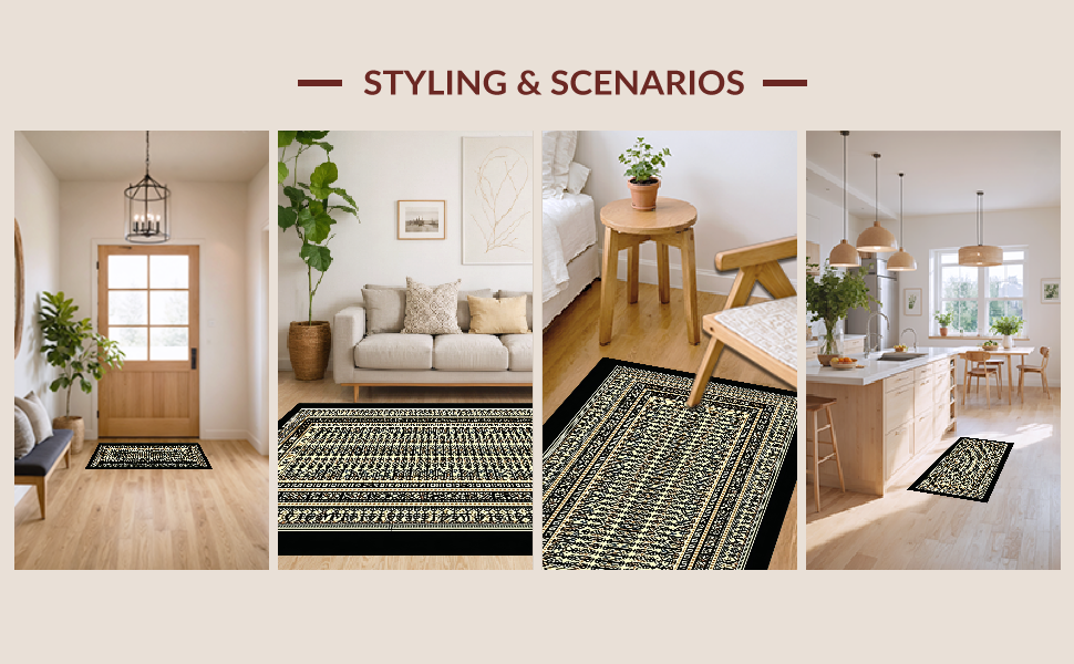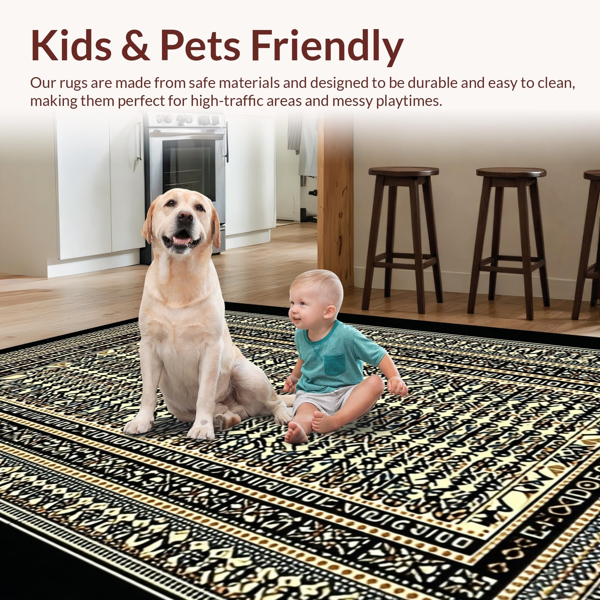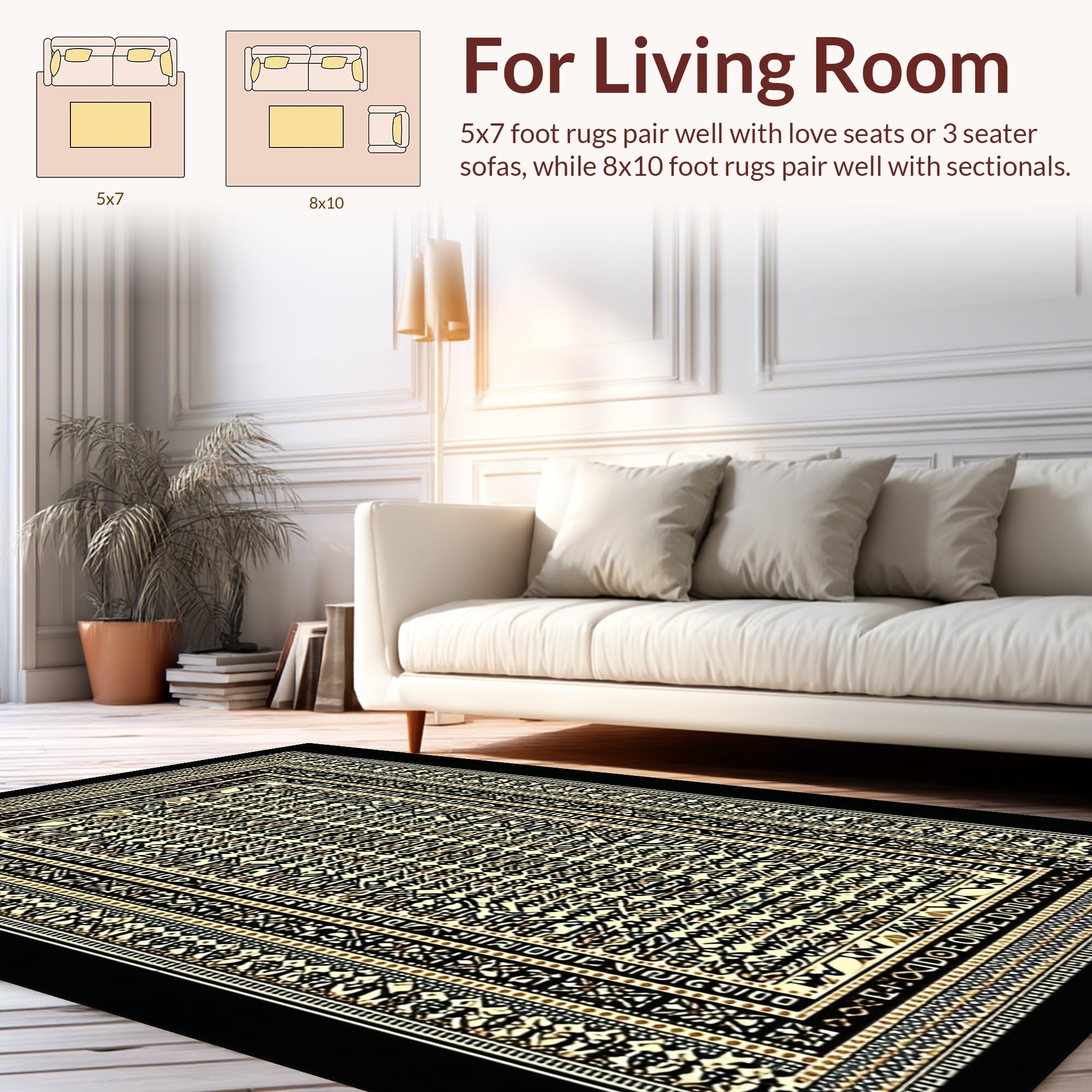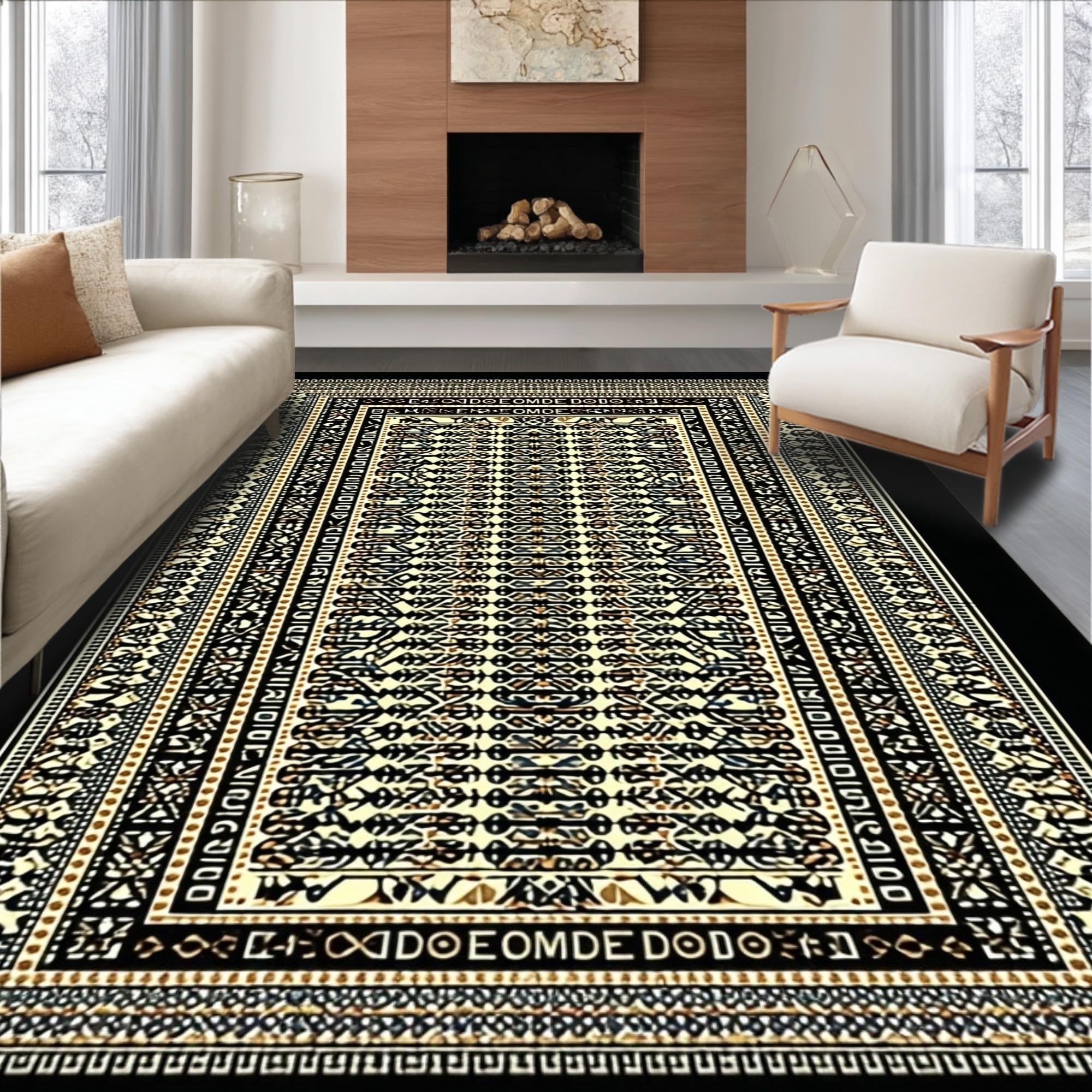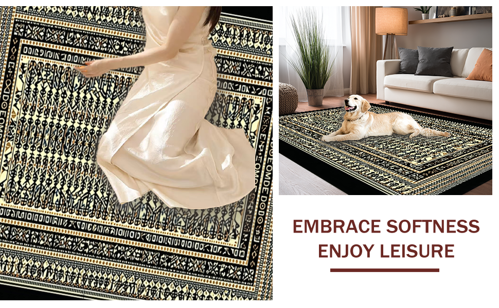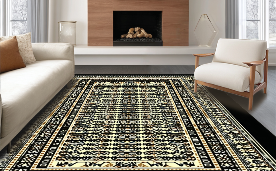Ultra Soft Area Rug, Non Slip, Stain Resistant, Washable Area Rugs for Living Room, Bedroom, Minimalist Black Beige Statement Piece(Gold) Overview: