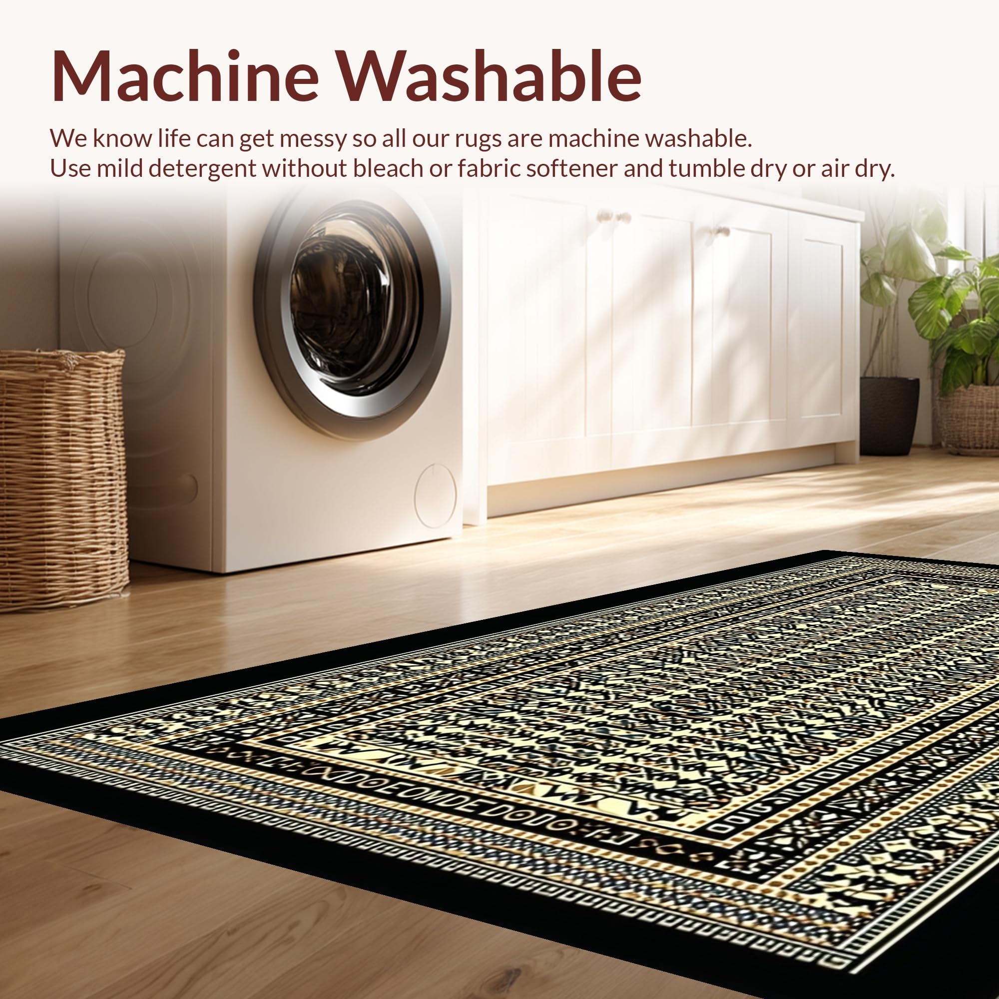 - Machine Washable: Our rugs can be easily thrown in the wash machine.